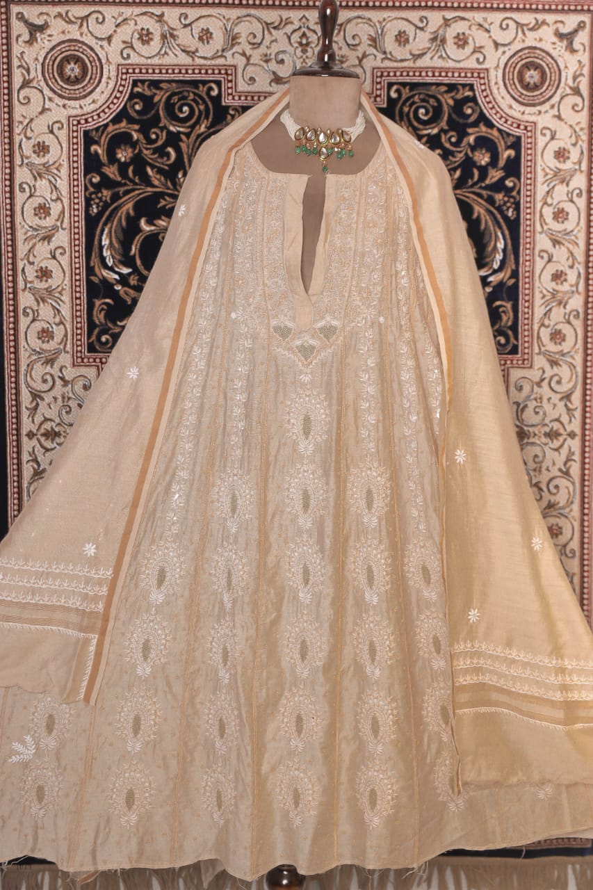 Mehvish Moonga Silk Chikankari Anarkali Set