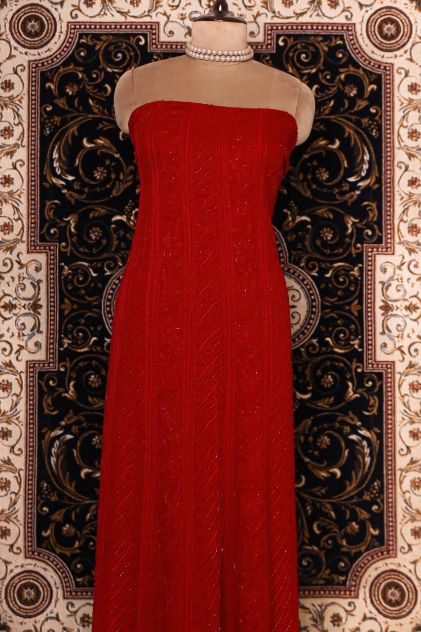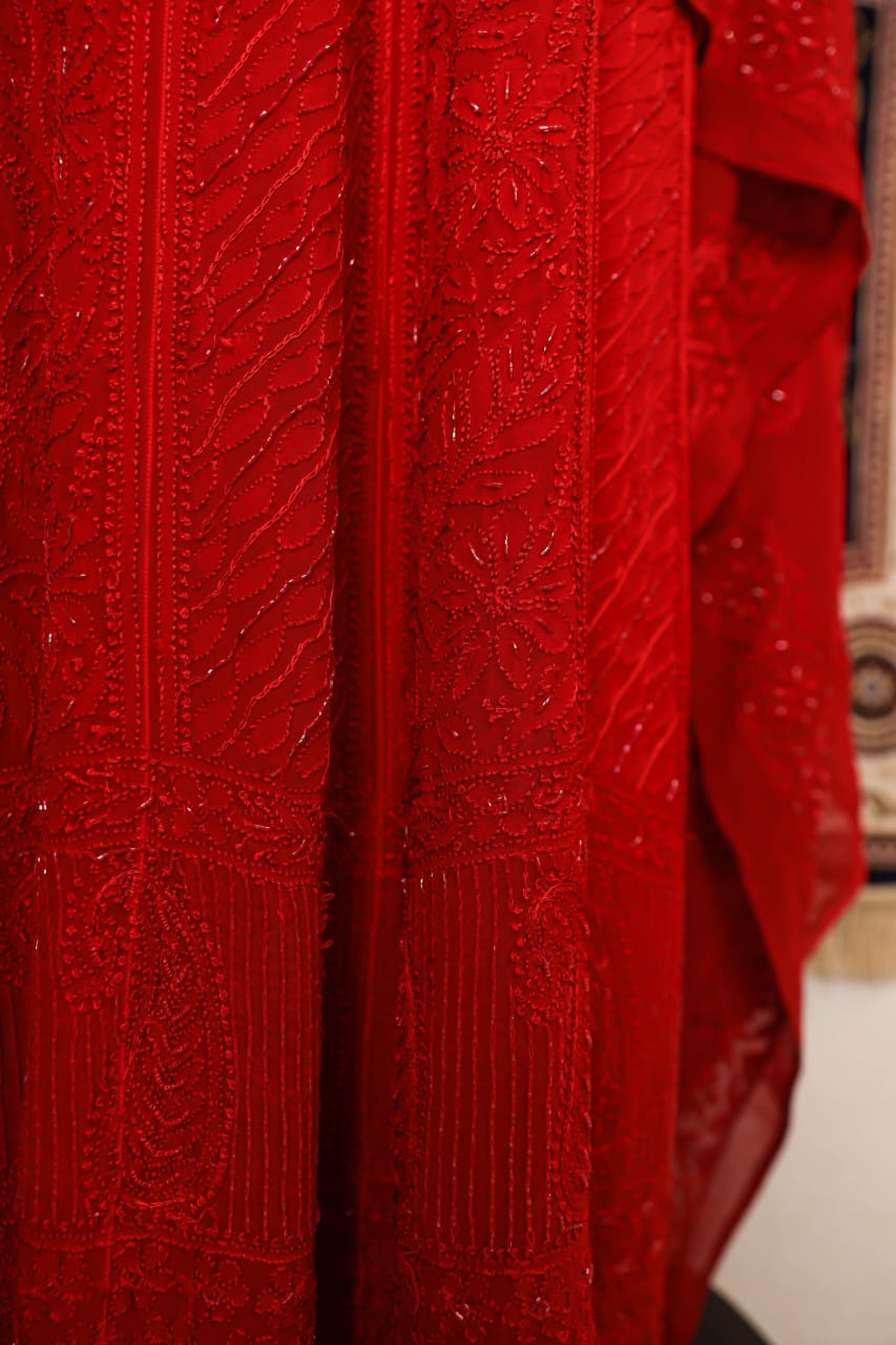 Chikankari is an Art of delicate handwork of Lucknow. It is a handcrafted process where the wooden blocks are manually carved in various designs, and the natural stew for printing is prepared, and printed on the cloth. The chikankari craftsmen then use ten ary of the needlecraft embroidery, and perform the needlework artistically. There are 32 stitches of chikankari broadly classified into Raised stitch, Embossed and Flat stitch.