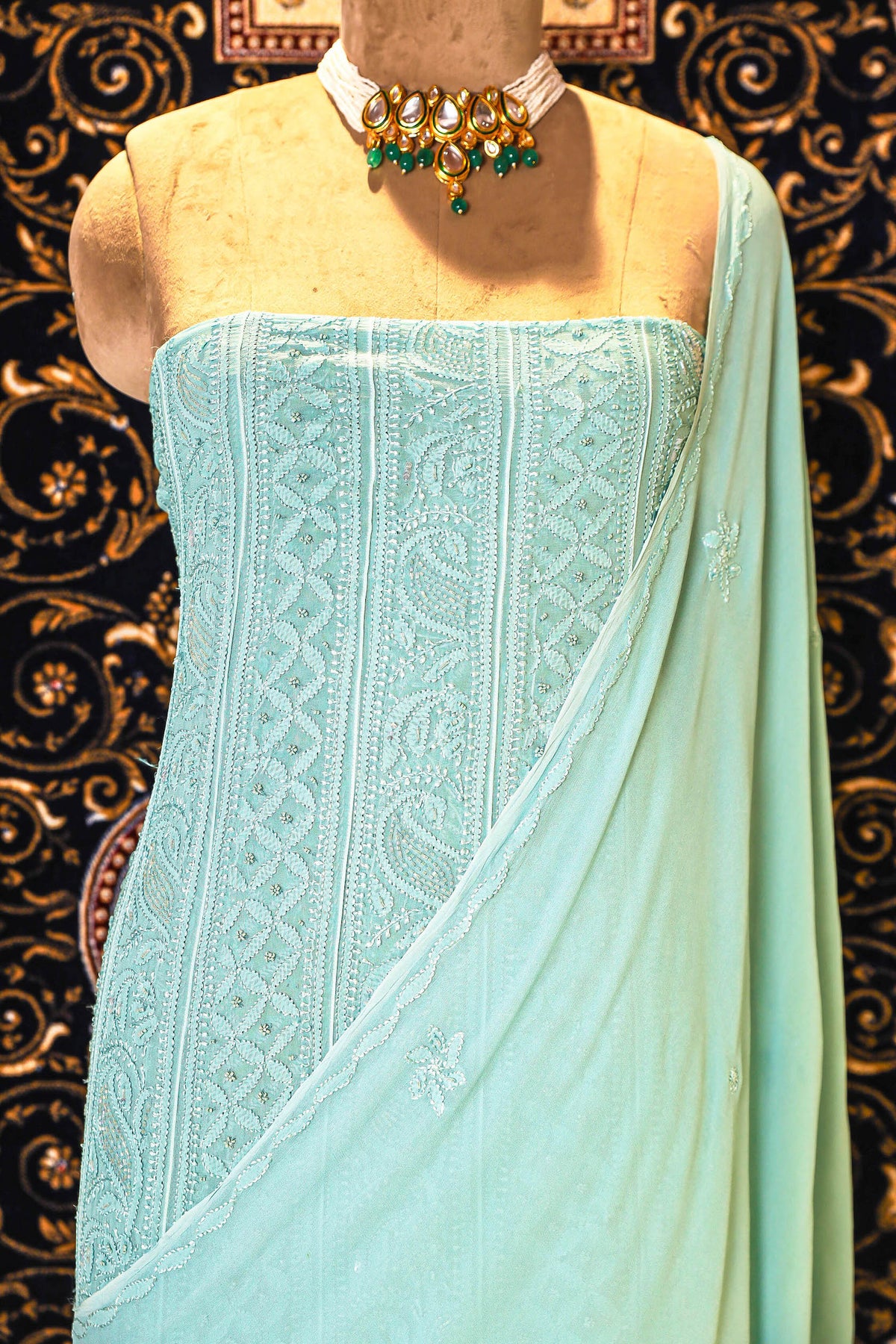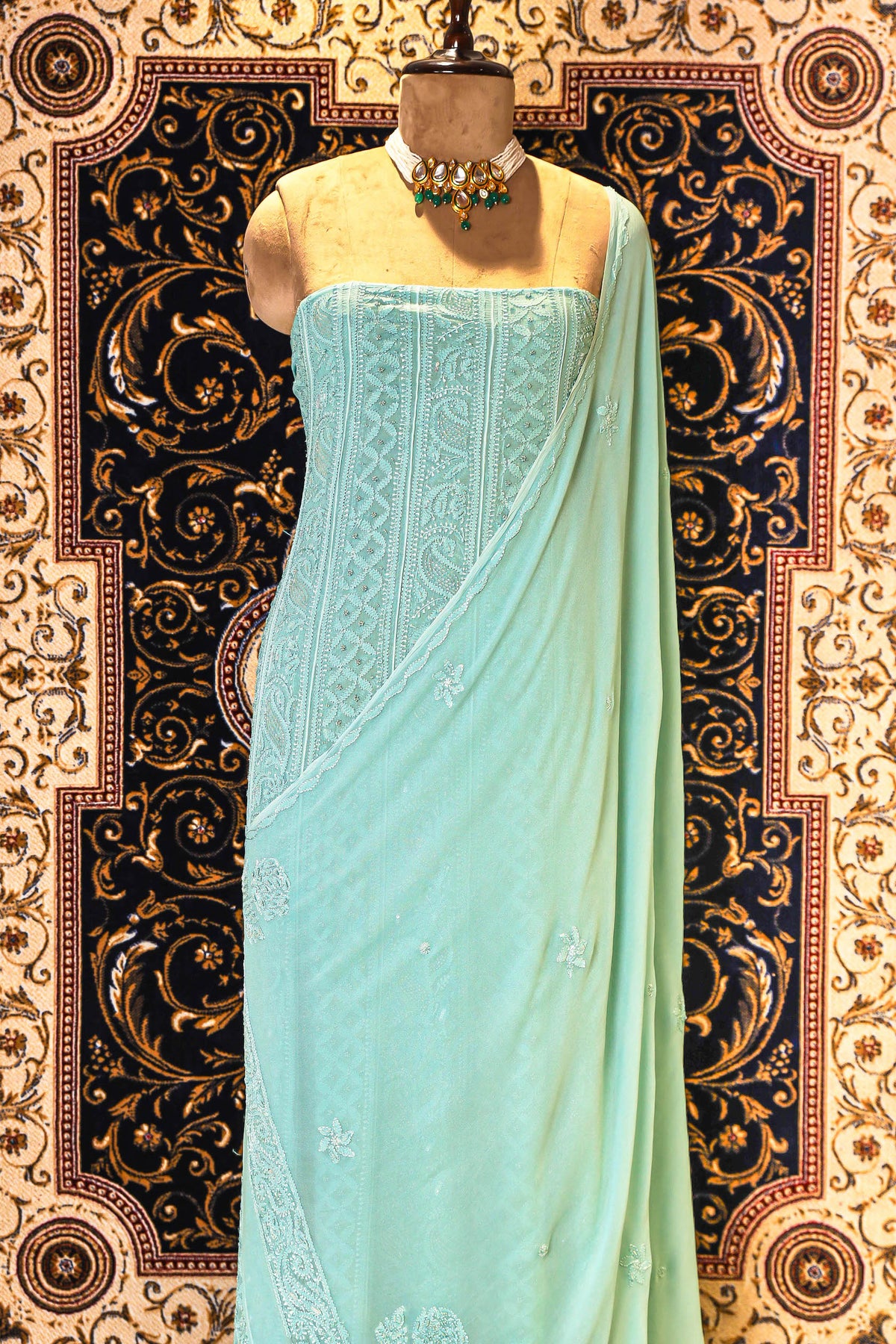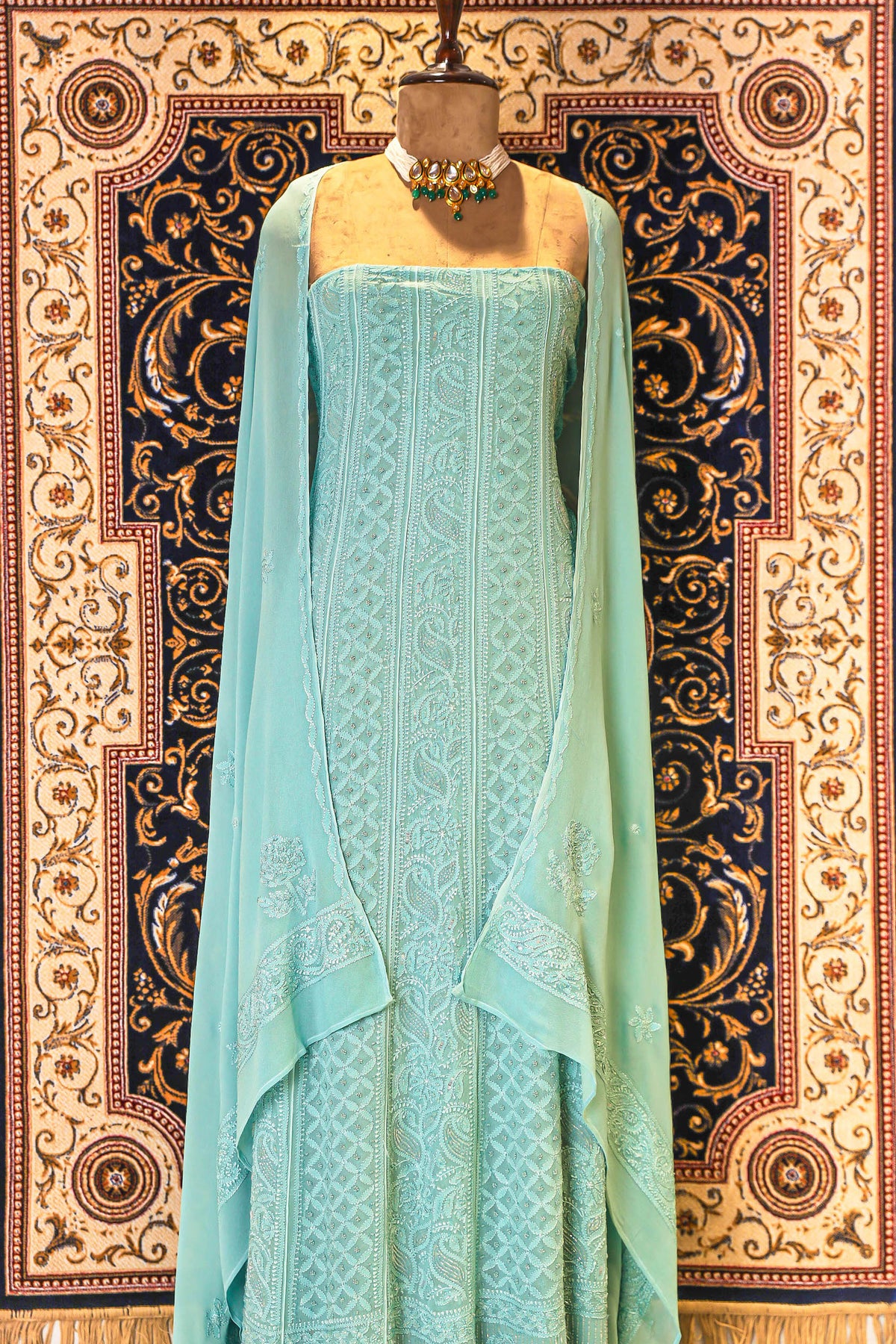 Chikankari is an Art of delicate handwork of Lucknow. It is a handcrafted process where the wooden blocks are manually carved in various designs, and the natural stew for printing is prepared, and printed on the cloth. The chikankari craftsmen then use ten ary of the needlecraft embroidery, and perform the needlework artistically. There are 32 stitches of chikankari broadly classified into Raised stitch, Embossed and Flat stitch.