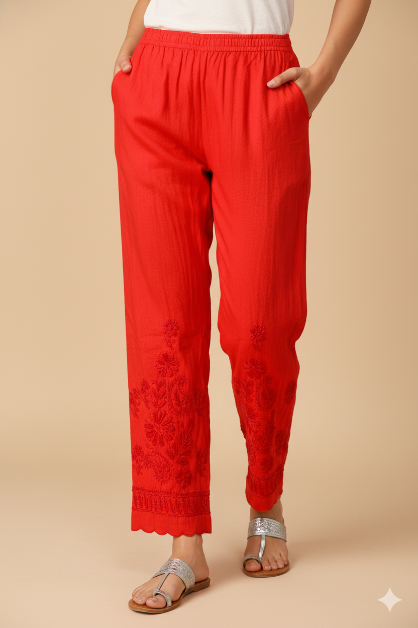 Chikankari is an Art of delicate handwork of Lucknow. It is a handcrafted process where the wooden blocks are manually carved in various designs, and the natural stew for printing is prepared, and printed on the cloth. The chikankari craftsmen then use ten ary of the needlecraft embroidery, and perform the needlework artistically. There are 32 stitches of chikankari broadly classified into Raised stitch, Embossed and Flat stitch.