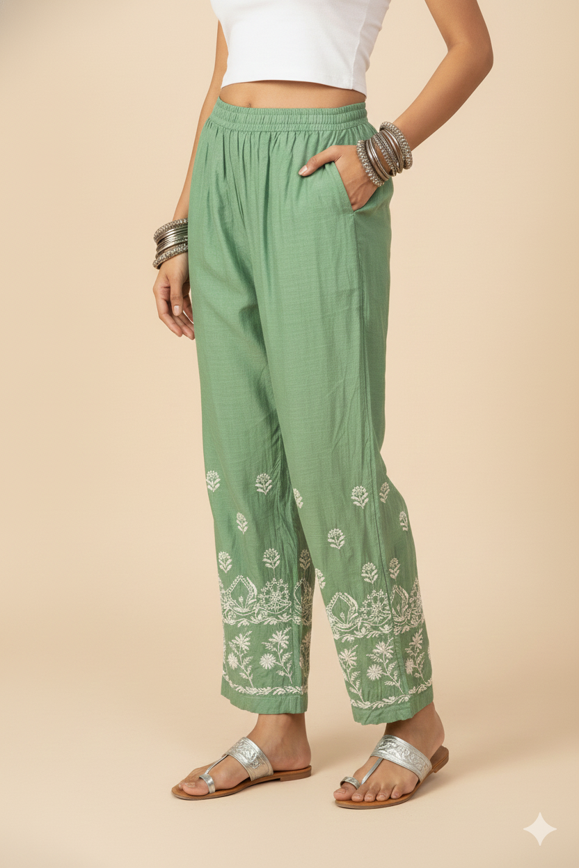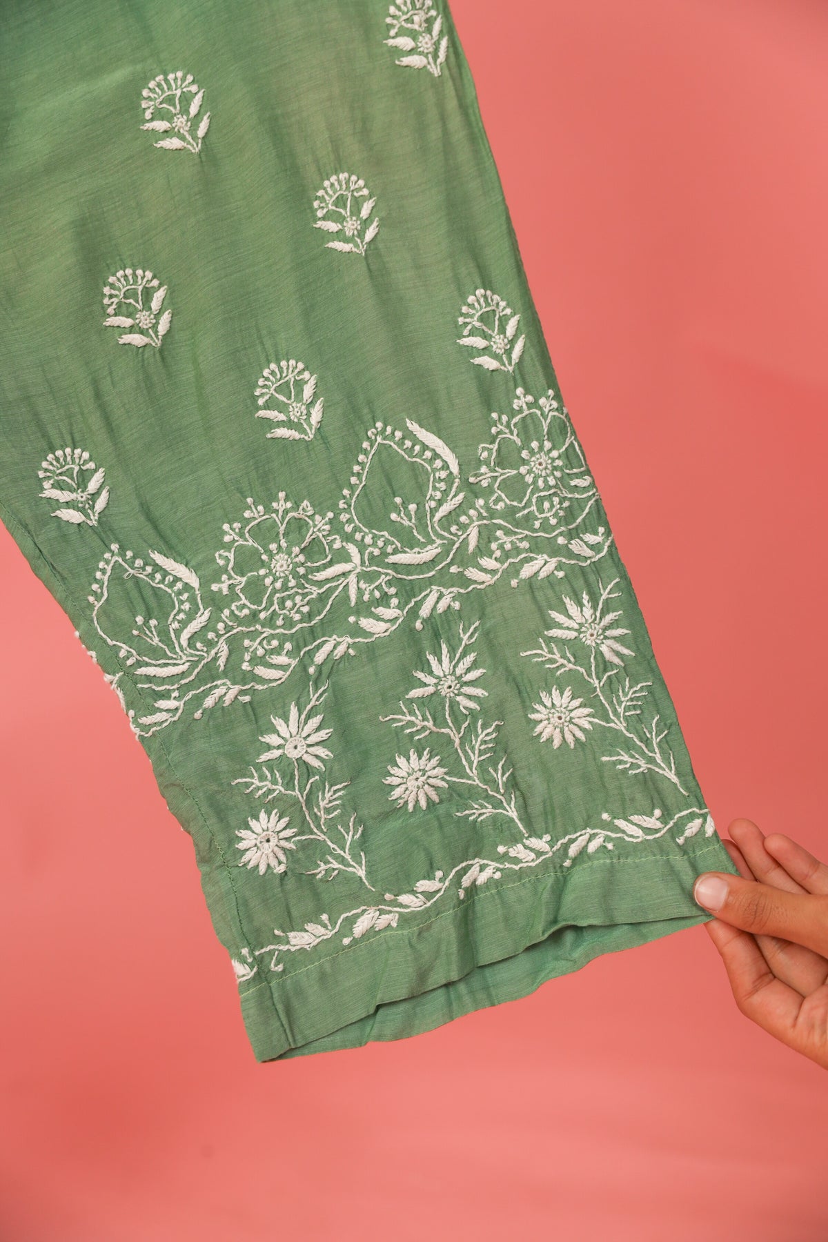 Chikankari is an Art of delicate handwork of Lucknow. It is a handcrafted process where the wooden blocks are manually carved in various designs, and the natural stew for printing is prepared, and printed on the cloth. The chikankari craftsmen then use ten ary of the needlecraft embroidery, and perform the needlework artistically. There are 32 stitches of chikankari broadly classified into Raised stitch, Embossed and Flat stitch.