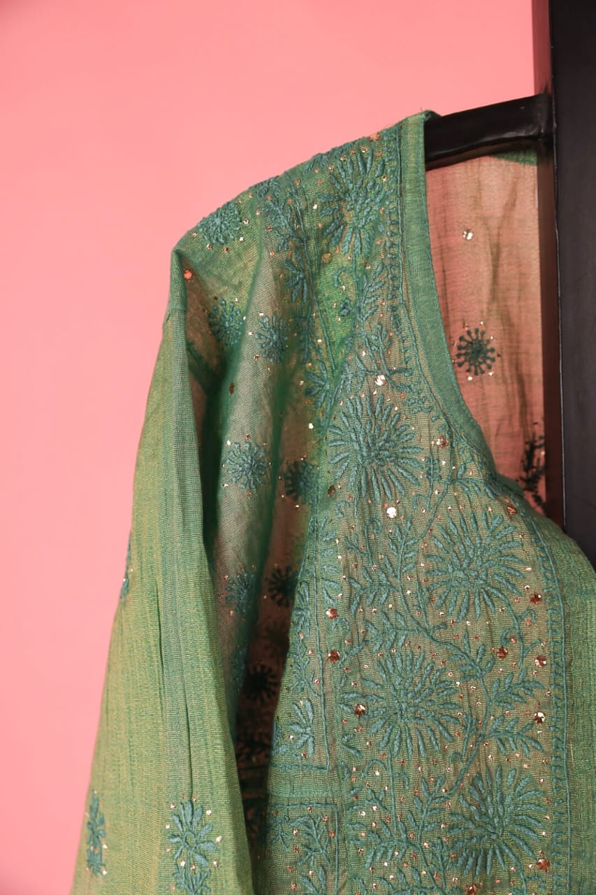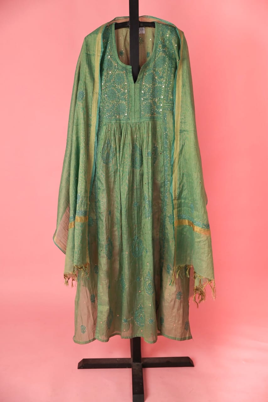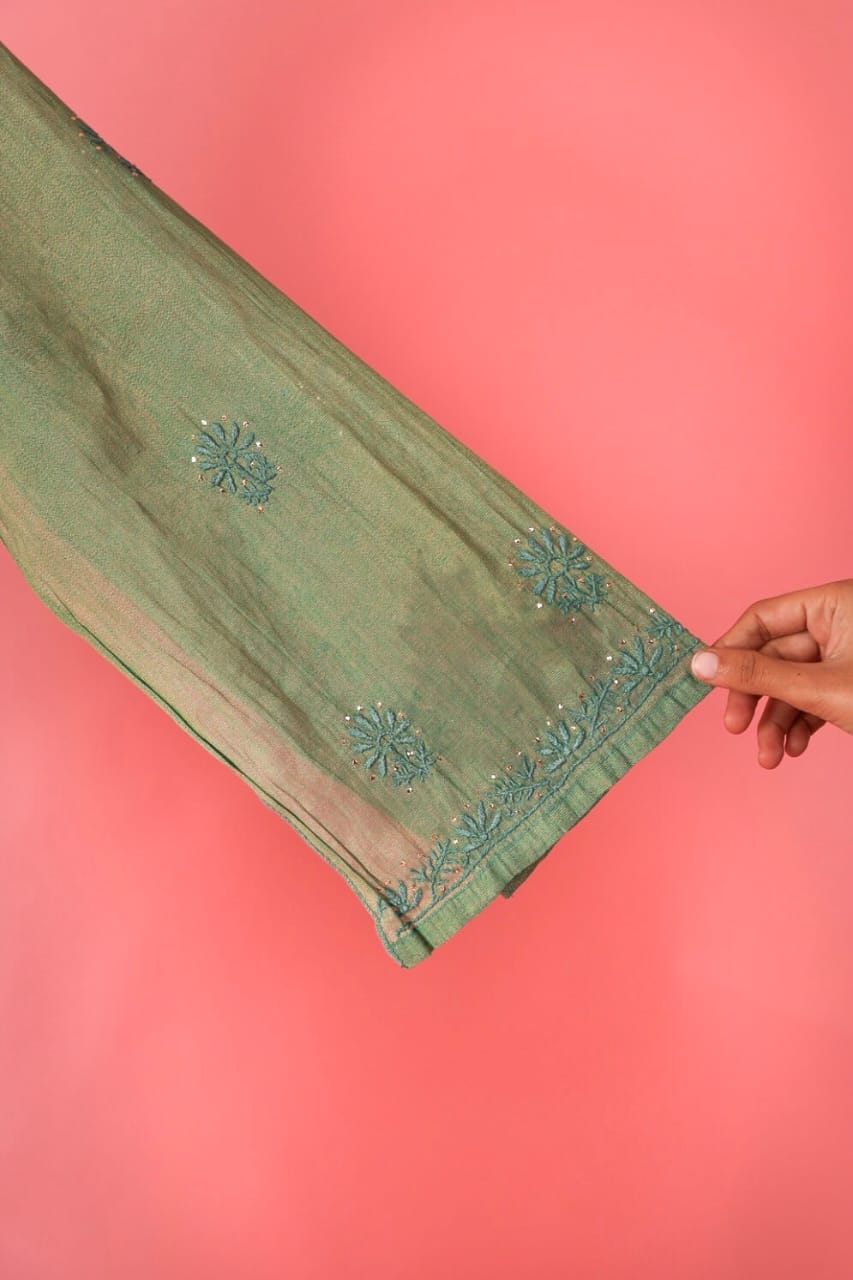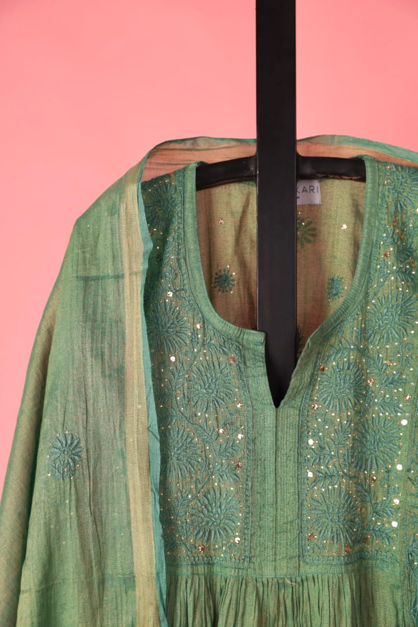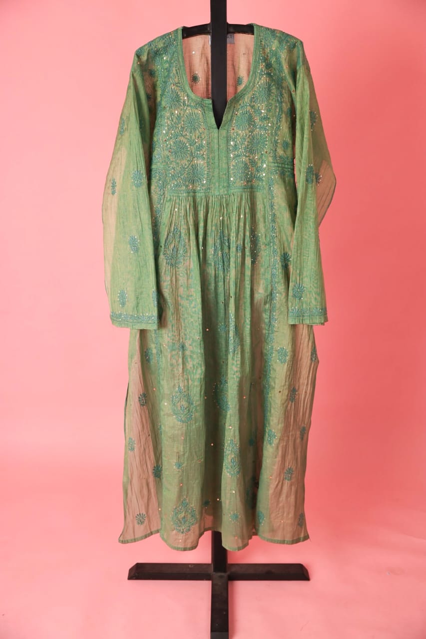 Chikankari is an Art of delicate handwork of Lucknow. It is a handcrafted process where the wooden blocks are manually carved in various designs, and the natural stew for printing is prepared, and printed on the cloth. The chikankari craftsmen then use ten ary of the needlecraft embroidery, and perform the needlework artistically. There are 32 stitches of chikankari broadly classified into Raised stitch, Embossed and Flat stitch.