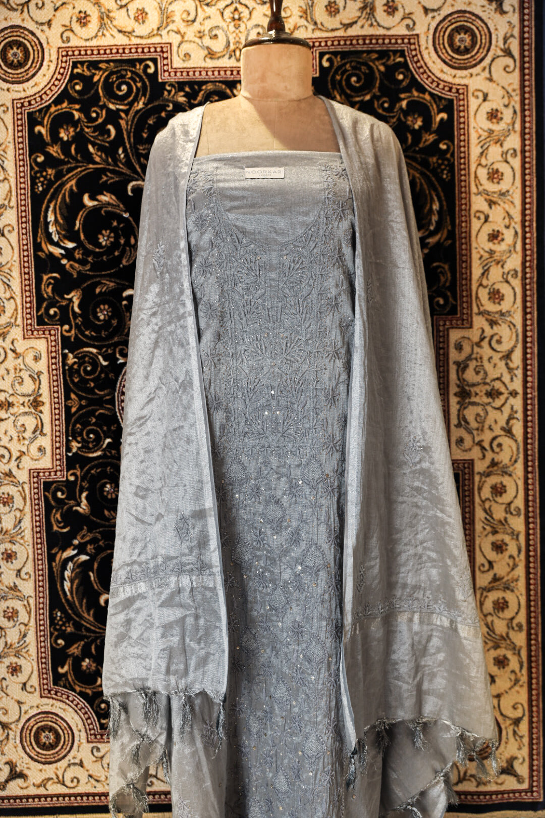 Arwa Tissue Chikankari Kurta And Dupatta Set