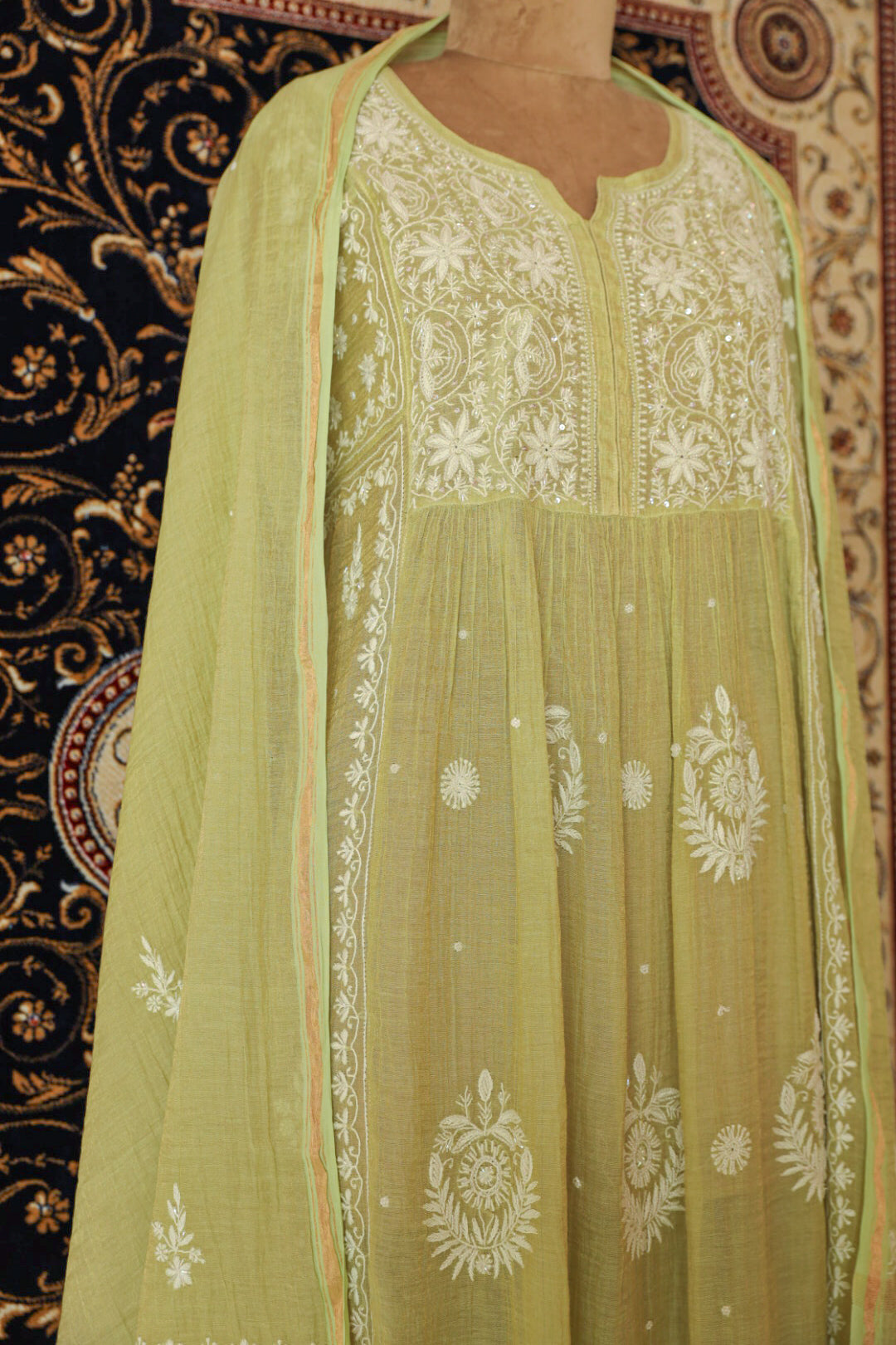Mahira Tissue Chikankari Kurta And Dupatta Set