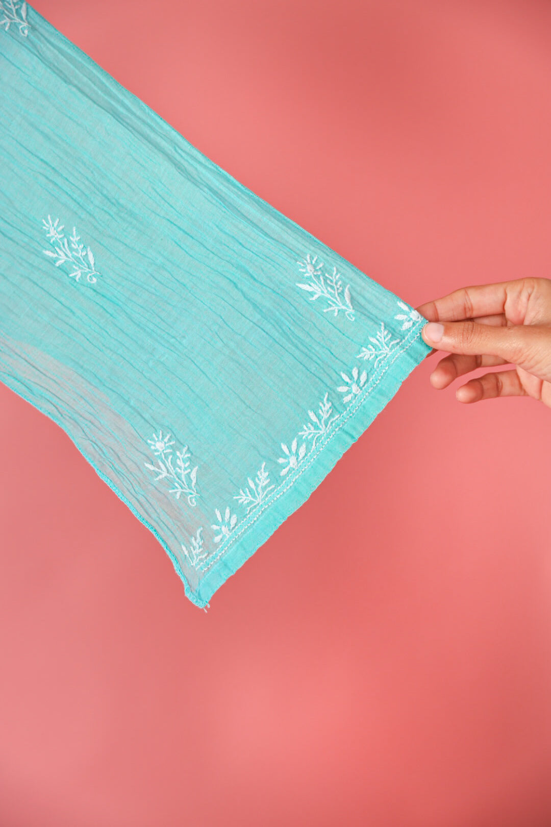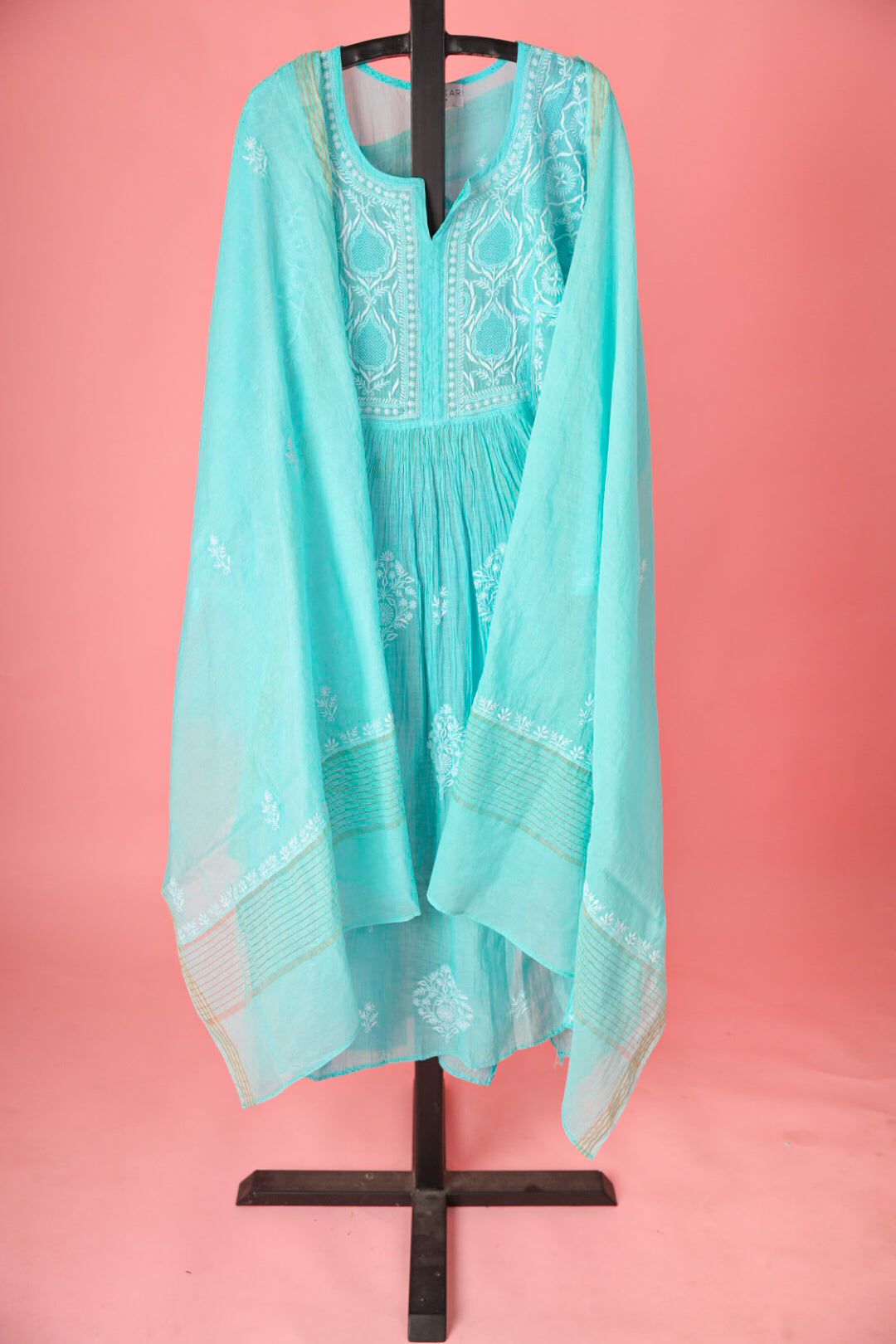 Noori Sea Blue Mul Chanderi Set with Jaali 3p