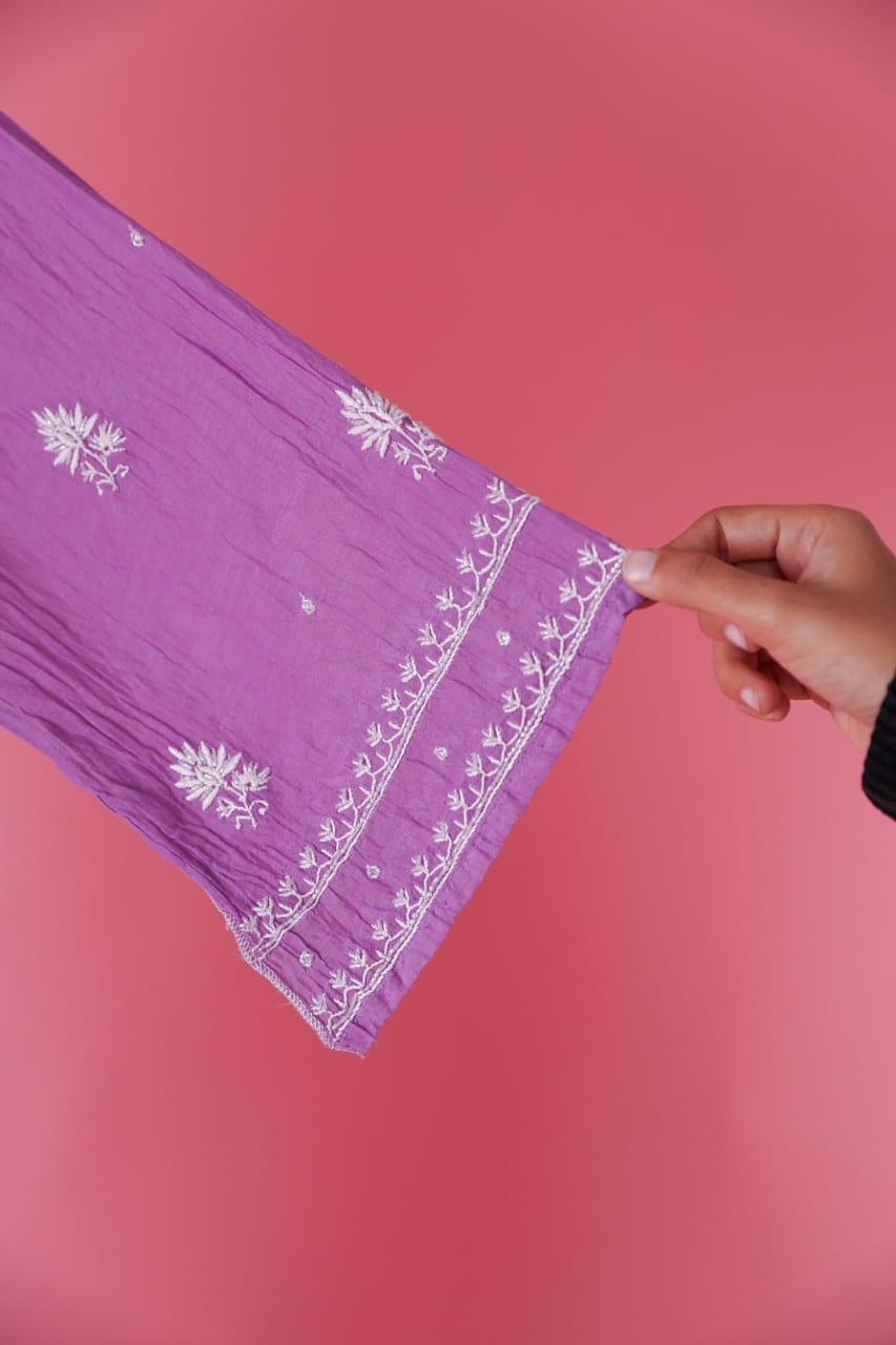 Tabassum Mul Chanderi Chikankari 3 Piece Suit Set