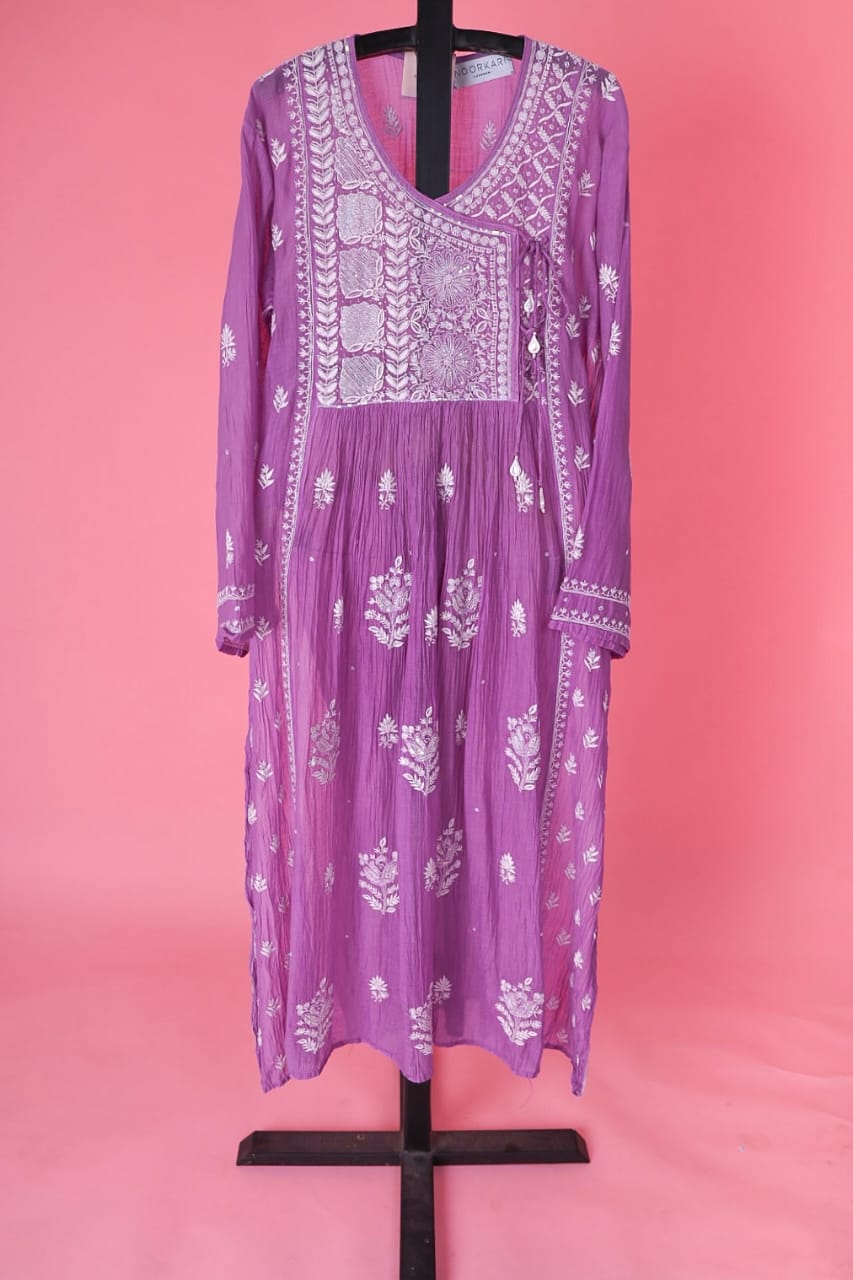 Chikankari is an Art of delicate handwork of Lucknow. It is a handcrafted process where the wooden blocks are manually carved in various designs, and the natural stew for printing is prepared, and printed on the cloth. The chikankari craftsmen then use ten ary of the needlecraft embroidery, and perform the needlework artistically. There are 32 stitches of chikankari broadly classified into Raised stitch, Embossed and Flat stitch.