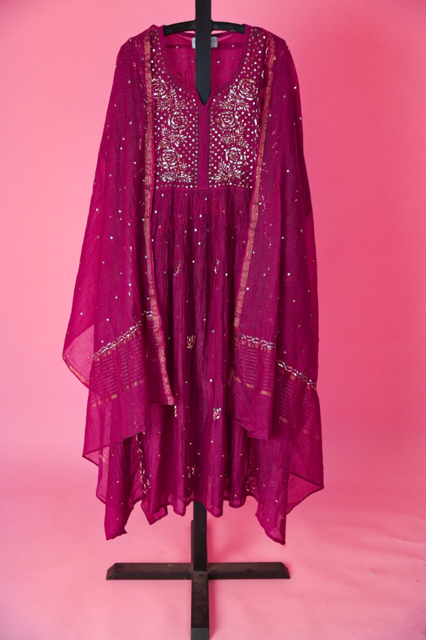 Waniya Mul Chanderi Chikankari 3 Piece Suit Set