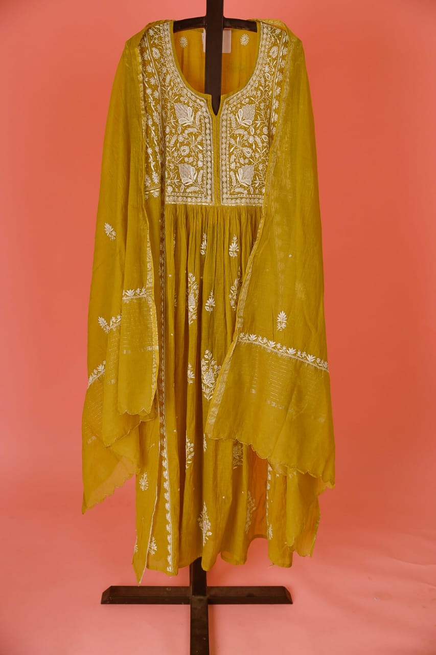 Warisha Mul Chanderi Chikankari 3 Piece Suit Set