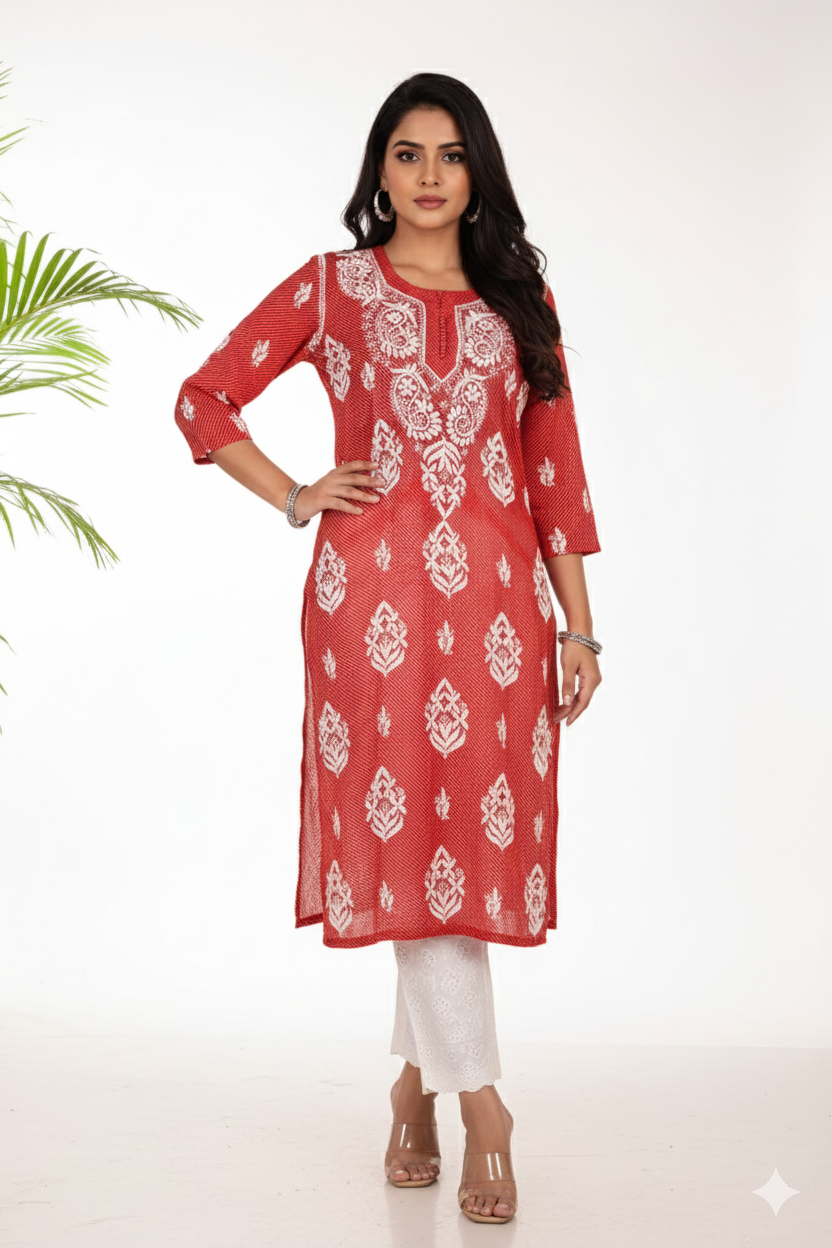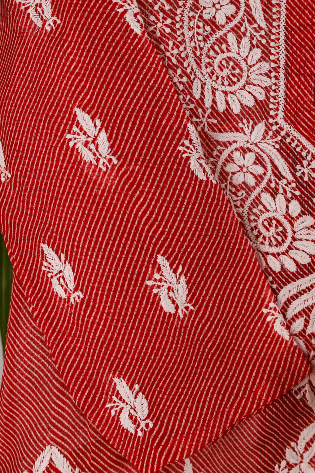 Chikankari is an Art of delicate handwork of Lucknow. It is a handcrafted process where the wooden blocks are manually carved in various designs, and the natural stew for printing is prepared, and printed on the cloth. The chikankari craftsmen then use ten ary of the needlecraft embroidery, and perform the needlework artistically. There are 32 stitches of chikankari broadly classified into Raised stitch, Embossed and Flat stitch.