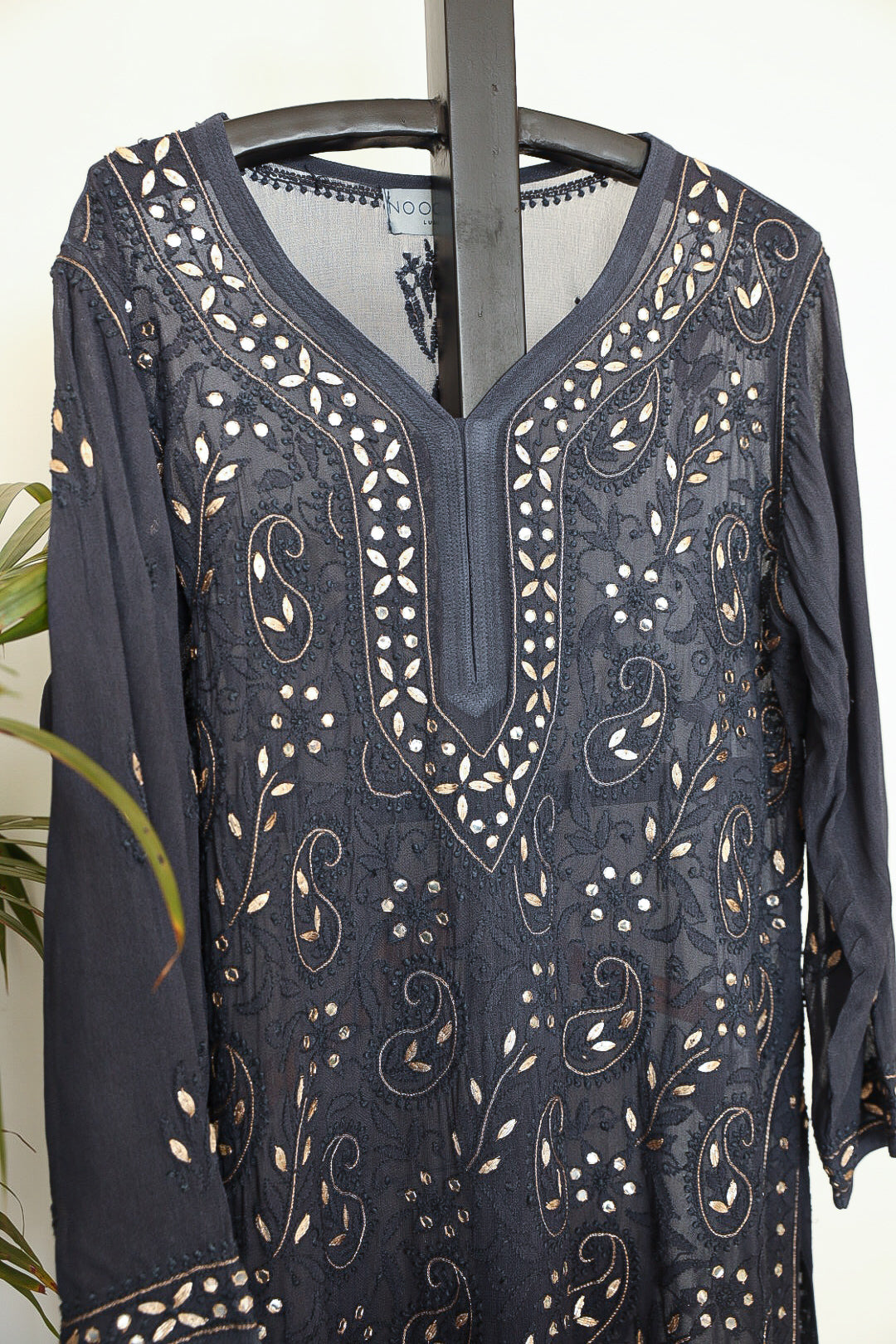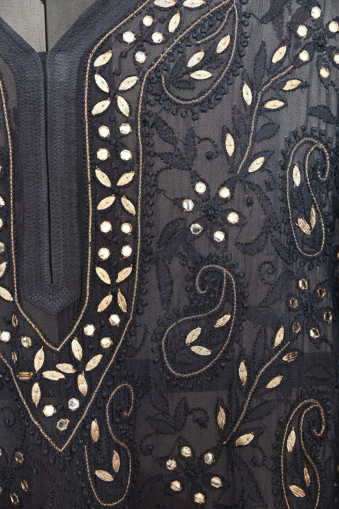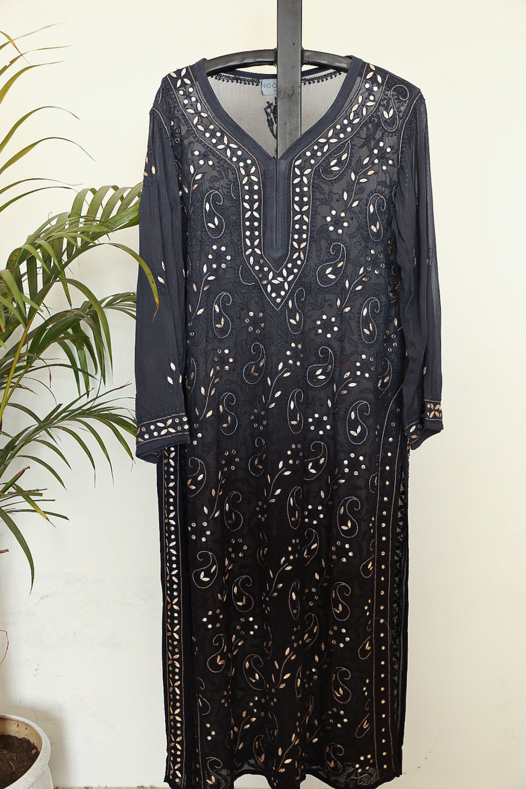 Chikankari is an Art of delicate handwork of Lucknow. It is a handcrafted process where the wooden blocks are manually carved in various designs, and the natural stew for printing is prepared, and printed on the cloth. The chikankari craftsmen then use ten ary of the needlecraft embroidery, and perform the needlework artistically. There are 32 stitches of chikankari broadly classified into Raised stitch, Embossed and Flat stitch.