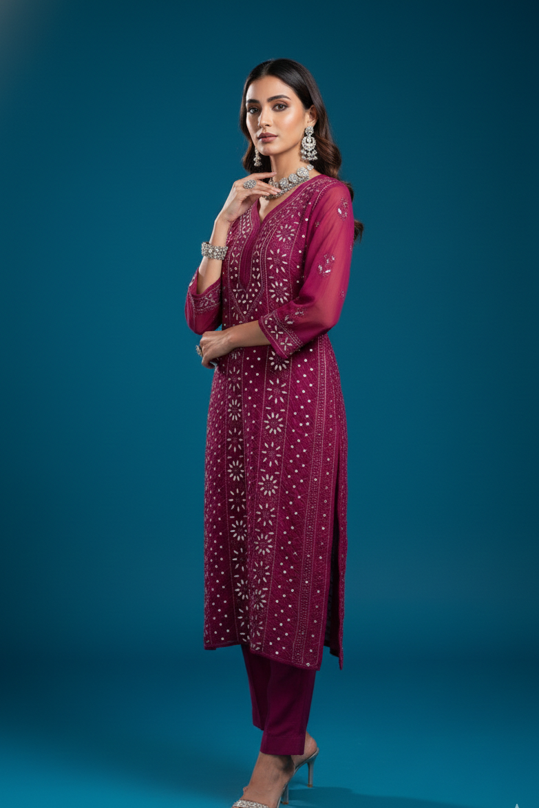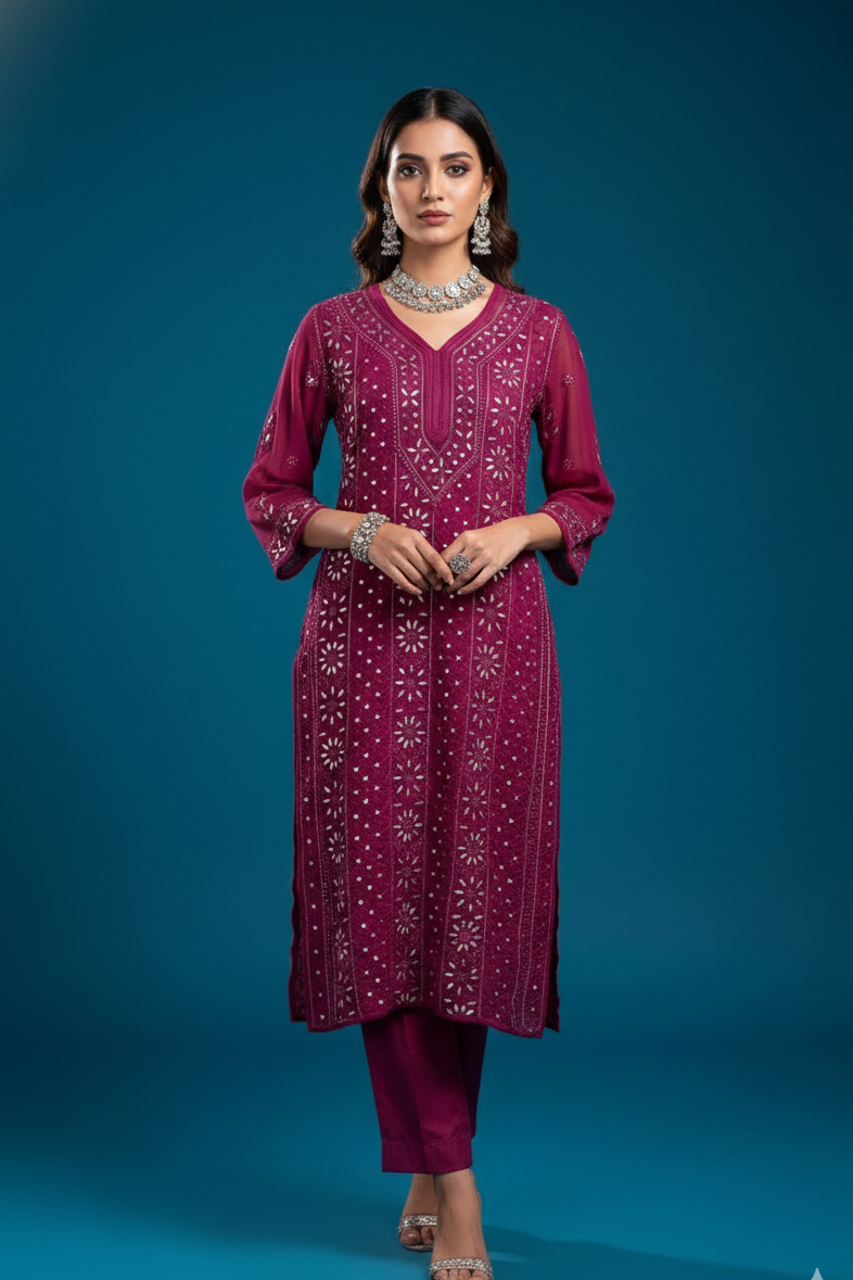 Vamika Georgette Chikankari Kurti