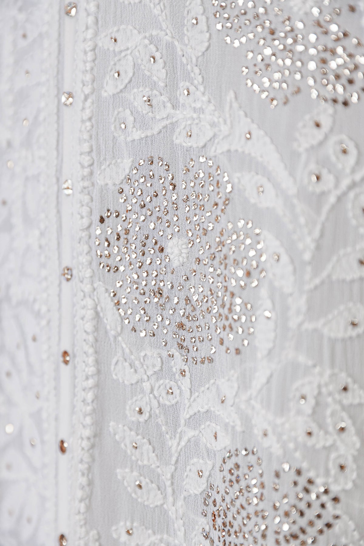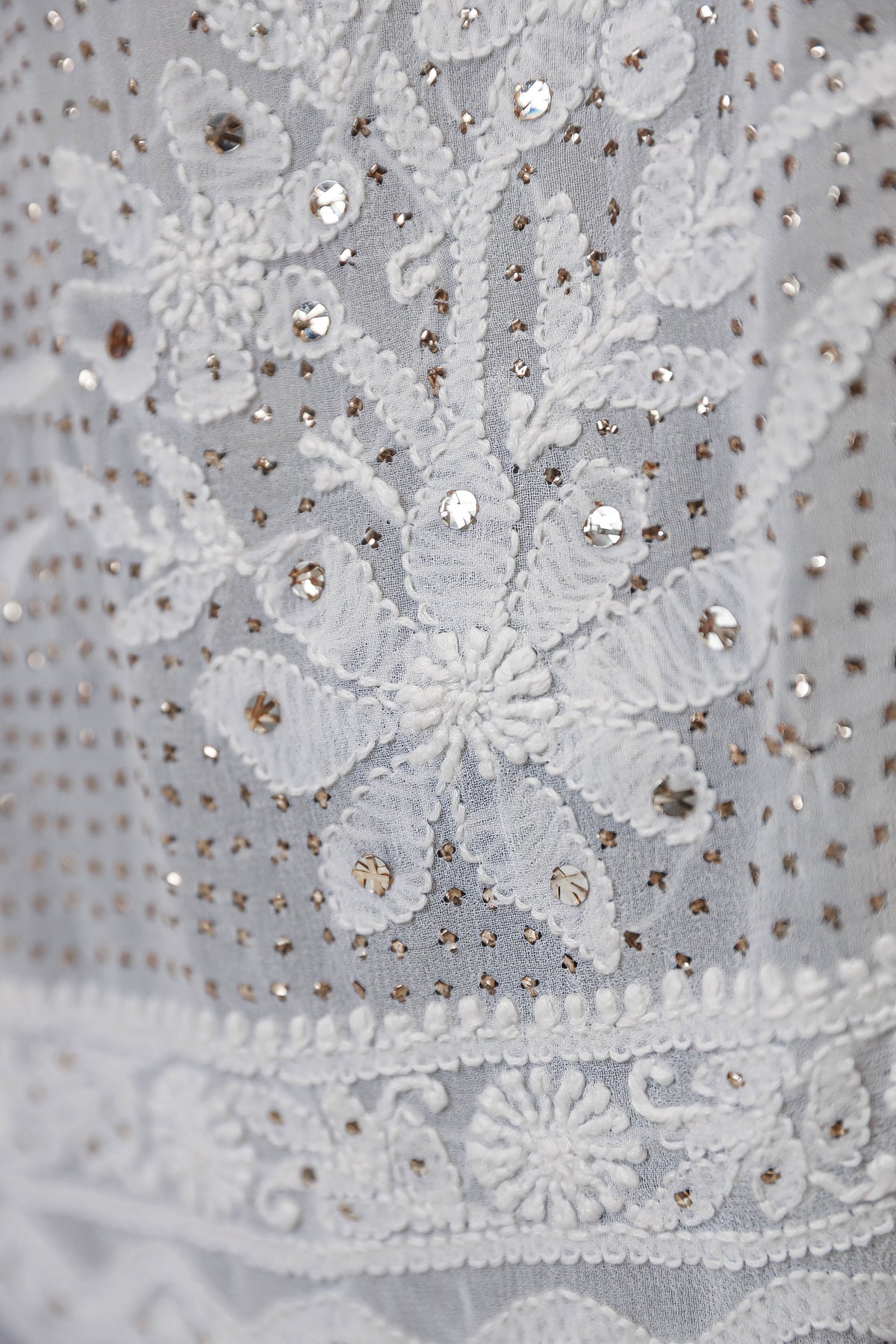Chikankari is an Art of delicate handwork of Lucknow. It is a handcrafted process where the wooden blocks are manually carved in various designs, and the natural stew for printing is prepared, and printed on the cloth. The chikankari craftsmen then use ten ary of the needlecraft embroidery, and perform the needlework artistically. There are 32 stitches of chikankari broadly classified into Raised stitch, Embossed and Flat stitch.