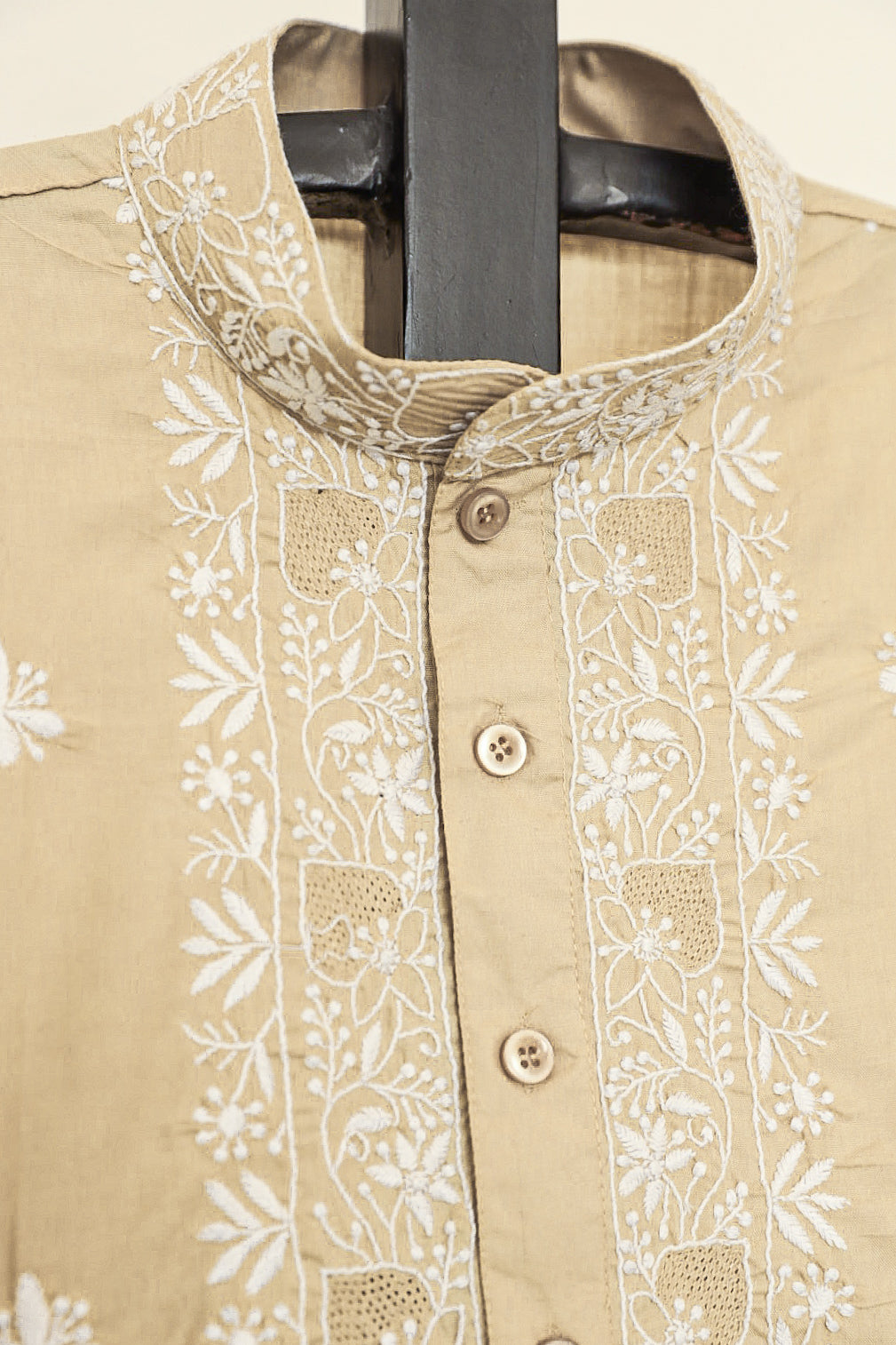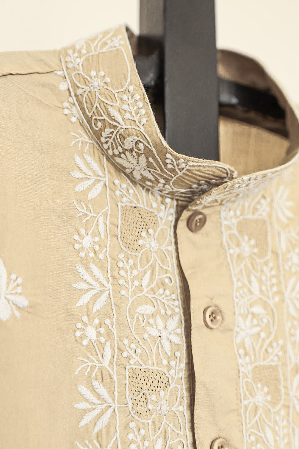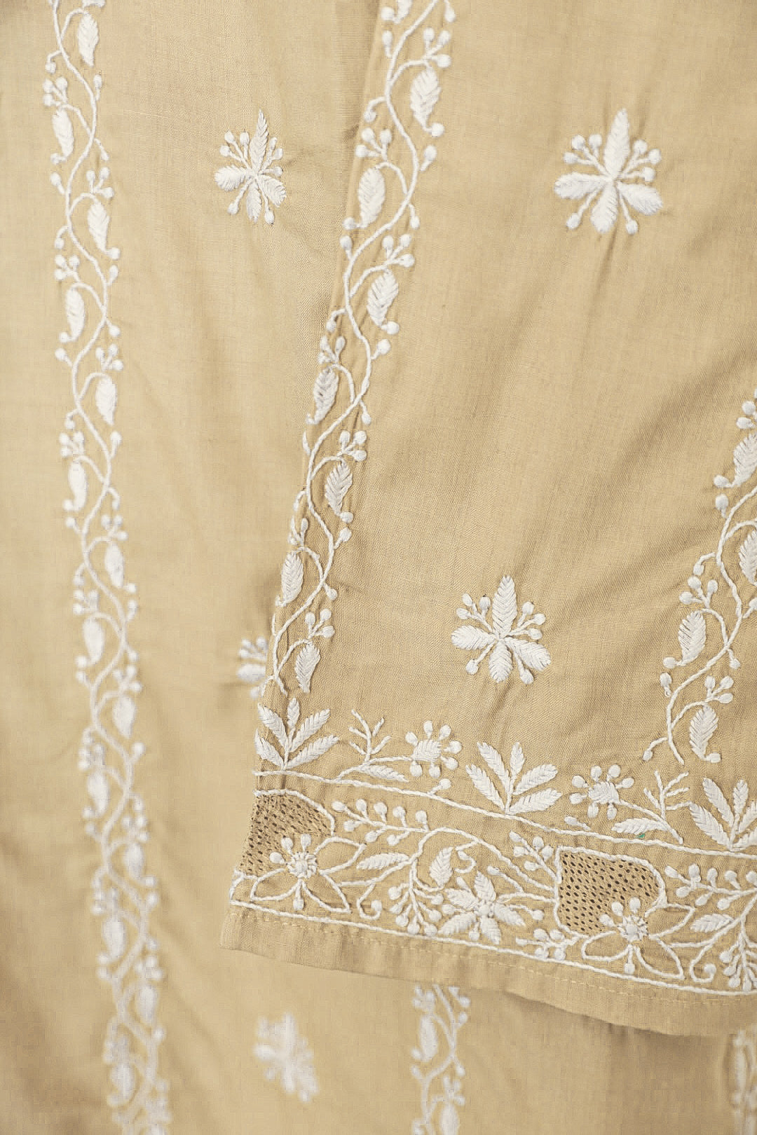 Chikankari is an Art of delicate handwork of Lucknow. It is a handcrafted process where the wooden blocks are manually carved in various designs, and the natural stew for printing is prepared, and printed on the cloth. The chikankari craftsmen then use ten ary of the needlecraft embroidery, and perform the needlework artistically. There are 32 stitches of chikankari broadly classified into Raised stitch, Embossed and Flat stitch.