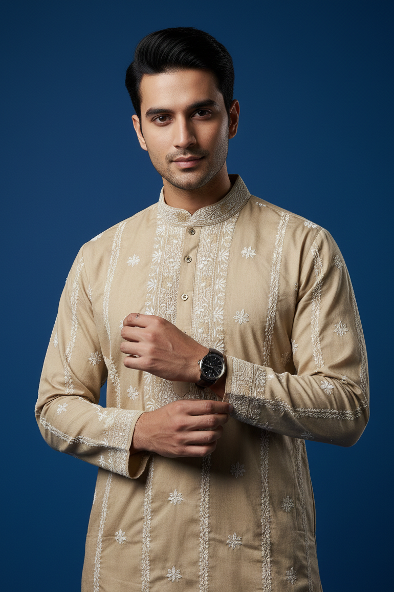 Anant Mul Cotton Chikankari Men's Kurta