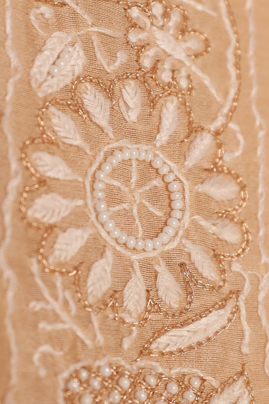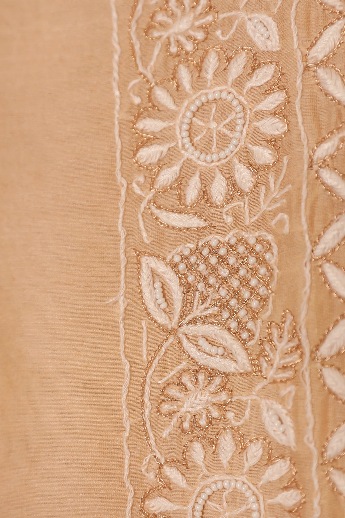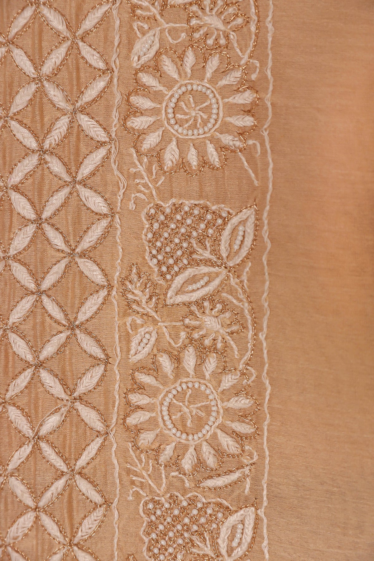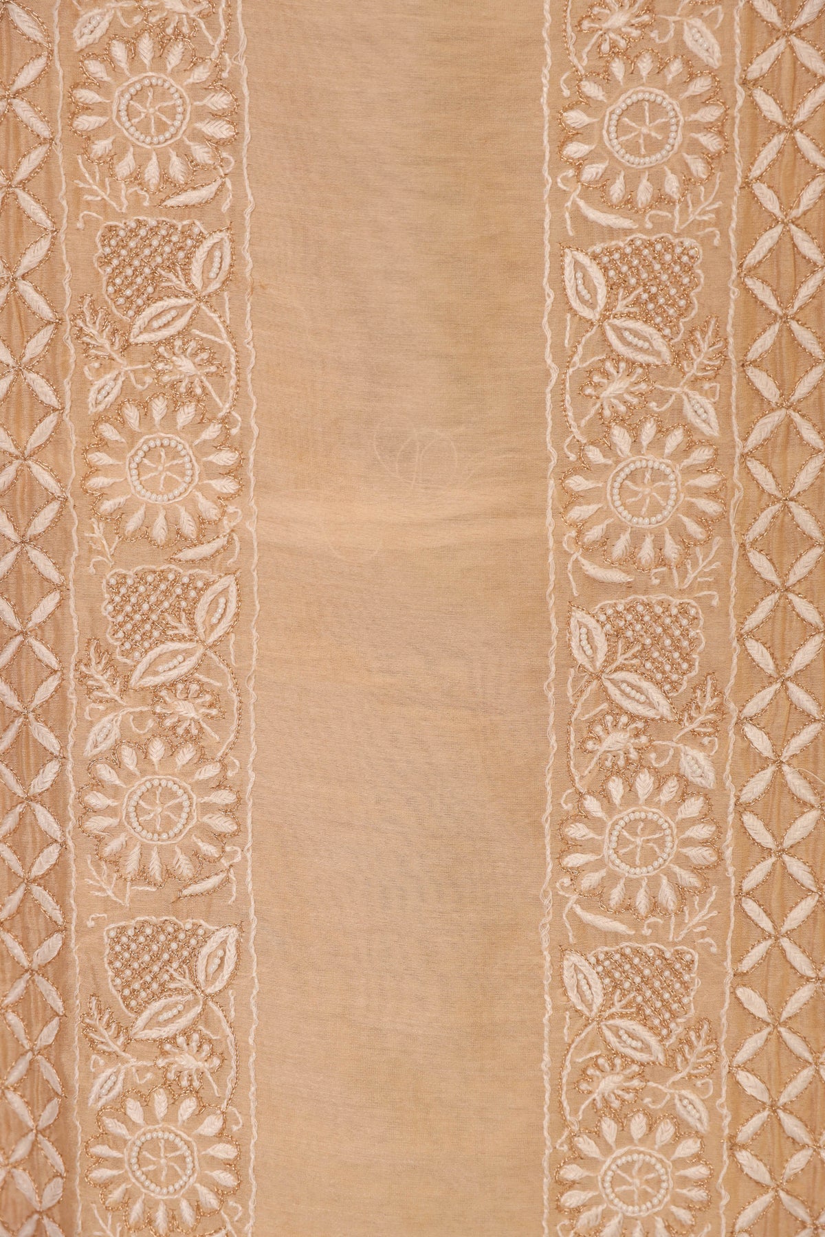 Chikankari is an Art of delicate handwork of Lucknow. It is a handcrafted process where the wooden blocks are manually carved in various designs, and the natural stew for printing is prepared, and printed on the cloth. The chikankari craftsmen then use ten ary of the needlecraft embroidery, and perform the needlework artistically. There are 32 stitches of chikankari broadly classified into Raised stitch, Embossed and Flat stitch.