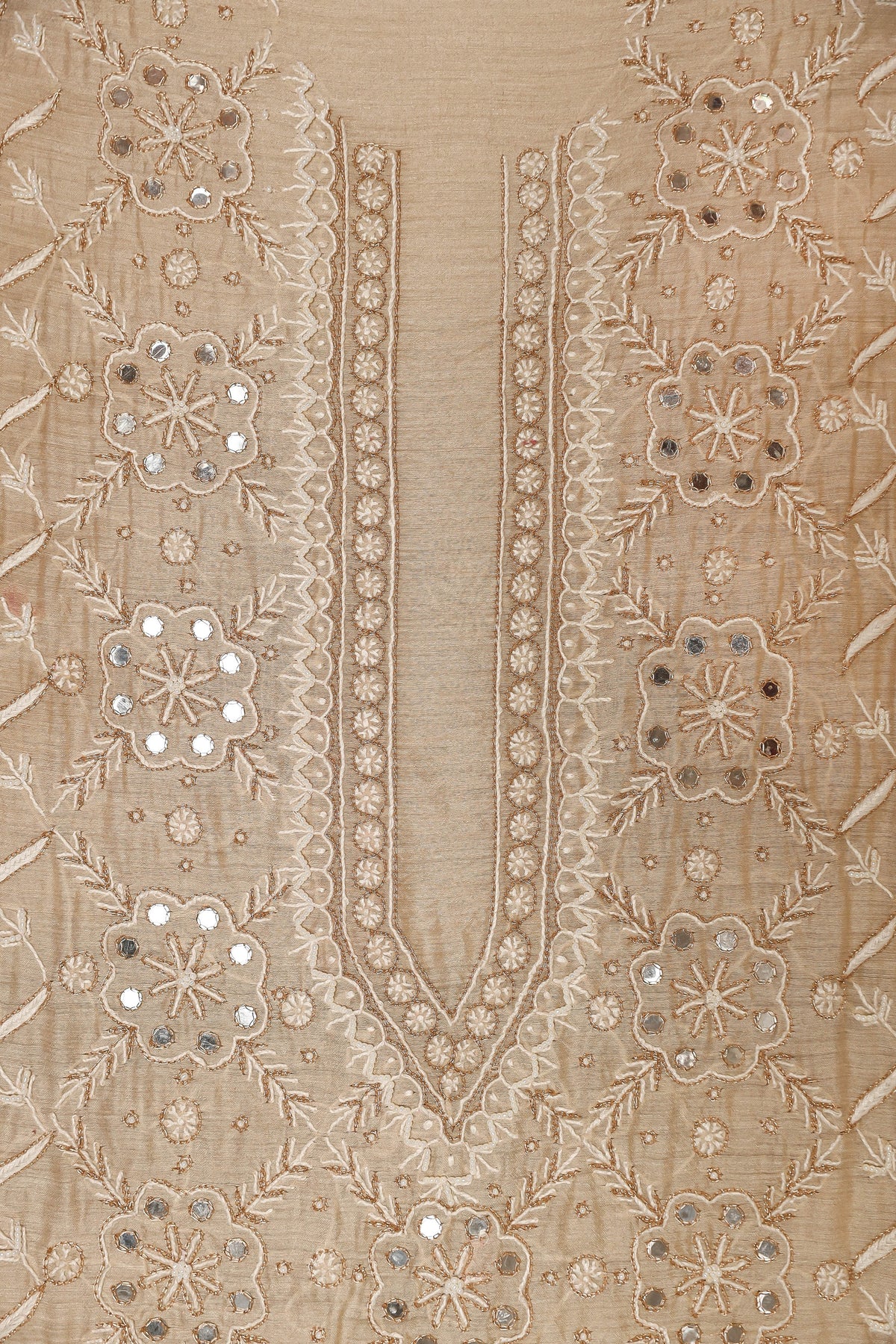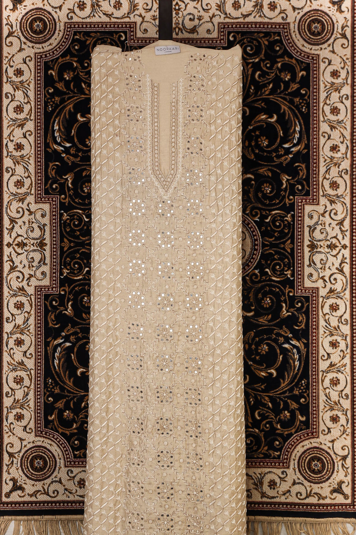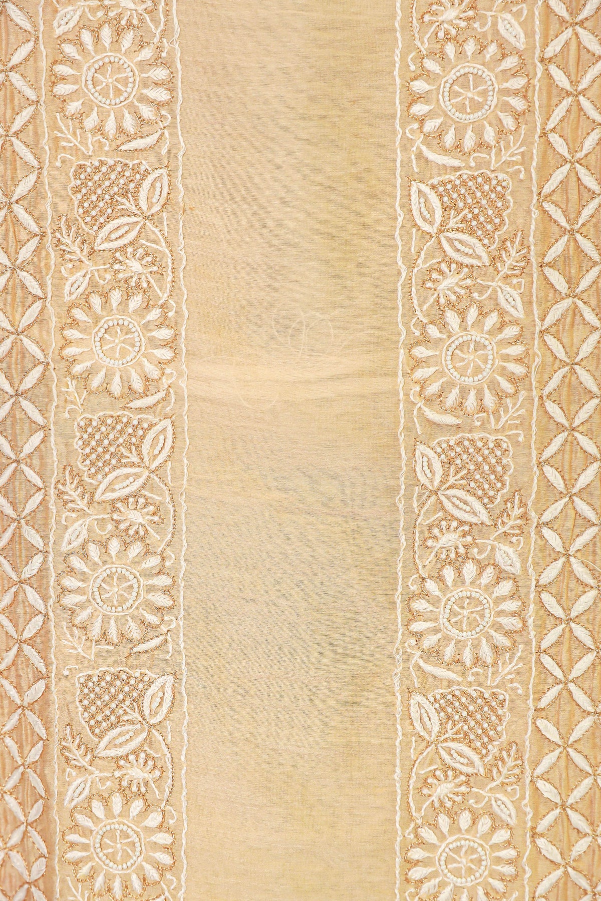 Chikankari is an Art of delicate handwork of Lucknow. It is a handcrafted process where the wooden blocks are manually carved in various designs, and the natural stew for printing is prepared, and printed on the cloth. The chikankari craftsmen then use ten ary of the needlecraft embroidery, and perform the needlework artistically. There are 32 stitches of chikankari broadly classified into Raised stitch, Embossed and Flat stitch.