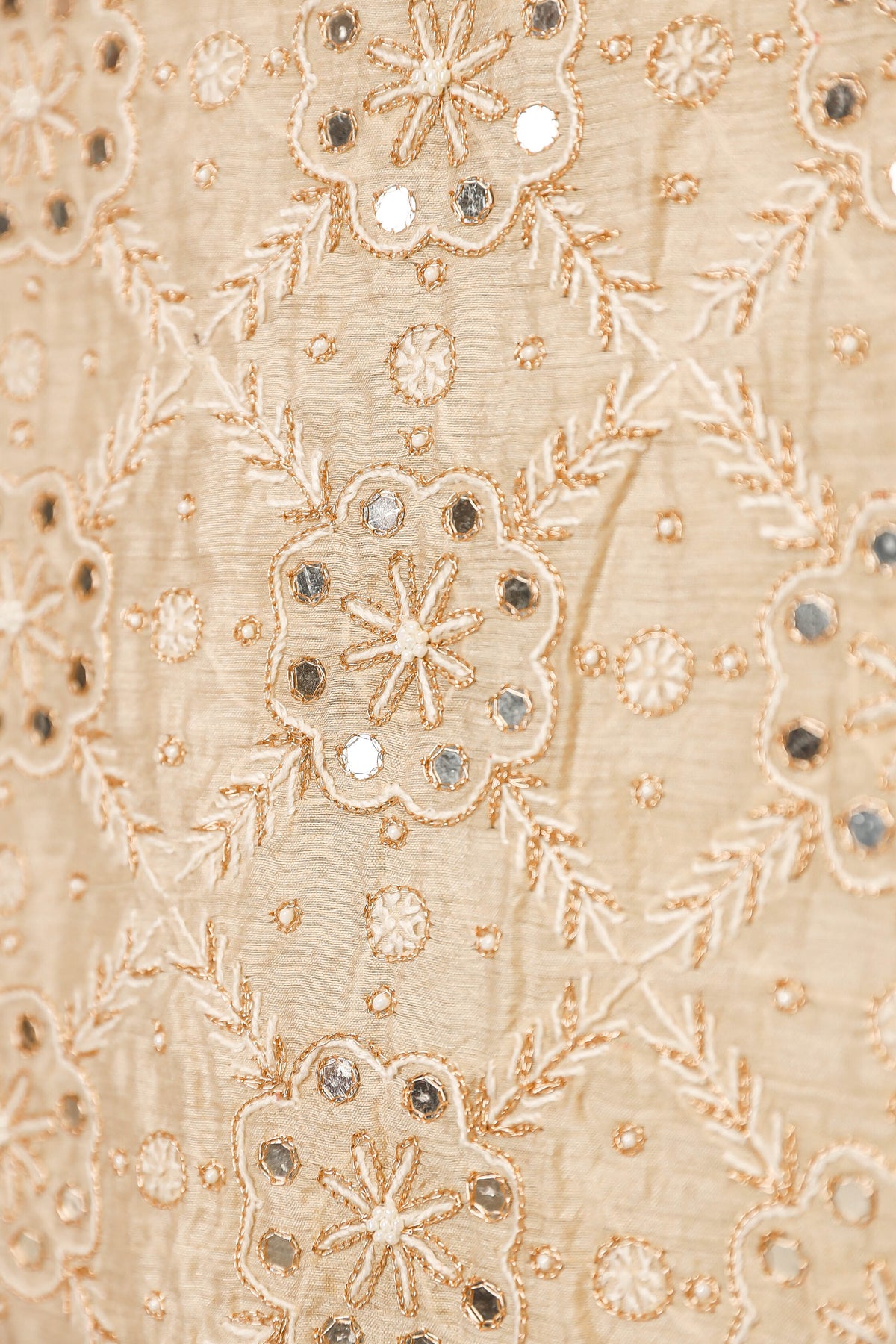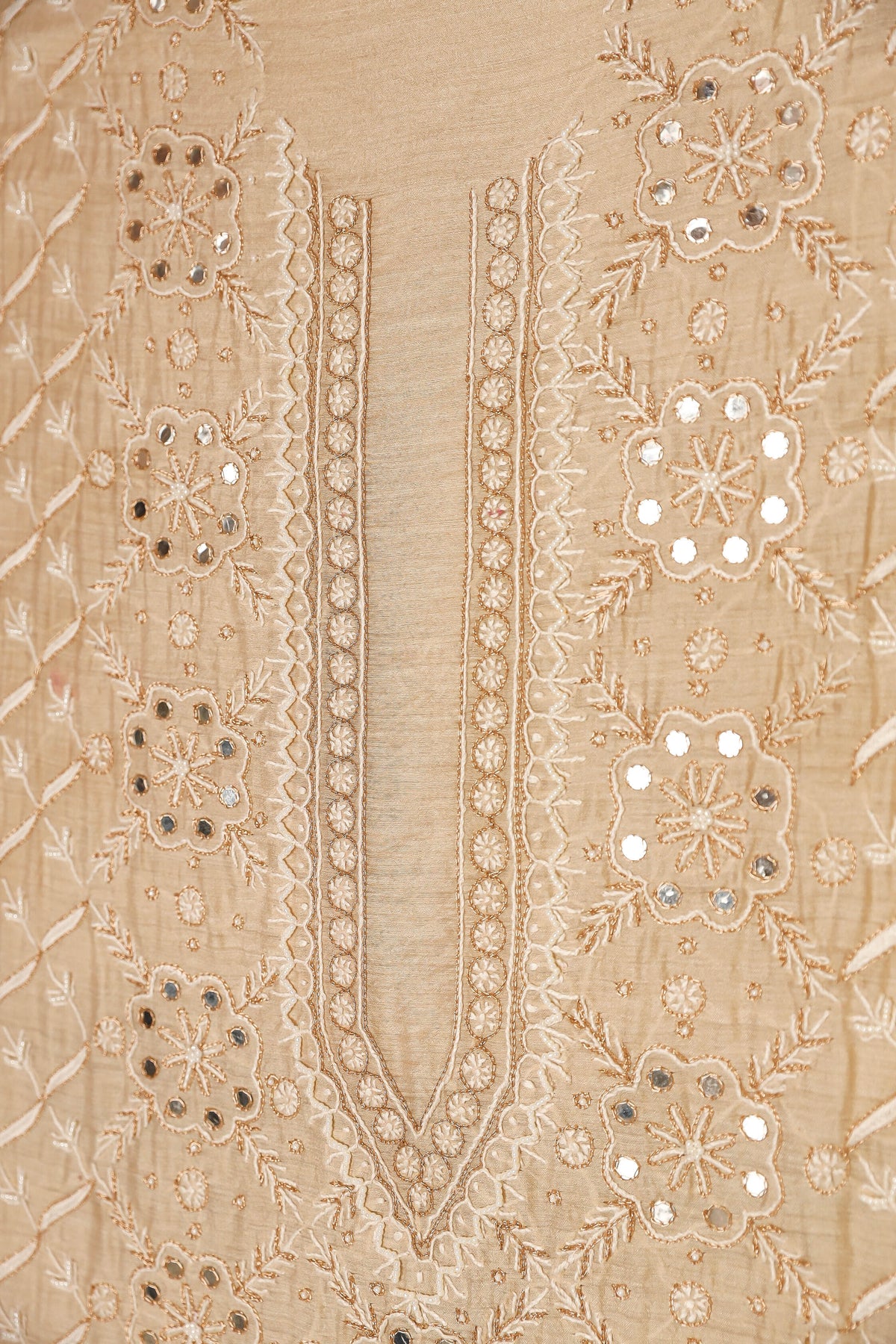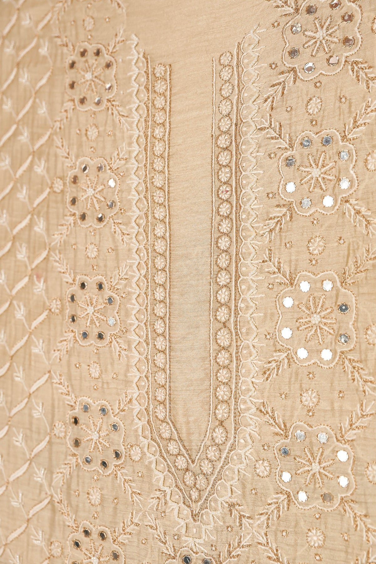 Chikankari is an Art of delicate handwork of Lucknow. It is a handcrafted process where the wooden blocks are manually carved in various designs, and the natural stew for printing is prepared, and printed on the cloth. The chikankari craftsmen then use ten ary of the needlecraft embroidery, and perform the needlework artistically. There are 32 stitches of chikankari broadly classified into Raised stitch, Embossed and Flat stitch.