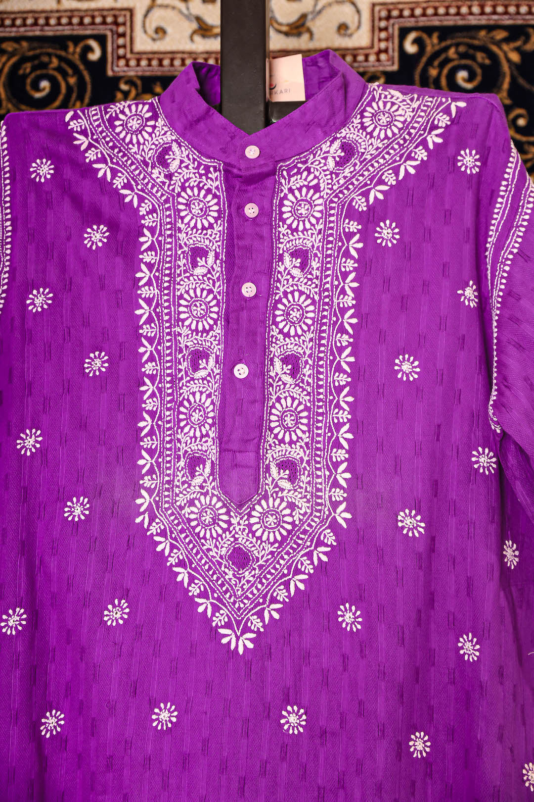 Chikankari is an Art of delicate handwork of Lucknow. It is a handcrafted process where the wooden blocks are manually carved in various designs, and the natural stew for printing is prepared, and printed on the cloth. The chikankari craftsmen then use ten ary of the needlecraft embroidery, and perform the needlework artistically. There are 32 stitches of chikankari broadly classified into Raised stitch, Embossed and Flat stitch.