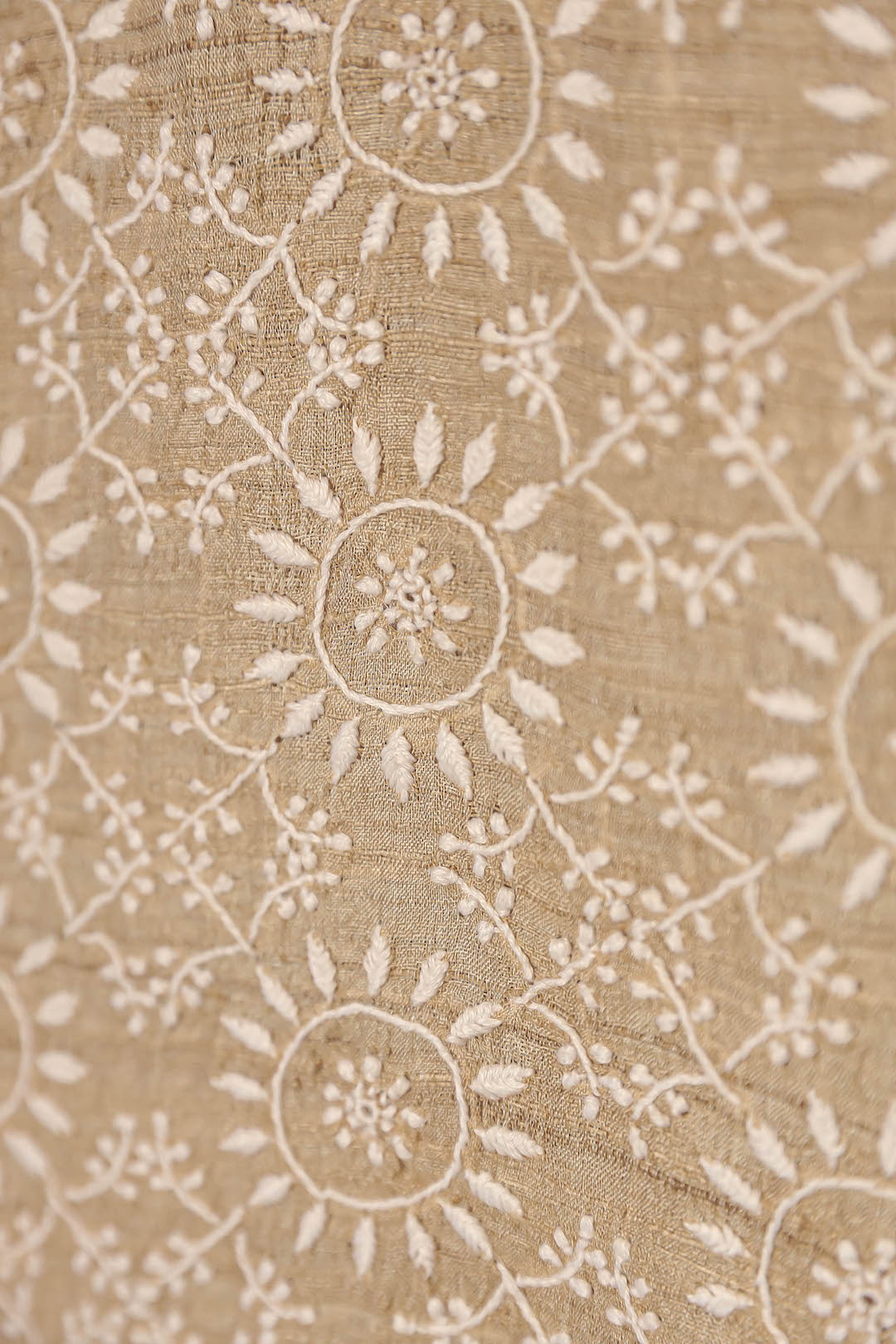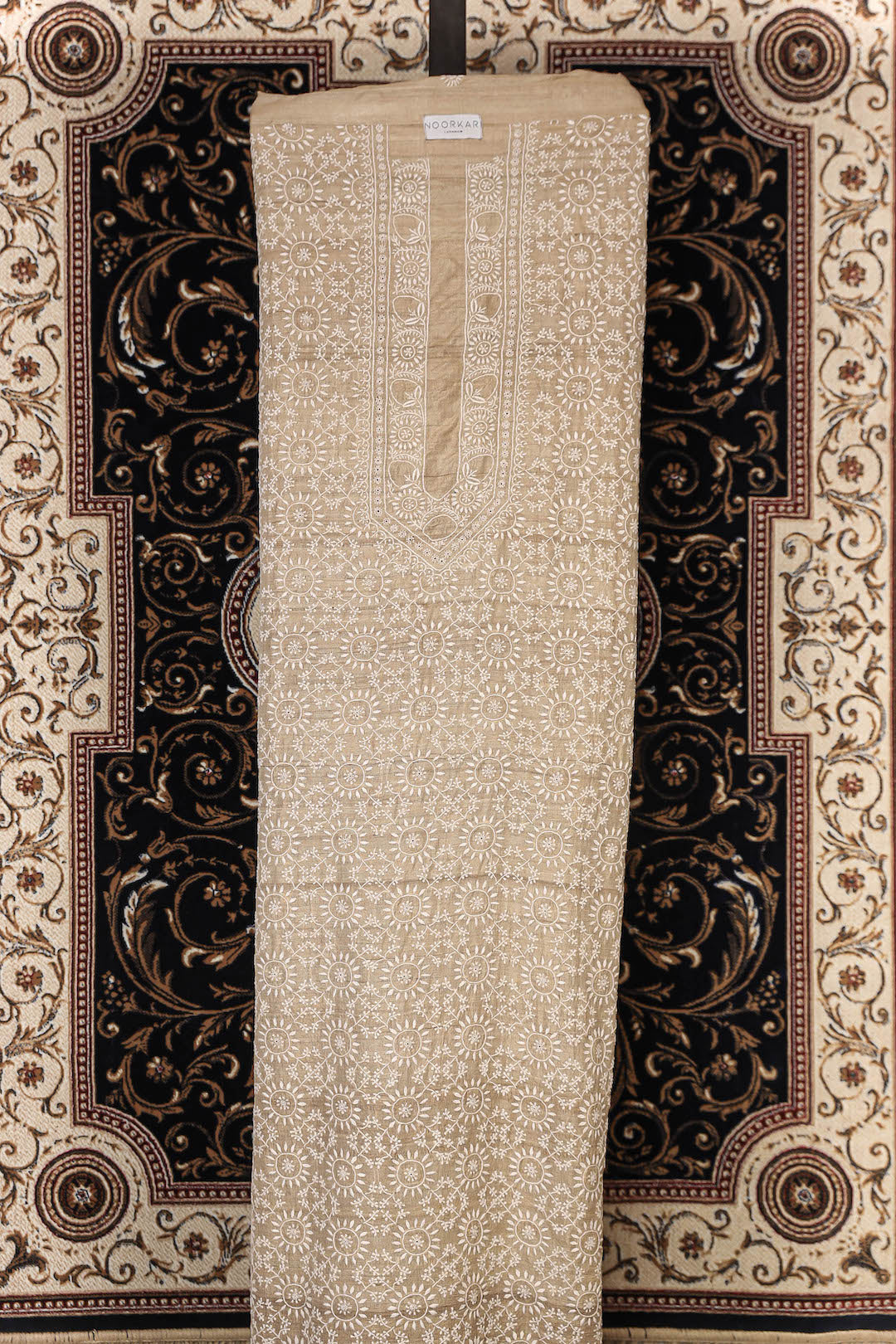 Chikankari is an Art of delicate handwork of Lucknow. It is a handcrafted process where the wooden blocks are manually carved in various designs, and the natural stew for printing is prepared, and printed on the cloth. The chikankari craftsmen then use ten ary of the needlecraft embroidery, and perform the needlework artistically. There are 32 stitches of chikankari broadly classified into Raised stitch, Embossed and Flat stitch.