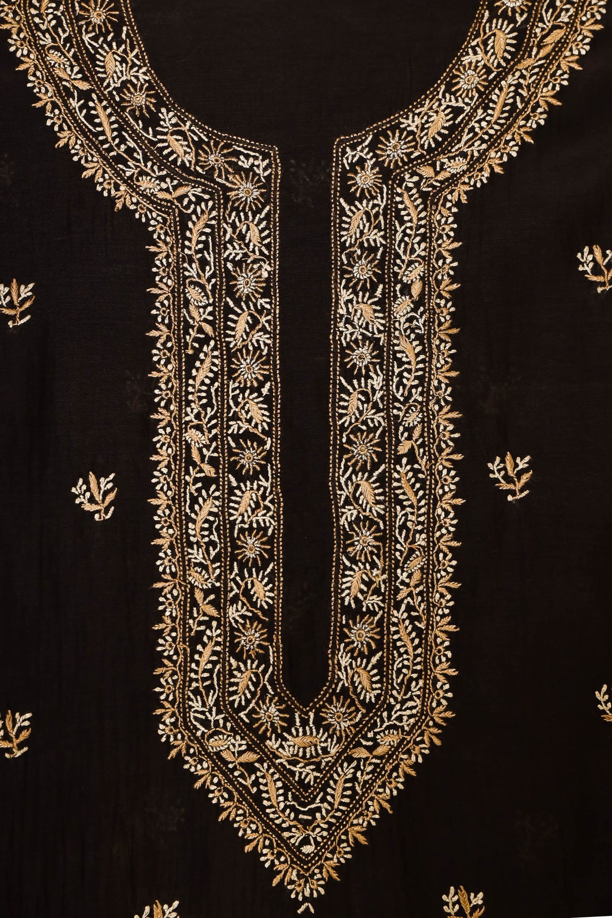 Chikankari is an Art of delicate handwork of Lucknow. It is a handcrafted process where the wooden blocks are manually carved in various designs, and the natural stew for printing is prepared, and printed on the cloth. The chikankari craftsmen then use ten ary of the needlecraft embroidery, and perform the needlework artistically. There are 32 stitches of chikankari broadly classified into Raised stitch, Embossed and Flat stitch.