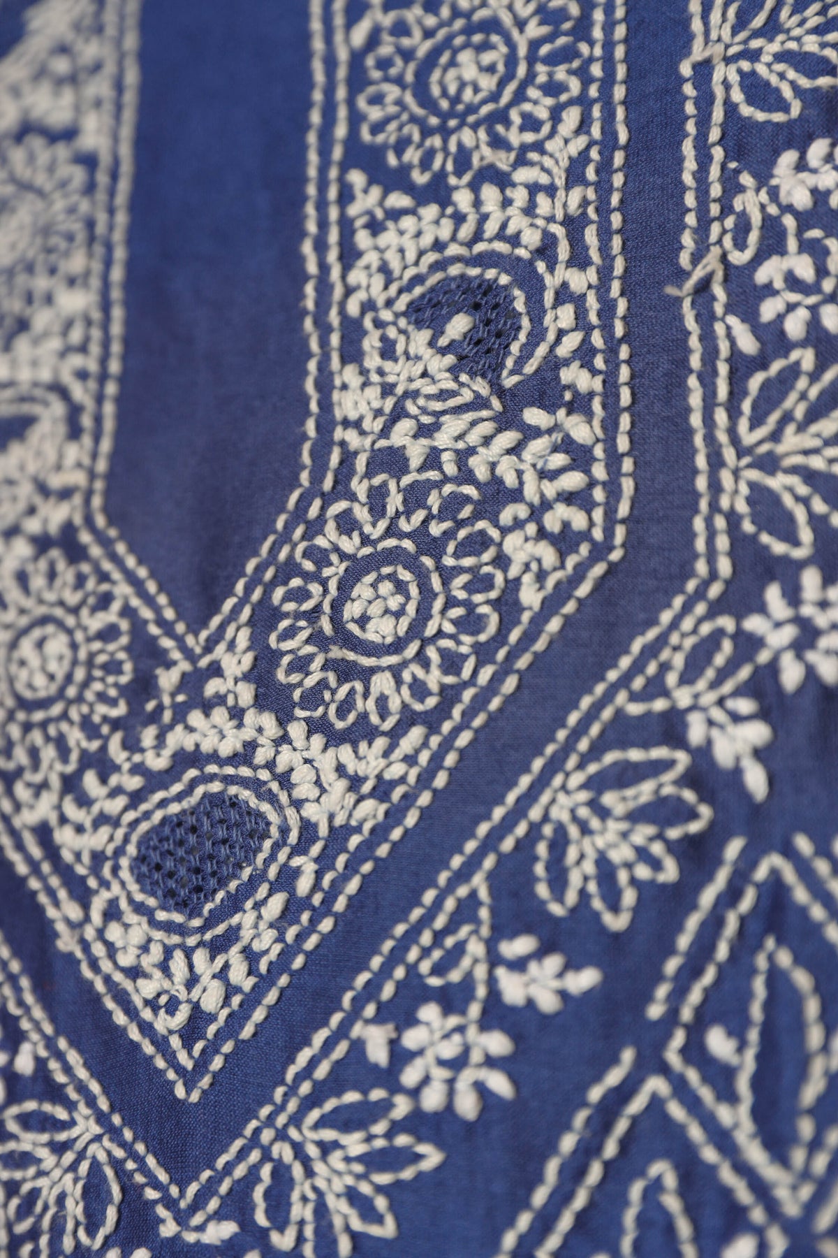 Chikankari is an Art of delicate handwork of Lucknow. It is a handcrafted process where the wooden blocks are manually carved in various designs, and the natural stew for printing is prepared, and printed on the cloth. The chikankari craftsmen then use ten ary of the needlecraft embroidery, and perform the needlework artistically. There are 32 stitches of chikankari broadly classified into Raised stitch, Embossed and Flat stitch.
