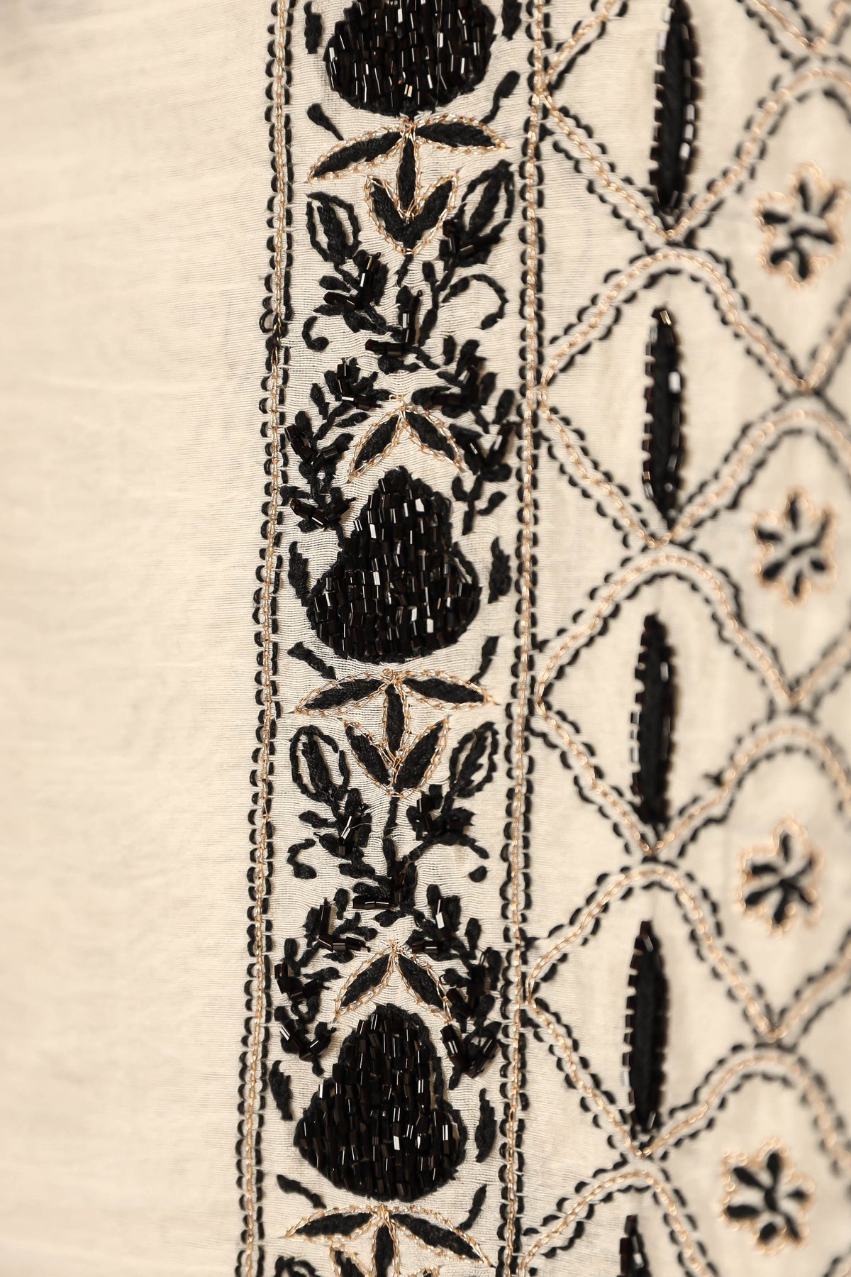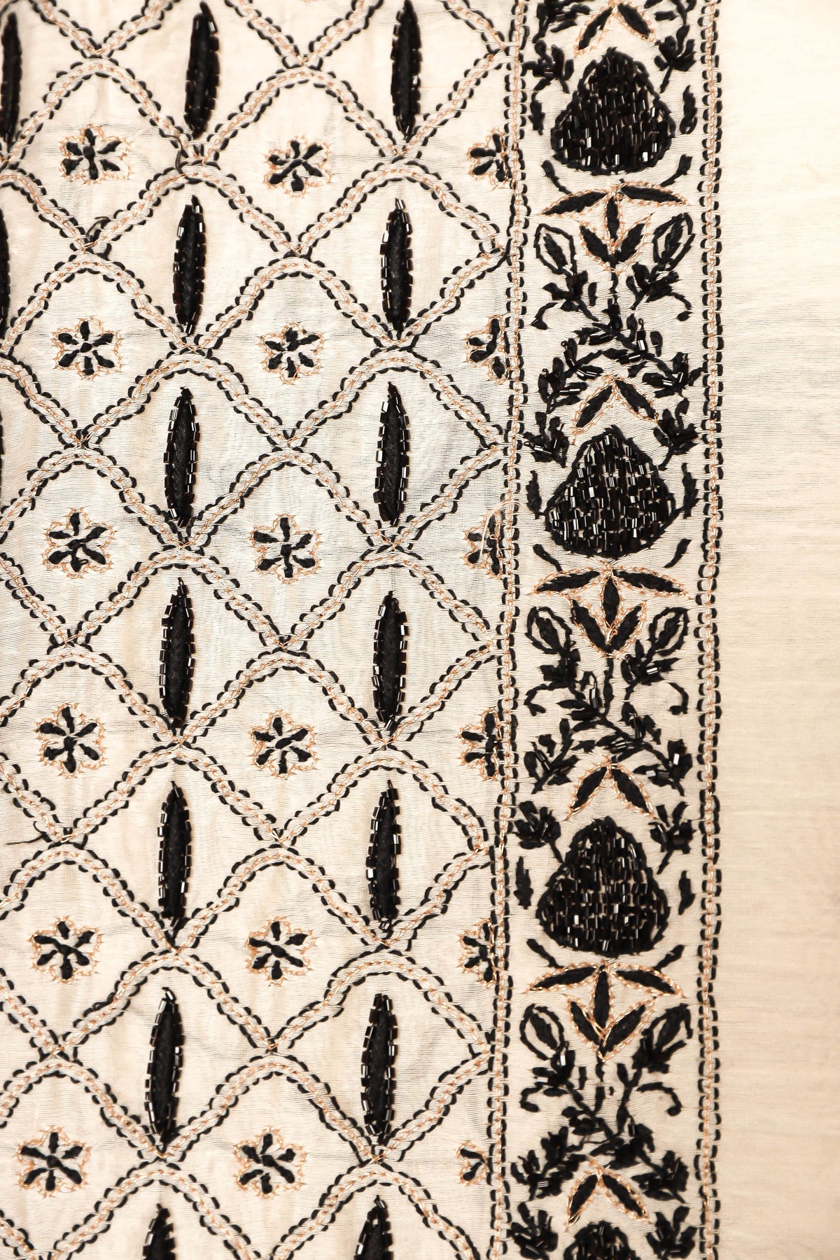 Chikankari is an Art of delicate handwork of Lucknow. It is a handcrafted process where the wooden blocks are manually carved in various designs, and the natural stew for printing is prepared, and printed on the cloth. The chikankari craftsmen then use ten ary of the needlecraft embroidery, and perform the needlework artistically. There are 32 stitches of chikankari broadly classified into Raised stitch, Embossed and Flat stitch.