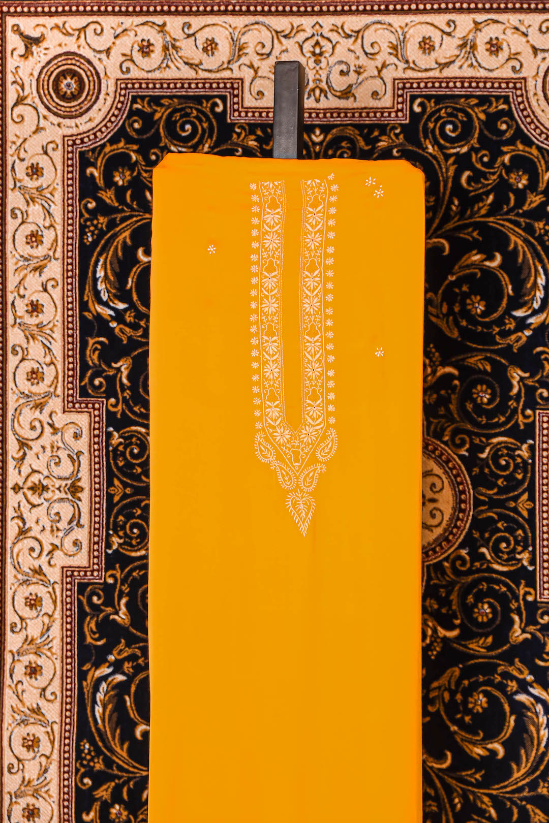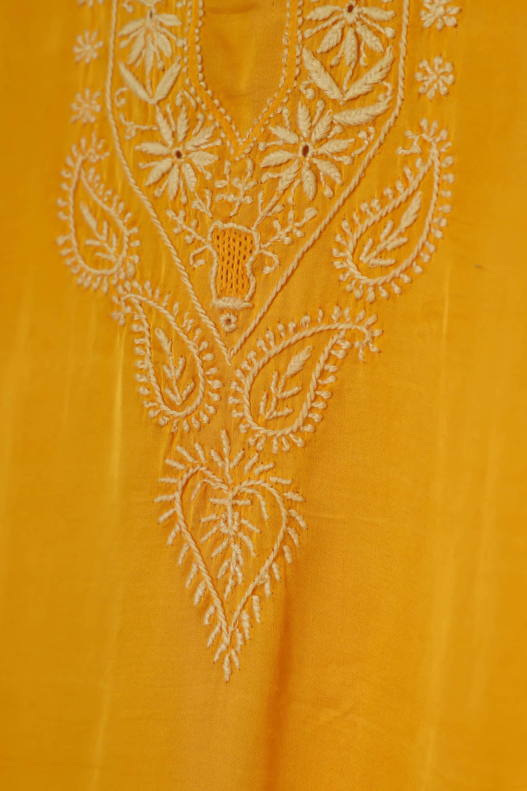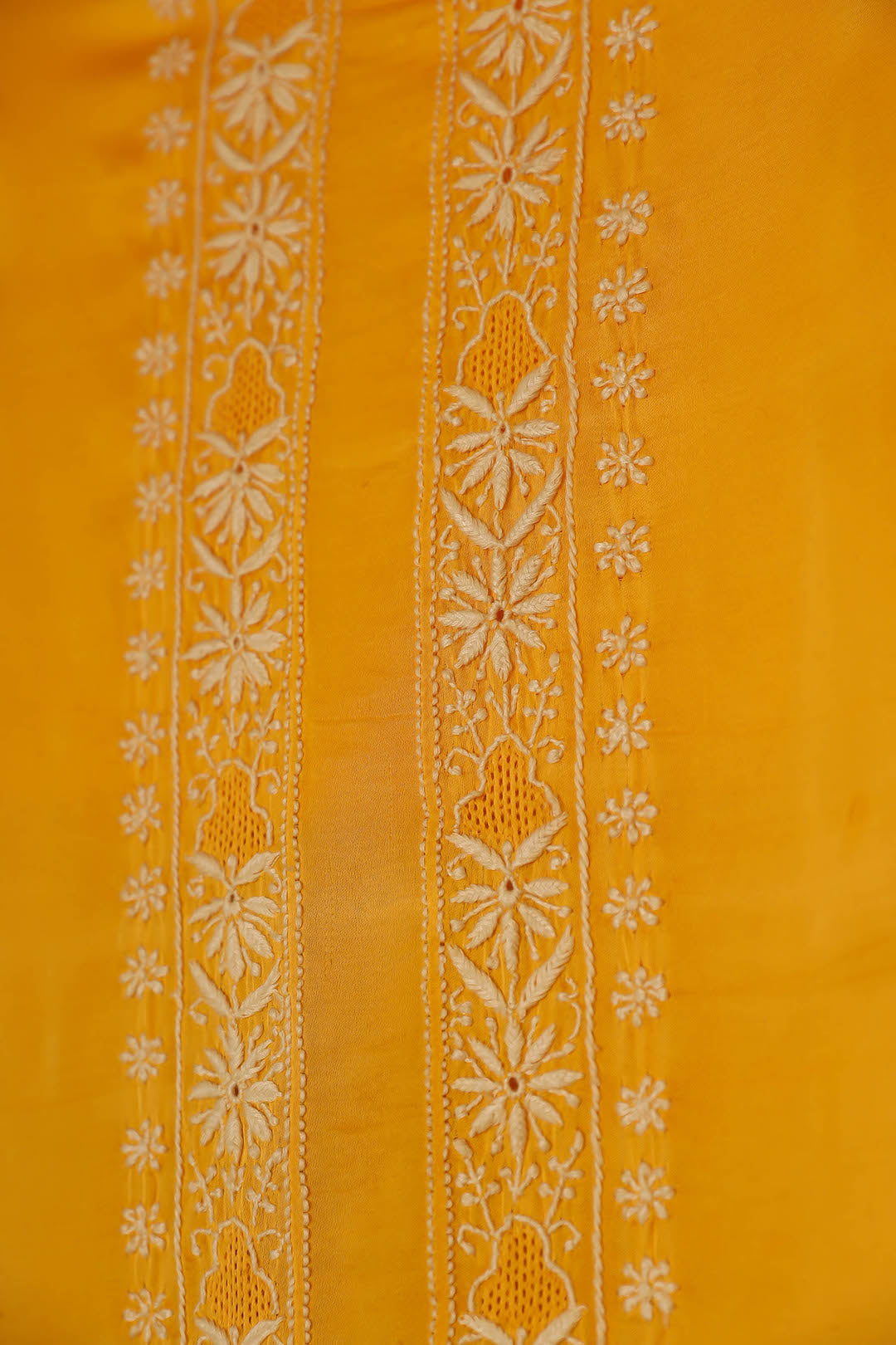 Chikankari is an Art of delicate handwork of Lucknow. It is a handcrafted process where the wooden blocks are manually carved in various designs, and the natural stew for printing is prepared, and printed on the cloth. The chikankari craftsmen then use ten ary of the needlecraft embroidery, and perform the needlework artistically. There are 32 stitches of chikankari broadly classified into Raised stitch, Embossed and Flat stitch.