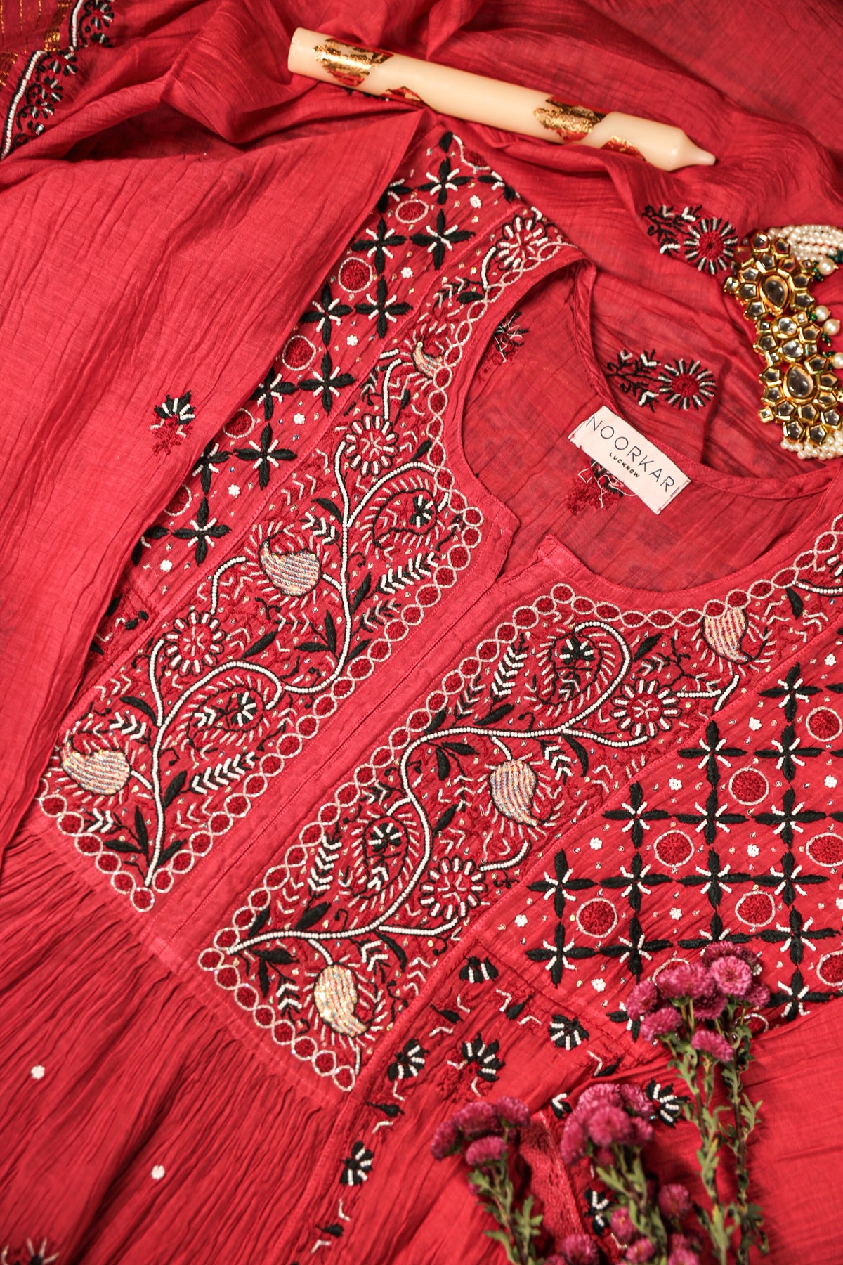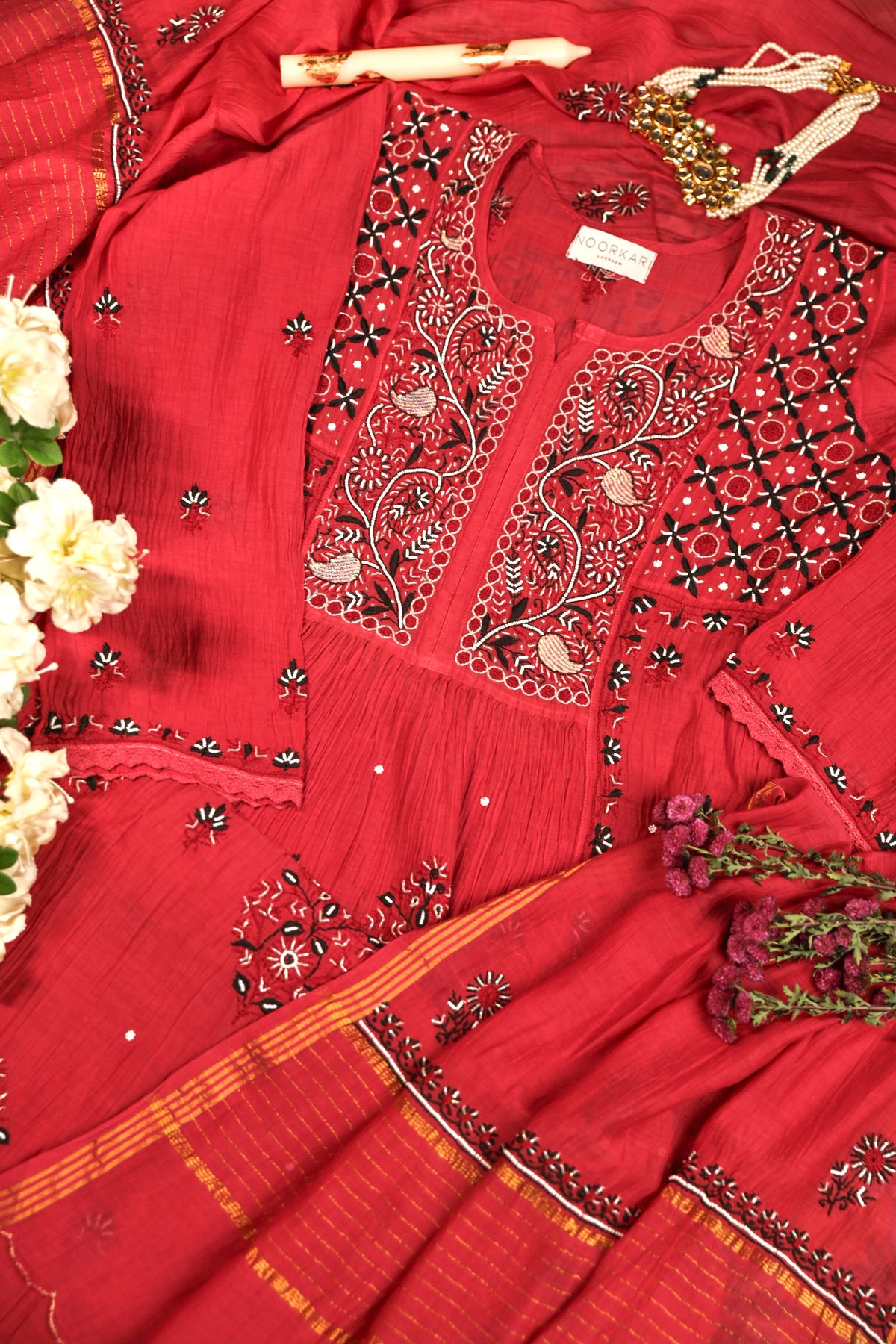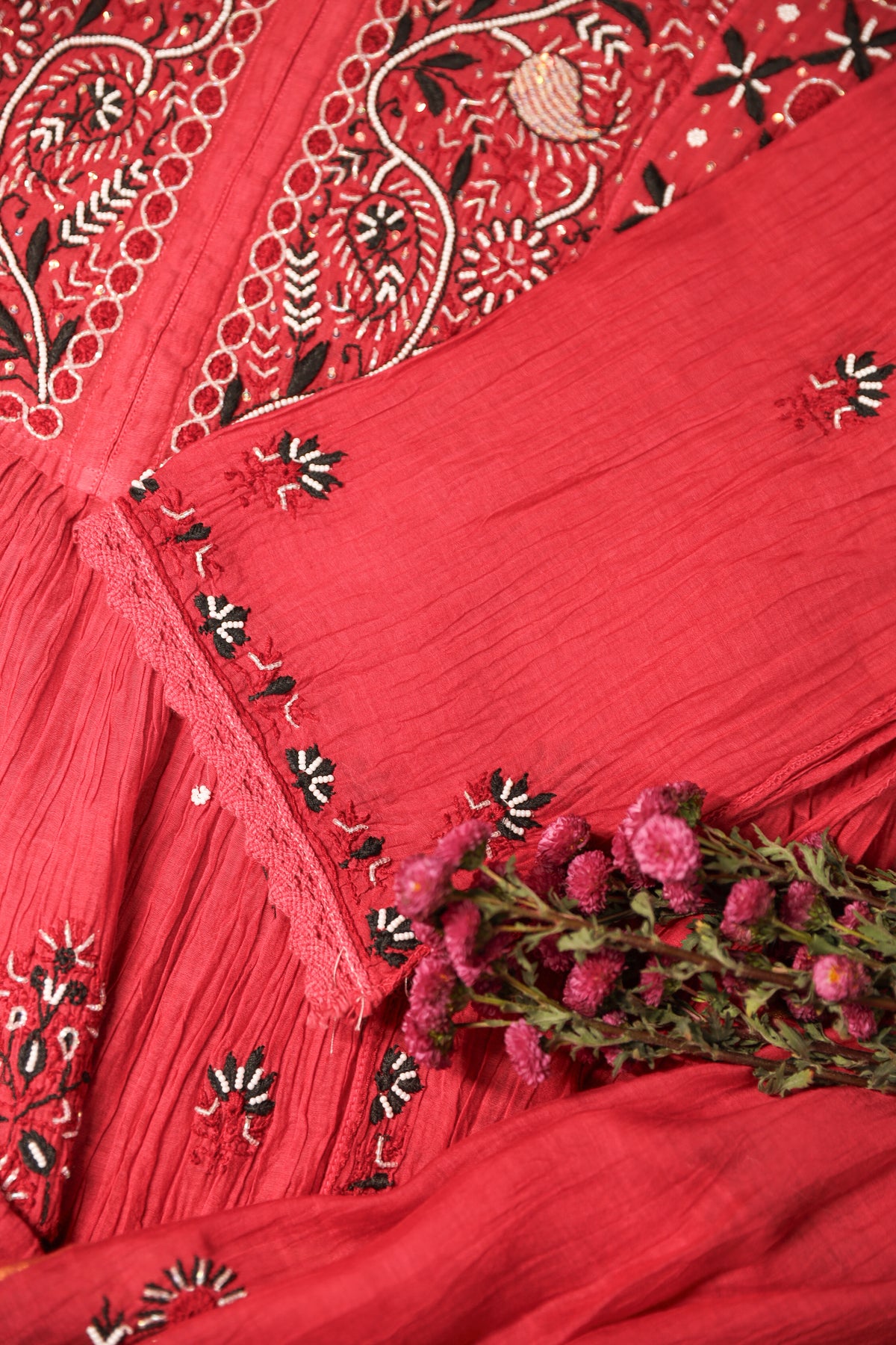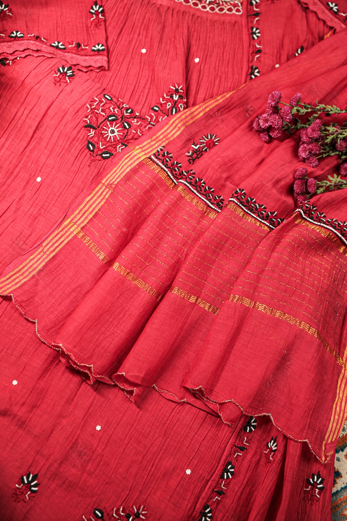 Reah Mul Chanderi Chikankari Kurta And Dupatta Set