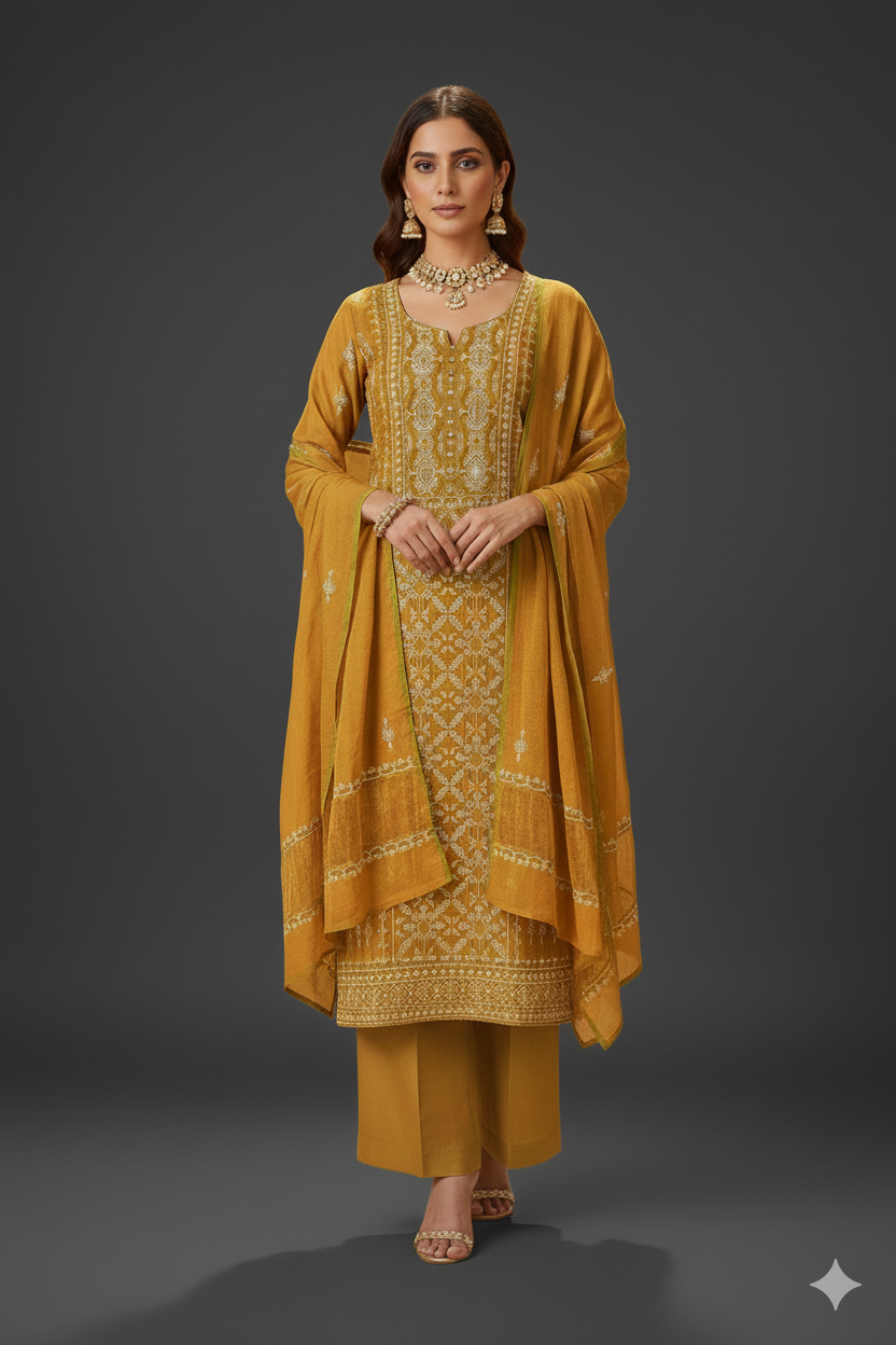 Chikankari is an Art of delicate handwork of Lucknow. It is a handcrafted process where the wooden blocks are manually carved in various designs, and the natural stew for printing is prepared, and printed on the cloth. The chikankari craftsmen then use ten ary of the needlecraft embroidery, and perform the needlework artistically. There are 32 stitches of chikankari broadly classified into Raised stitch, Embossed and Flat stitch.