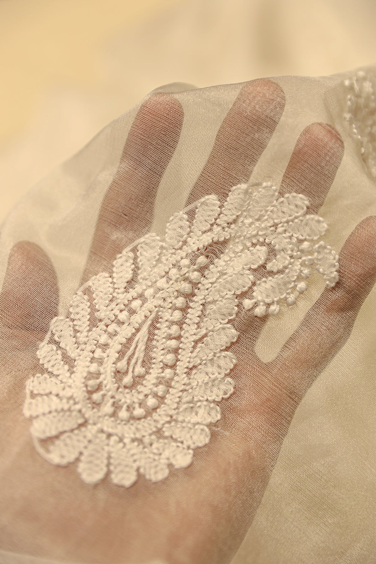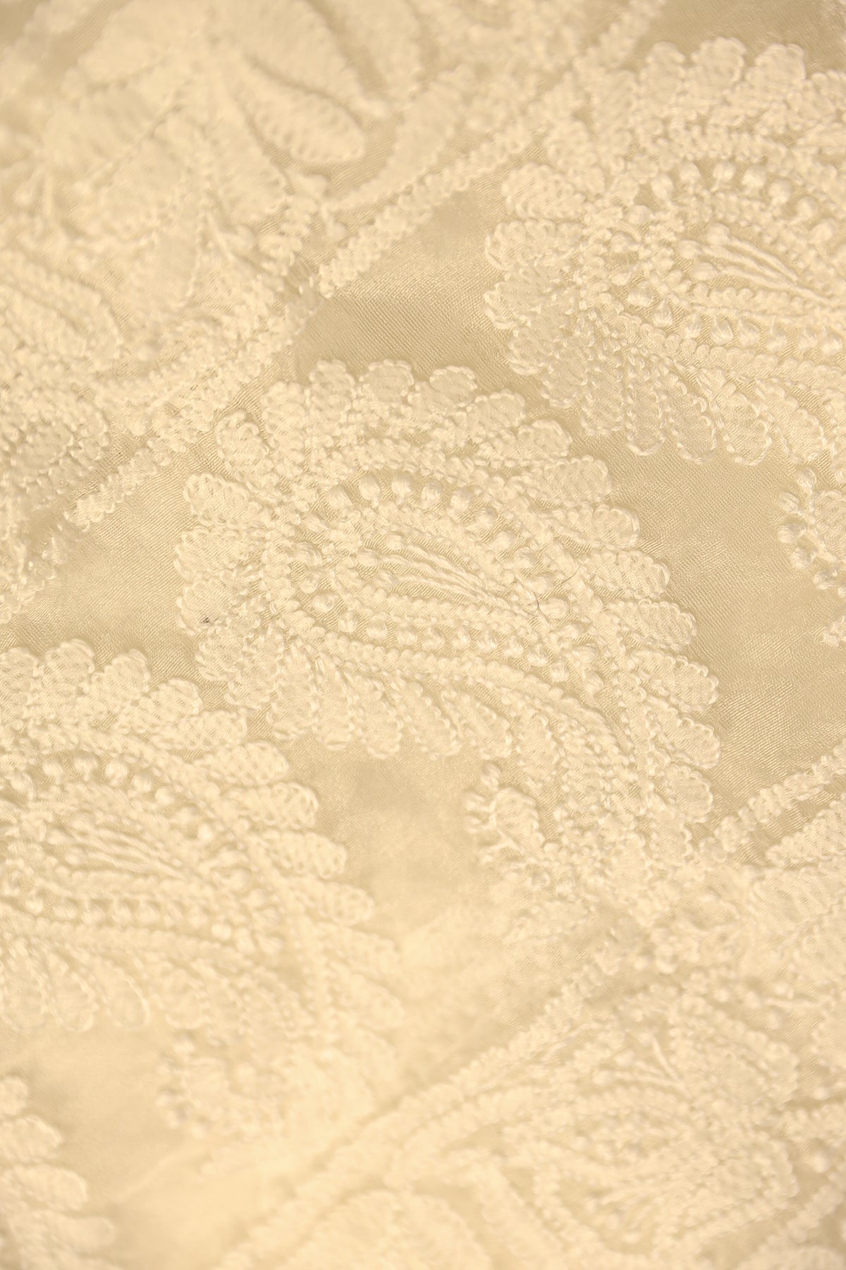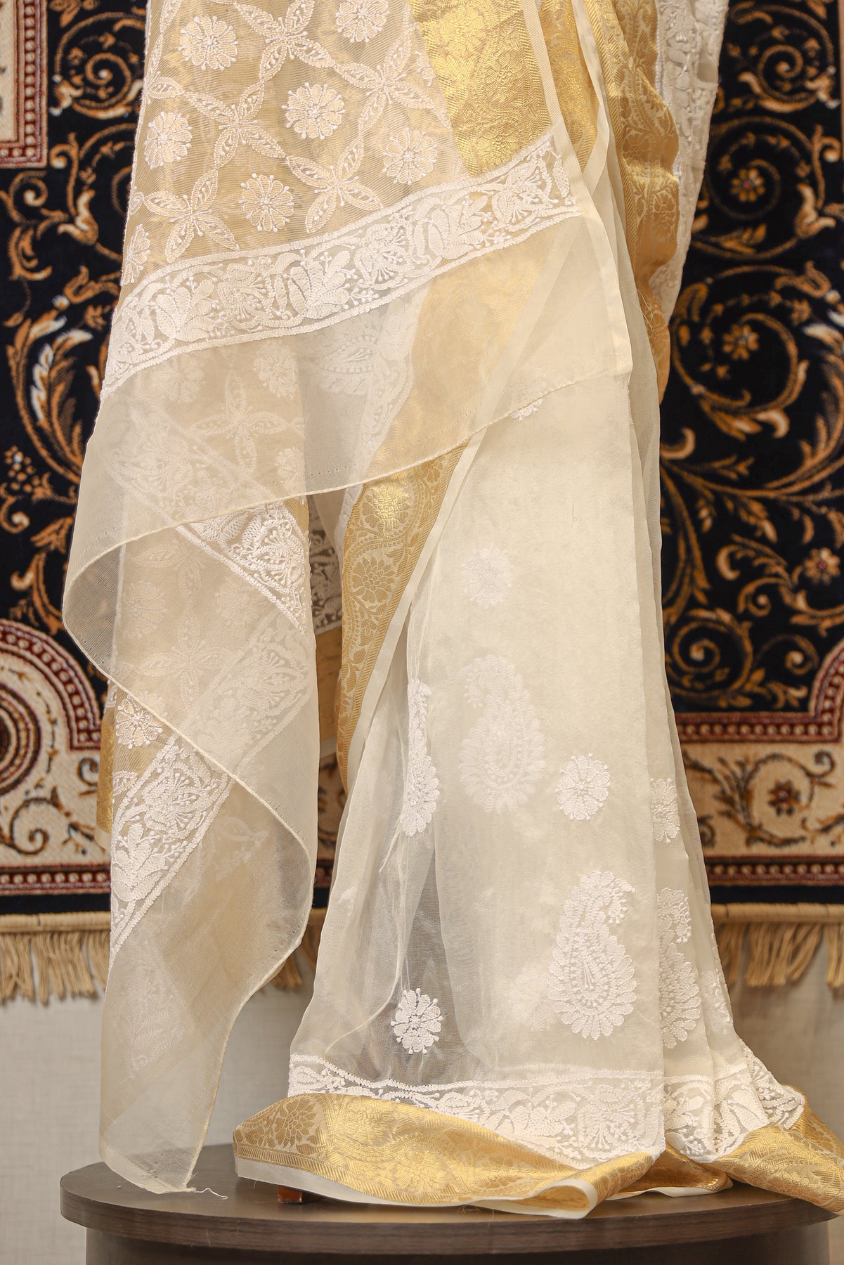 Trivia : Chikankari is an Art of delicate handwork of Lucknow. It is a handcrafted process where the wooden blocks are manually carved in various designs, and the natural stew for printing is prepared, and printed on the cloth. The chikankari craftsmen then use ten ary of the needlecraft embroidery, and perform the needlework artistically. There are 32 stitches of chikankari broadly classified into Raised stitch, Embossed and Flat stitch. Time Period Of Handmade- It took 9 to 12 months for the product to be handcrafted from designing to finishing.