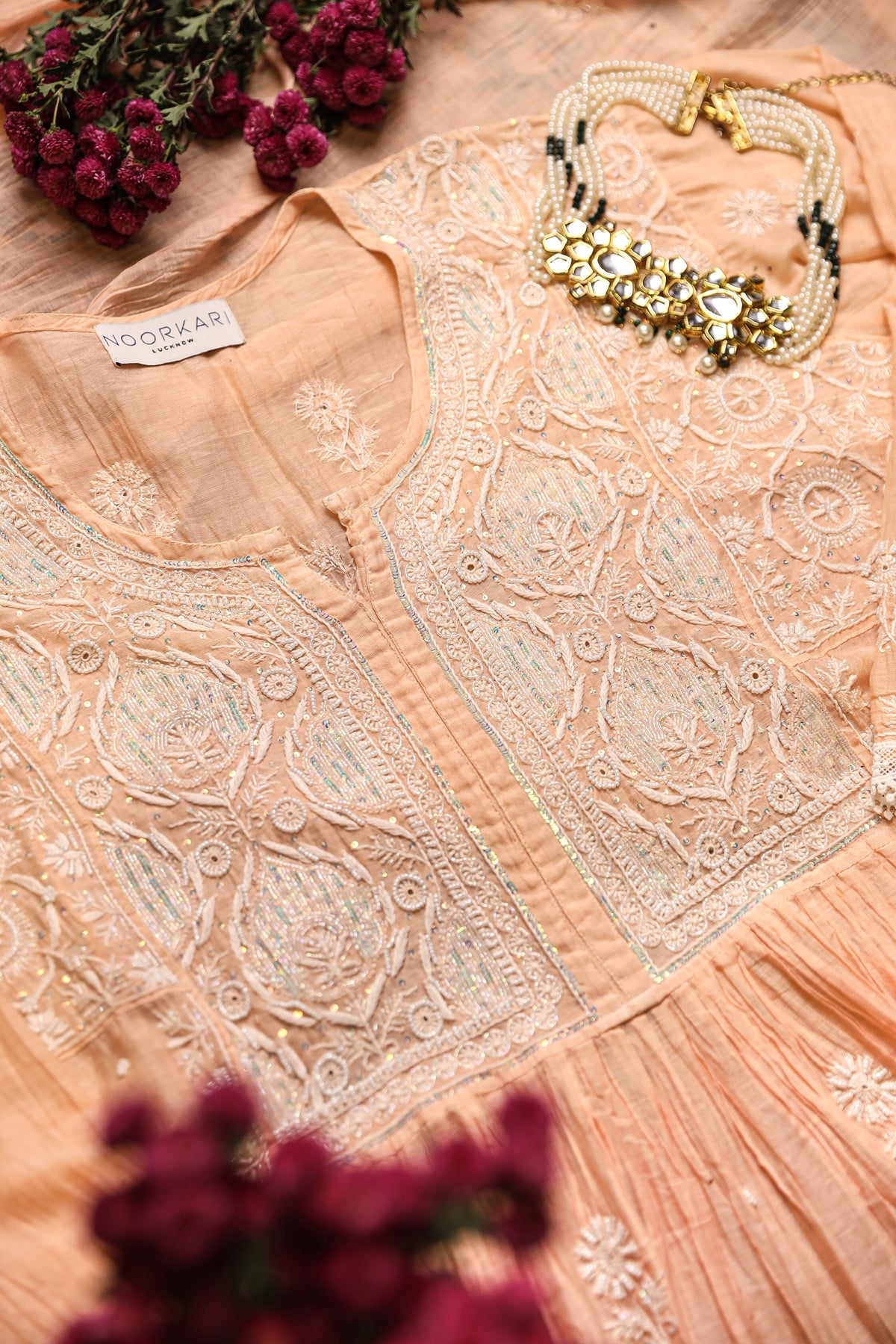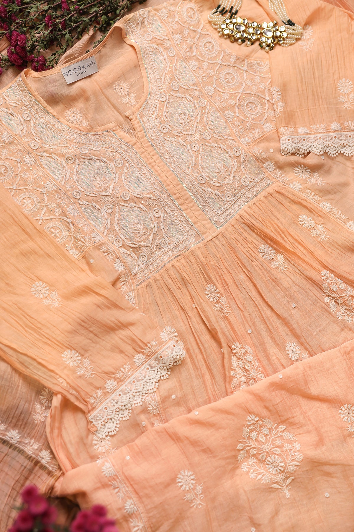 Ishani Mul Chanderi Chikankari Kurta And Dupatta Set