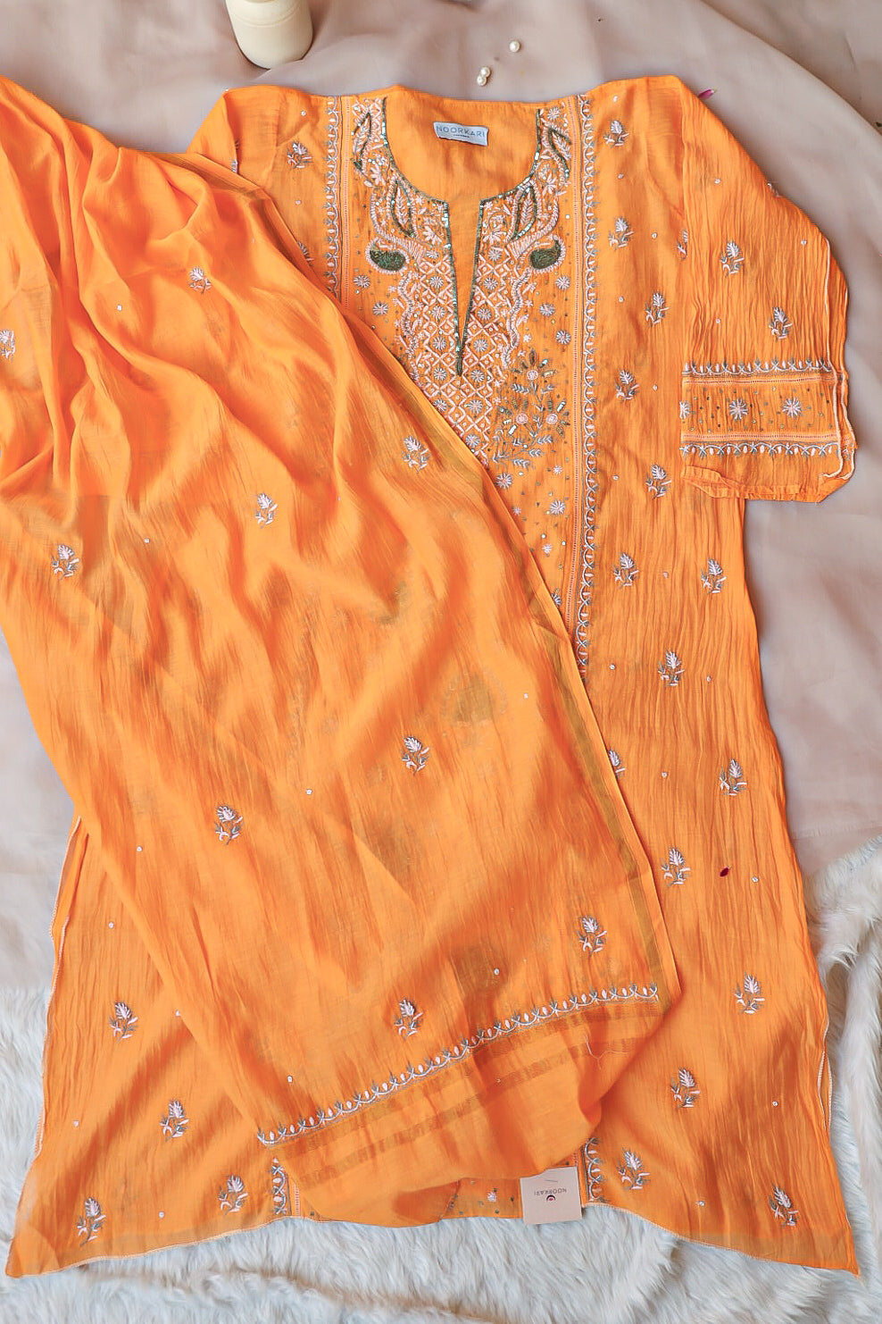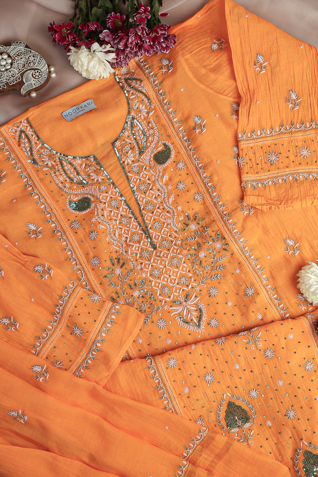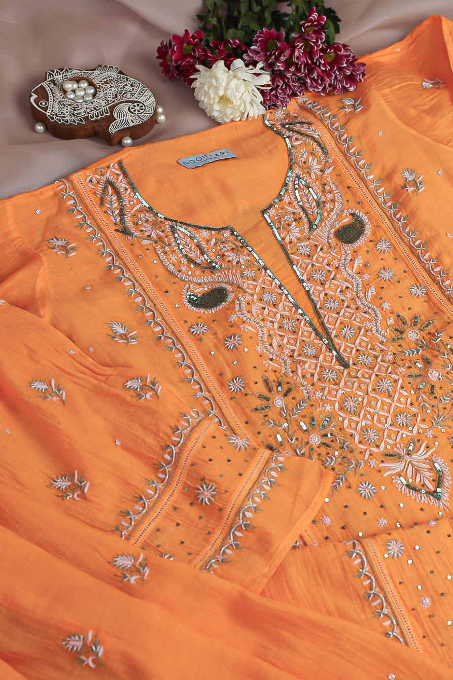 Taniya Mul Chanderi Chikankari Kurta And Dupatta Set