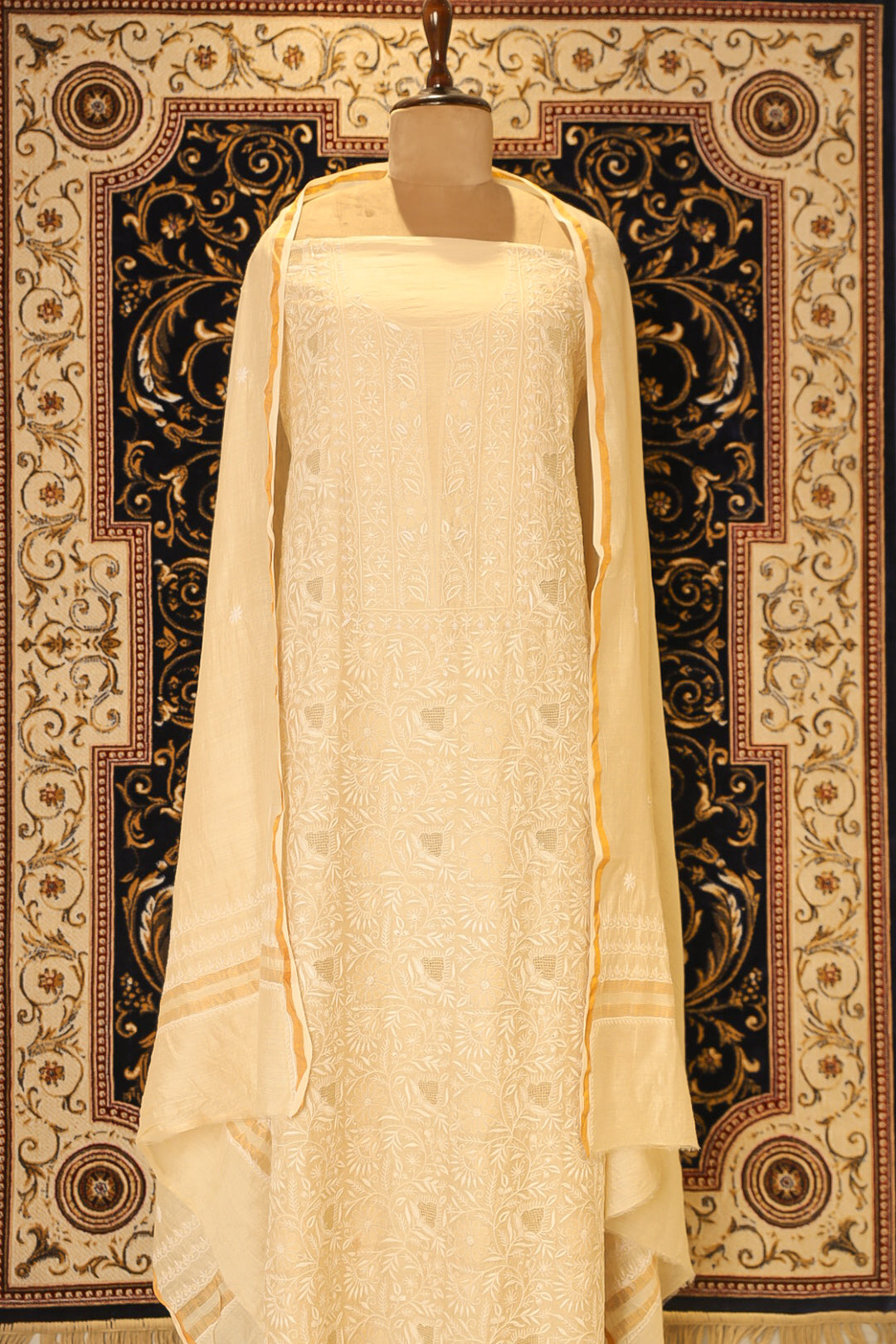 Zara Monga Silk Chikankari 3 Piece Suit Set