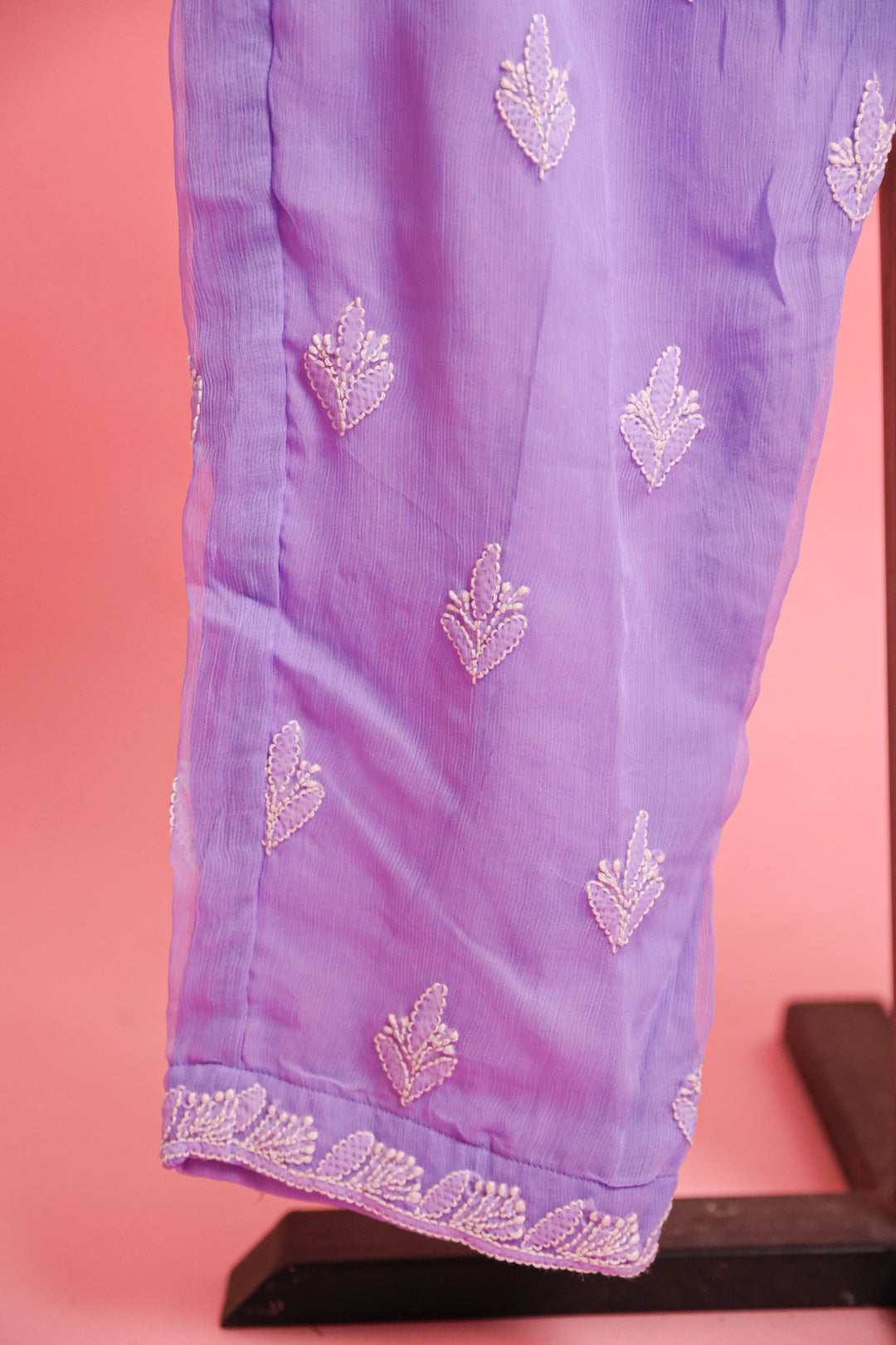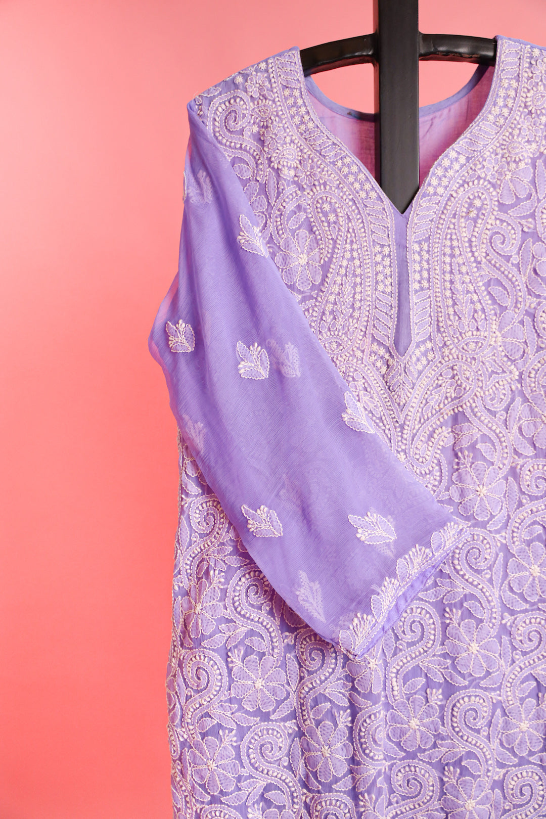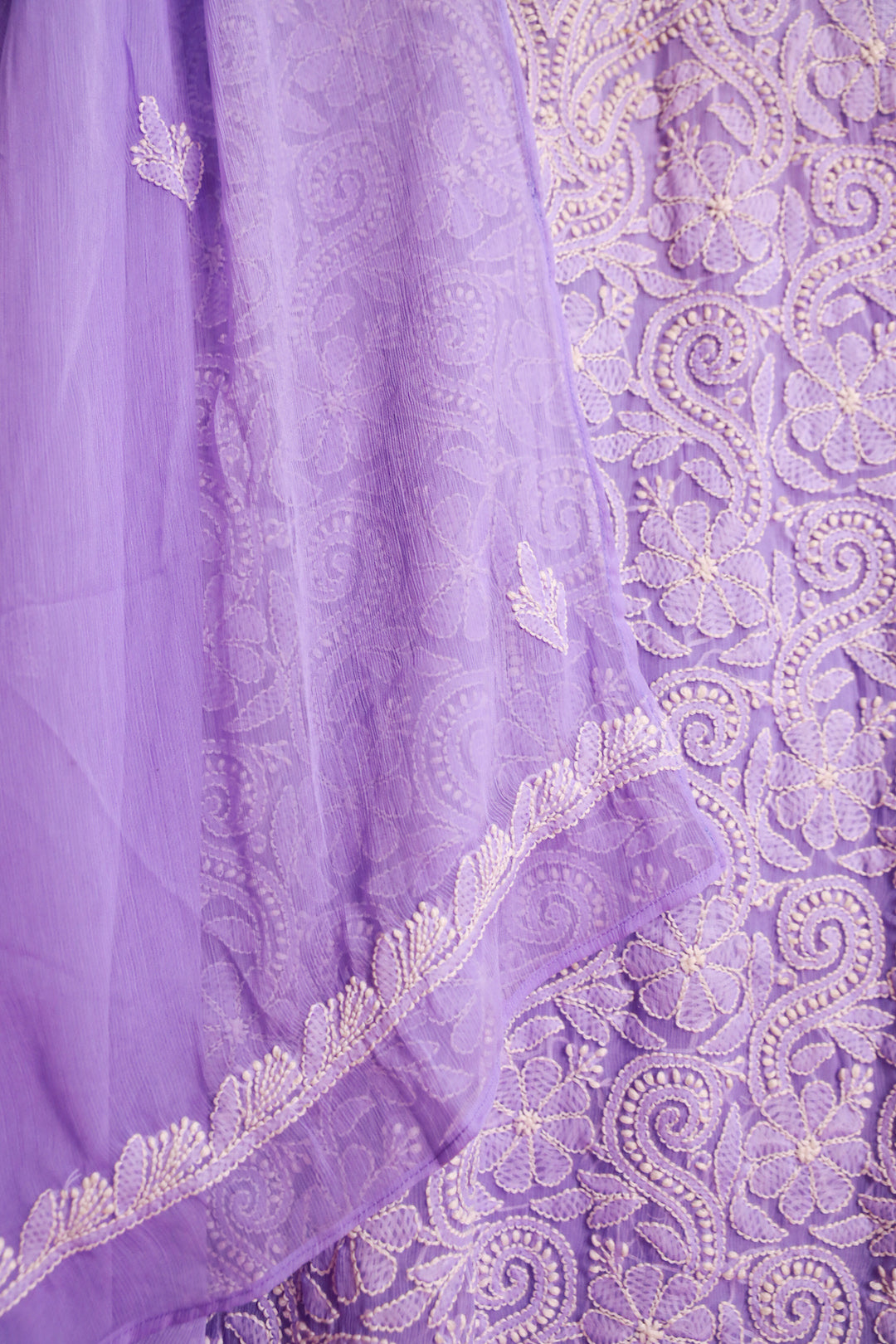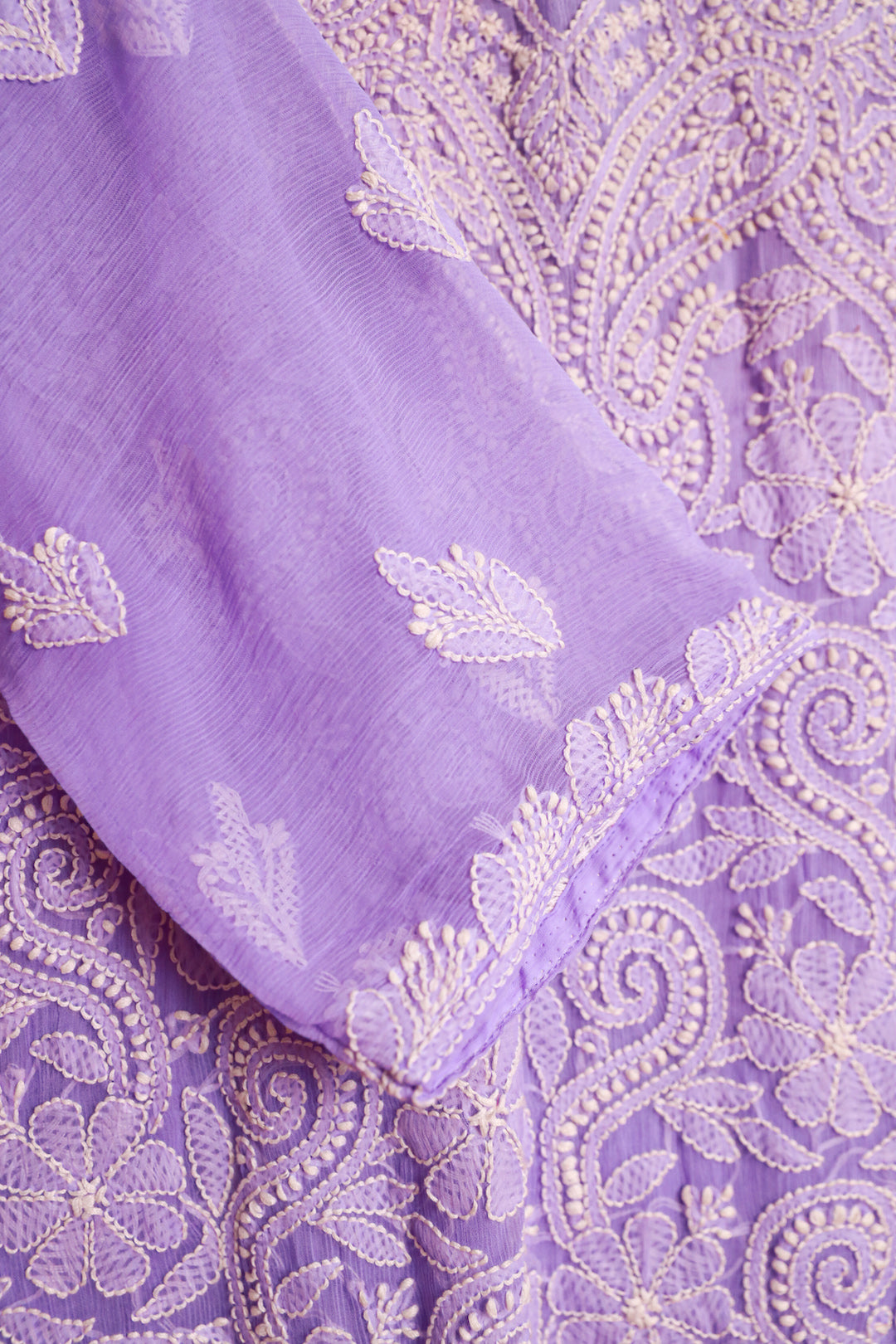 Chikankari is an Art of delicate handwork of Lucknow. It is a handcrafted process where the wooden blocks are manually carved in various designs, and the natural stew for printing is prepared, and printed on the cloth. The chikankari craftsmen then use ten ary of the needlecraft embroidery, and perform the needlework artistically. There are 32 stitches of chikankari broadly classified into Raised stitch, Embossed and Flat stitch.