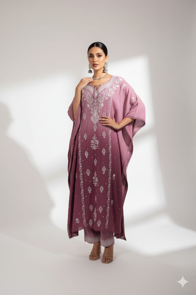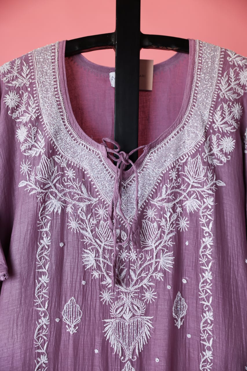 Chikankari is an Art of delicate handwork of Lucknow. It is a handcrafted process where the wooden blocks are manually carved in various designs, and the natural stew for printing is prepared, and printed on the cloth. The chikankari craftsmen then use ten ary of the needlecraft embroidery, and perform the needlework artistically. There are 32 stitches of chikankari broadly classified into Raised stitch, Embossed and Flat stitch.