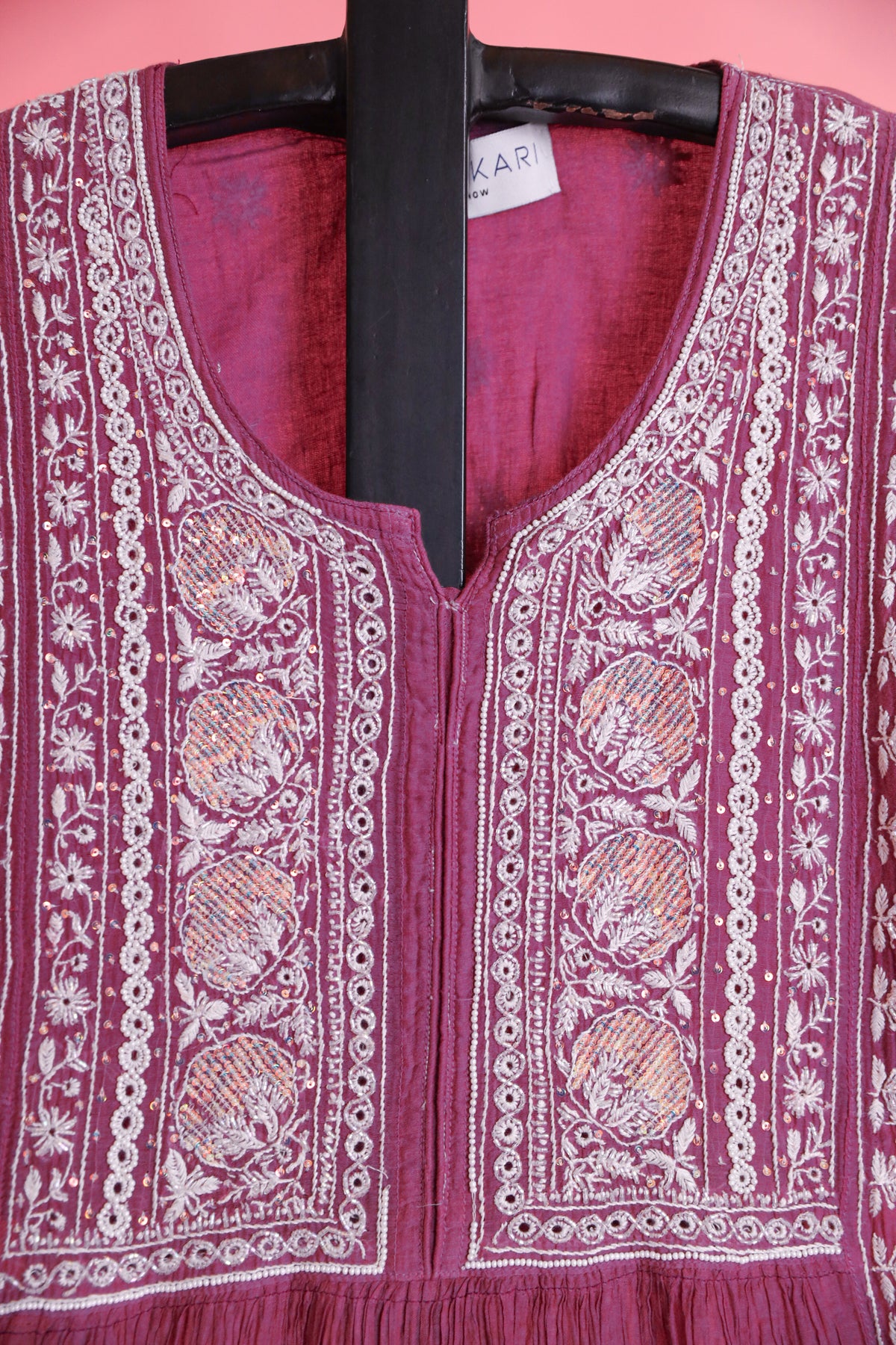 Chikankari is an Art of delicate handwork of Lucknow. It is a handcrafted process where the wooden blocks are manually carved in various designs, and the natural stew for printing is prepared, and printed on the cloth. The chikankari craftsmen then use ten ary of the needlecraft embroidery, and perform the needlework artistically. There are 32 stitches of chikankari broadly classified into Raised stitch, Embossed and Flat stitch.