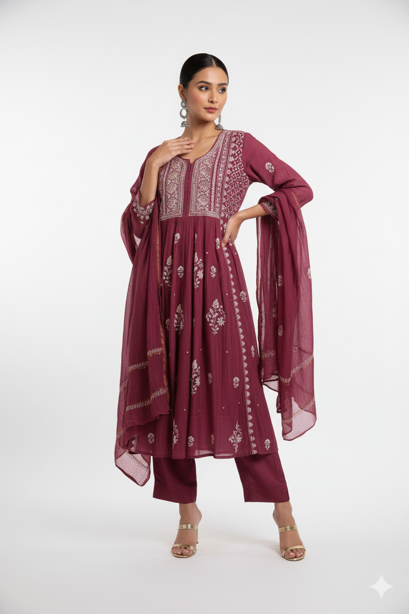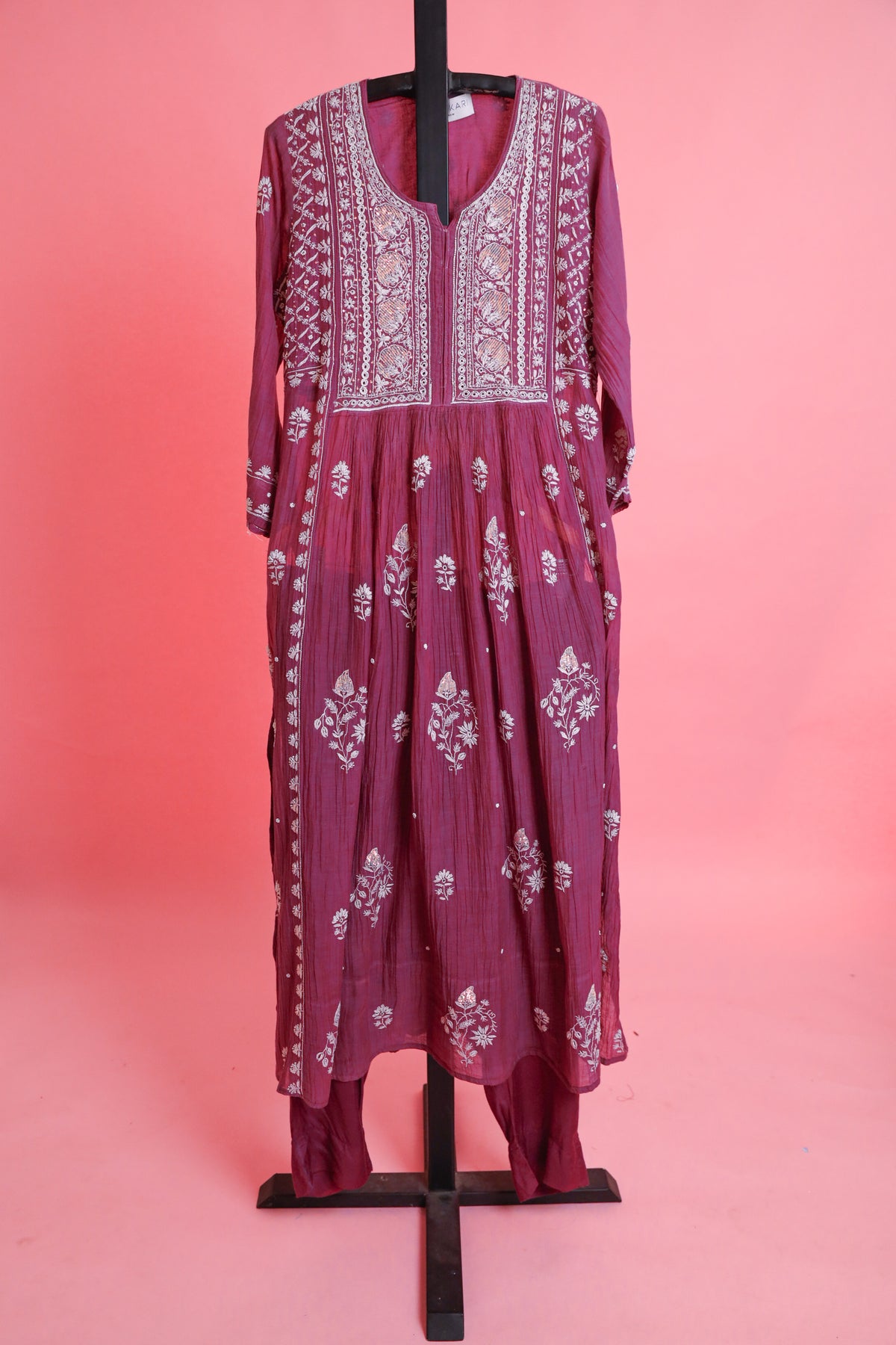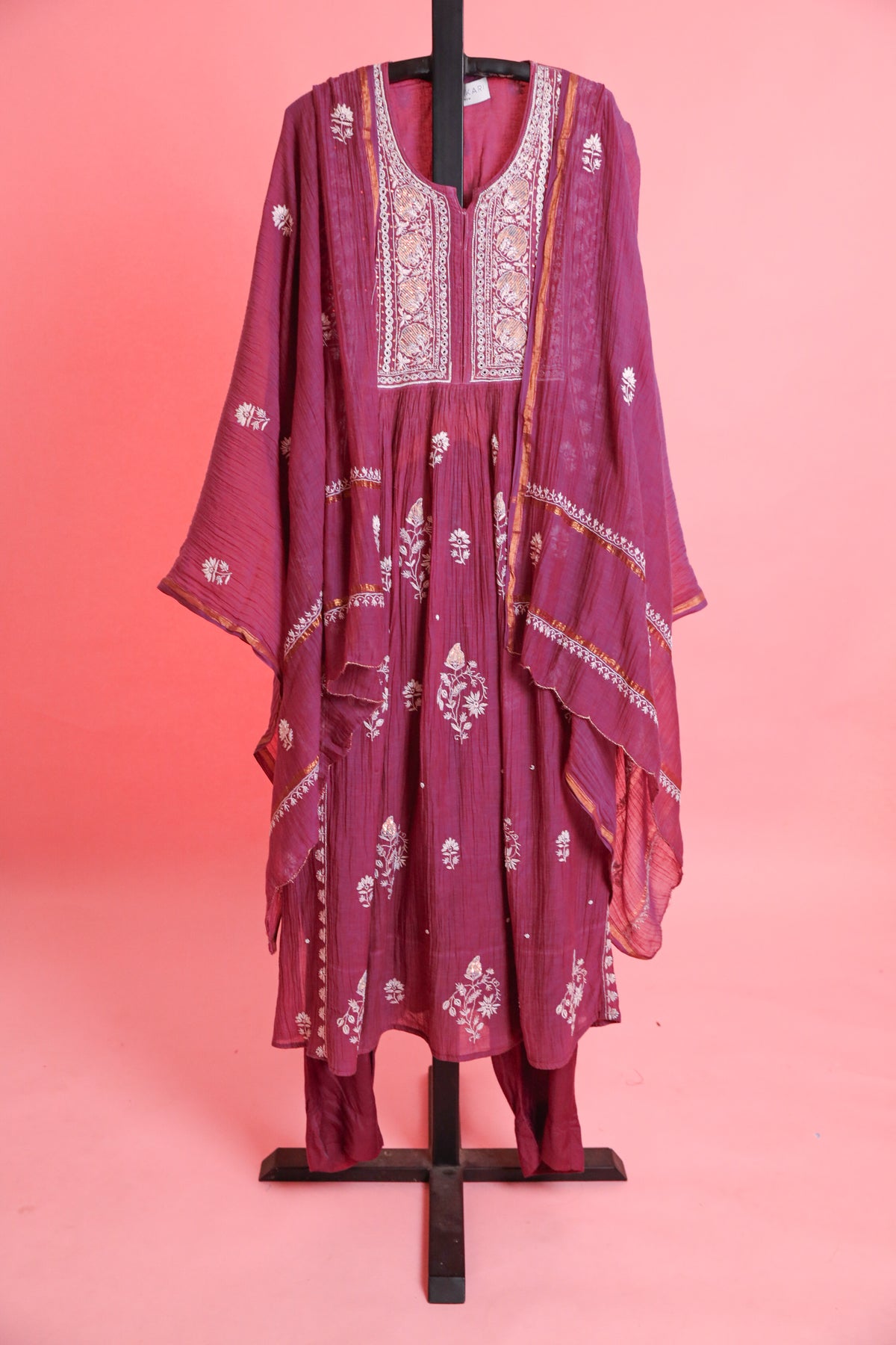 Rabiya Mul Chanderi Chikankari 3 Piece Suit Set
