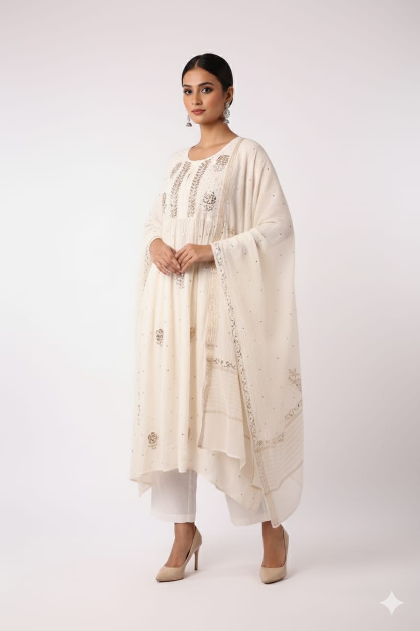 Rasiya Mul Chanderi Chikankari Kurta Set