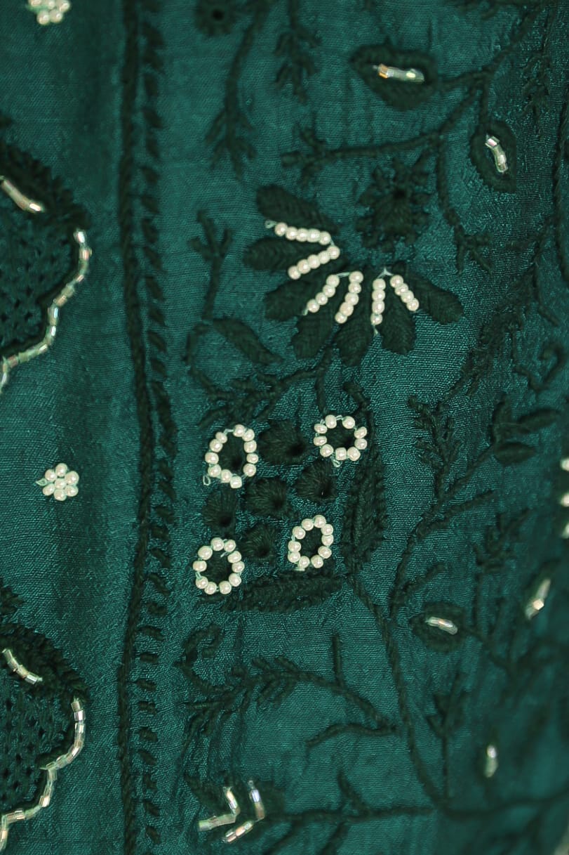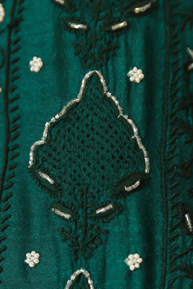 Chikankari is an Art of delicate handwork of Lucknow. It is a handcrafted process where the wooden blocks are manually carved in various designs, and the natural stew for printing is prepared, and printed on the cloth. The chikankari craftsmen then use ten ary of the needlecraft embroidery, and perform the needlework artistically. There are 32 stitches of chikankari broadly classified into Raised stitch, Embossed and Flat stitch.