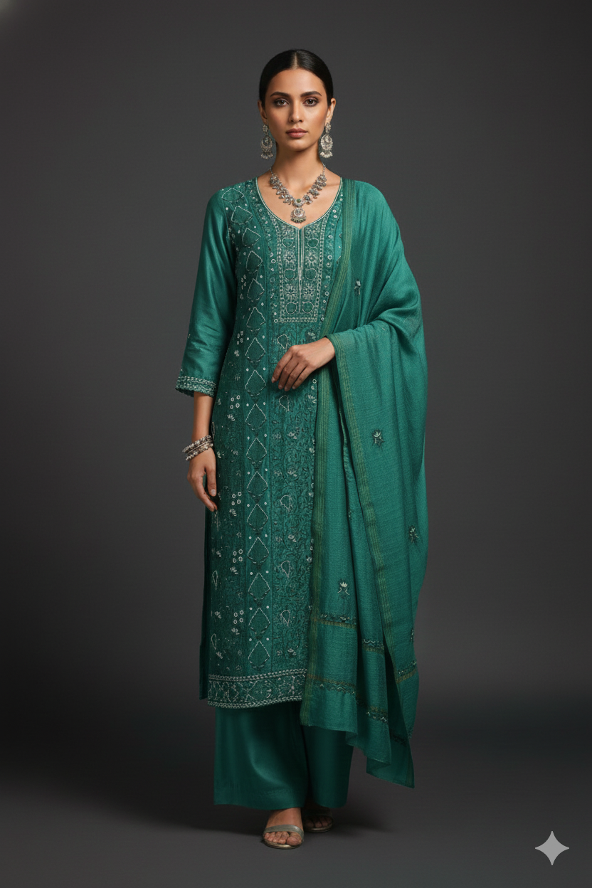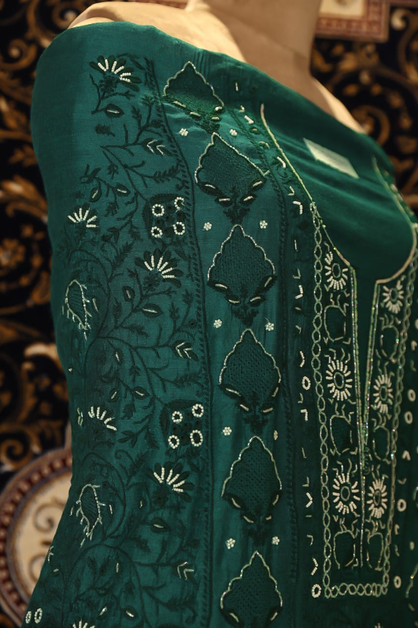 Stitched Ishika Pure Silk Chikankari 3 Piece Suit Set