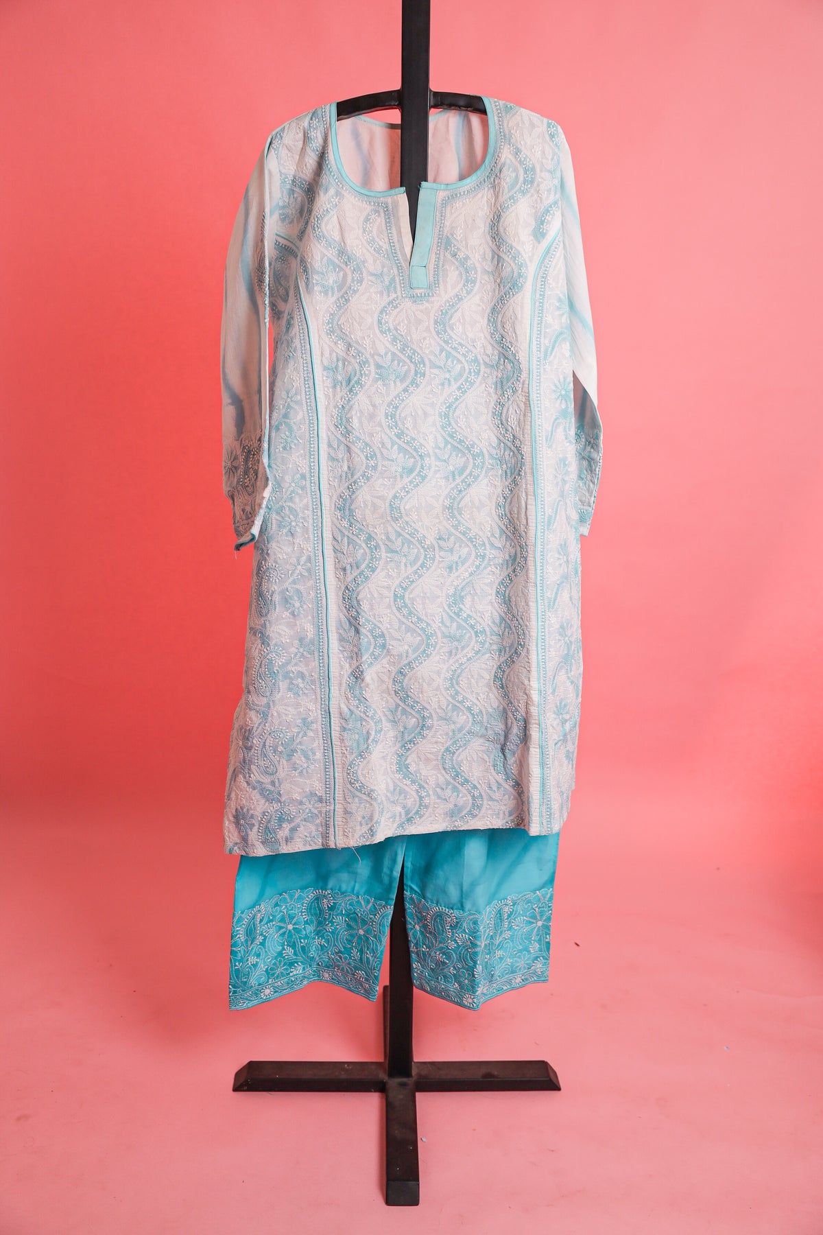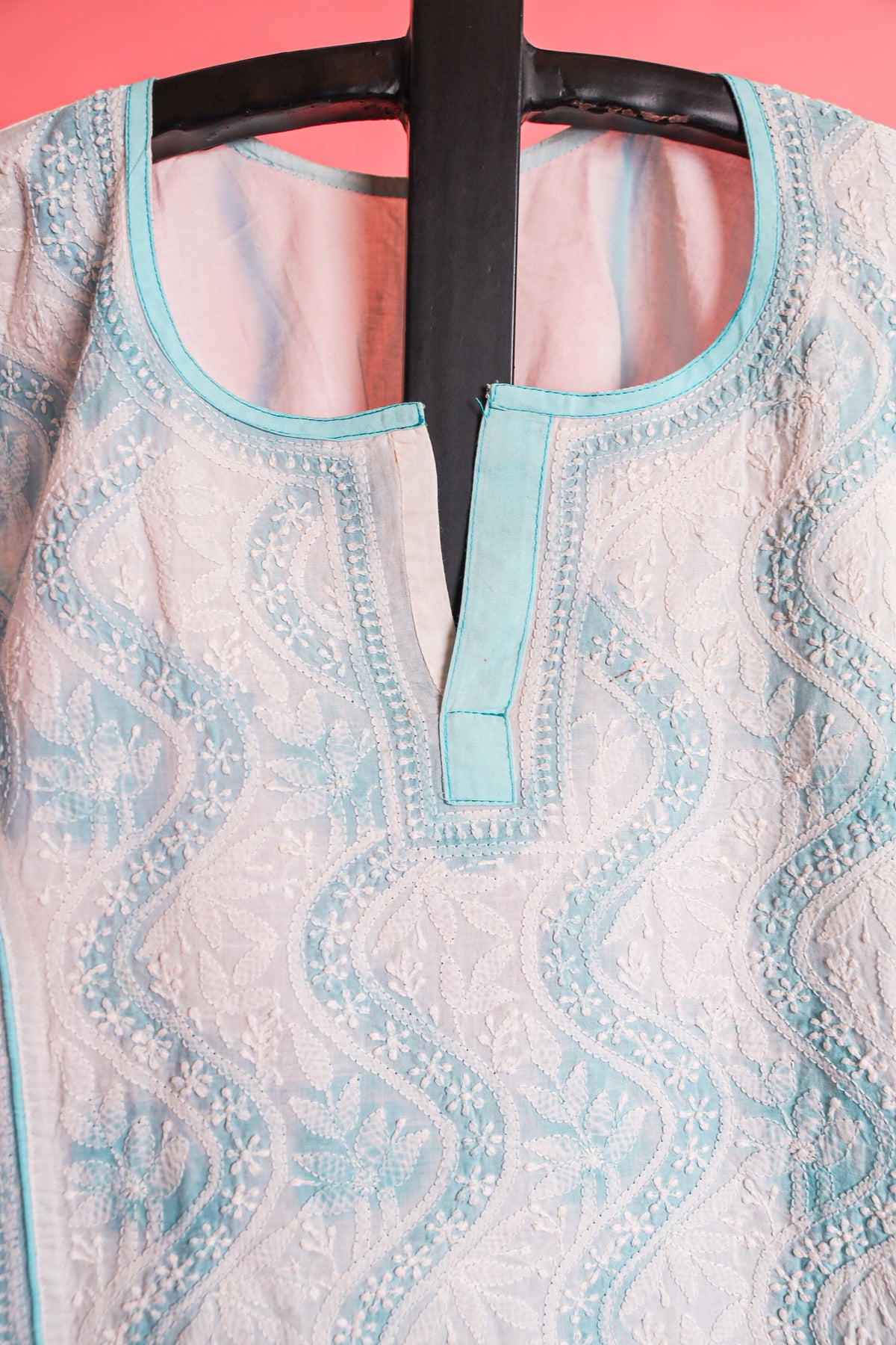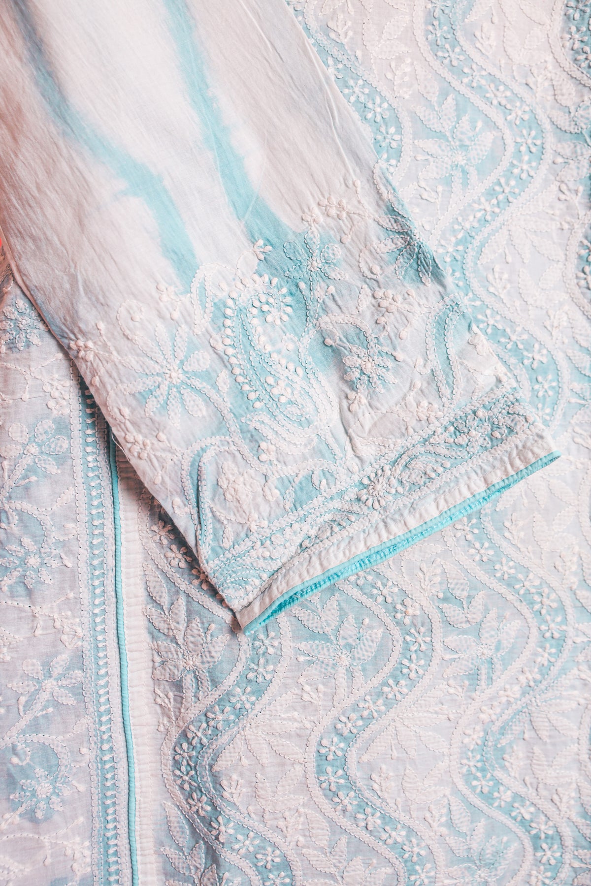 Chikankari is an Art of delicate handwork of Lucknow. It is a handcrafted process where the wooden blocks are manually carved in various designs, and the natural stew for printing is prepared, and printed on the cloth. The chikankari craftsmen then use ten ary of the needlecraft embroidery, and perform the needlework artistically. There are 32 stitches of chikankari broadly classified into Raised stitch, Embossed and Flat stitch.