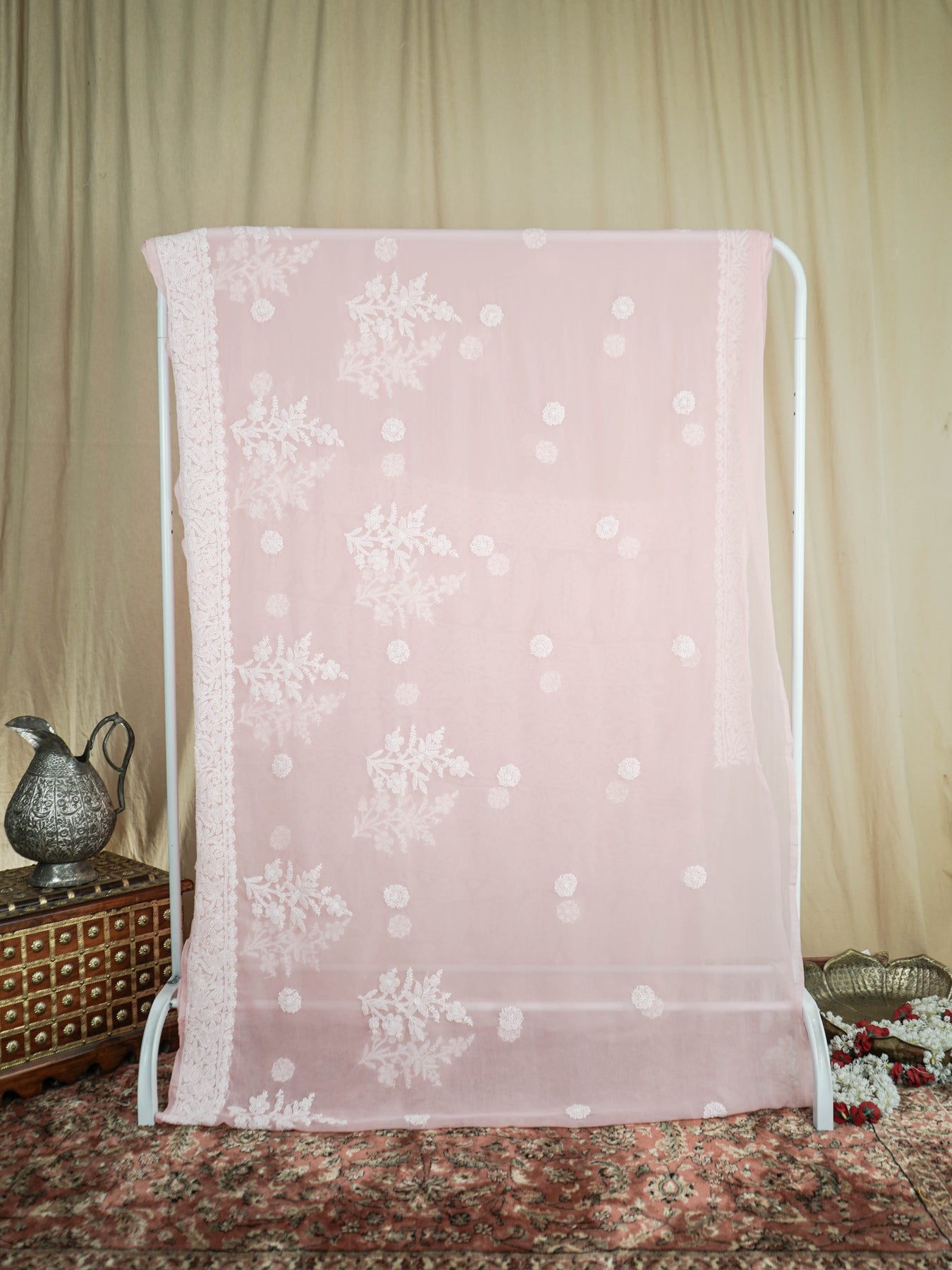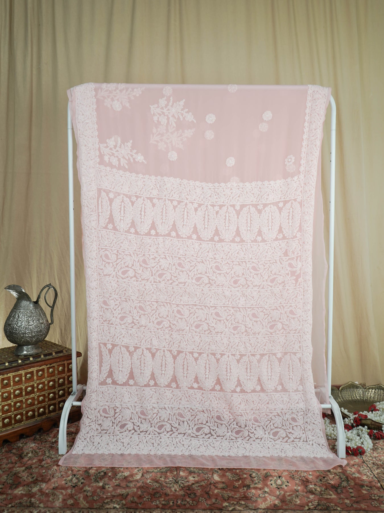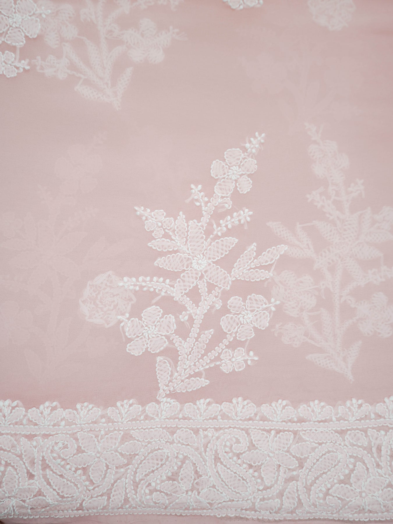 Chikankari is an Art of delicate handwork of Lucknow. It is a handcrafted process where the wooden blocks are manually carved in various designs, and the natural stew for printing is prepared, and printed on the cloth. The chikankari craftsmen then use ten ary of the needlecraft embroidery, and perform the needlework artistically. There are 32 stitches of chikankari broadly classified into Raised stitch, Embossed and Flat stitch.