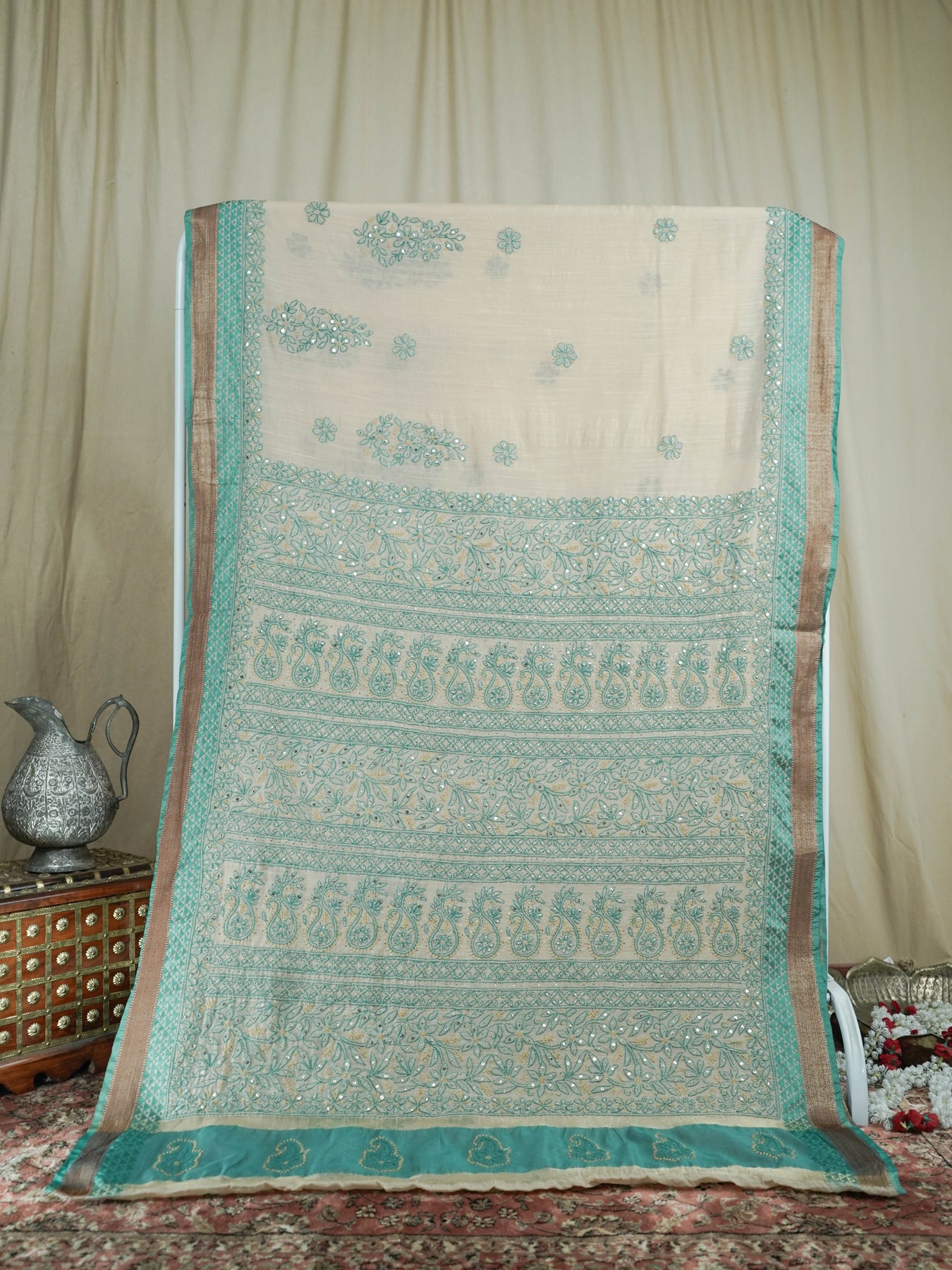 Chikankari is an Art of delicate handwork of Lucknow. It is a handcrafted process where the wooden blocks are manually carved in various designs, and the natural stew for printing is prepared, and printed on the cloth. The chikankari craftsmen then use ten ary of the needlecraft embroidery, and perform the needlework artistically. There are 32 stitches of chikankari broadly classified into Raised stitch, Embossed and Flat stitch.