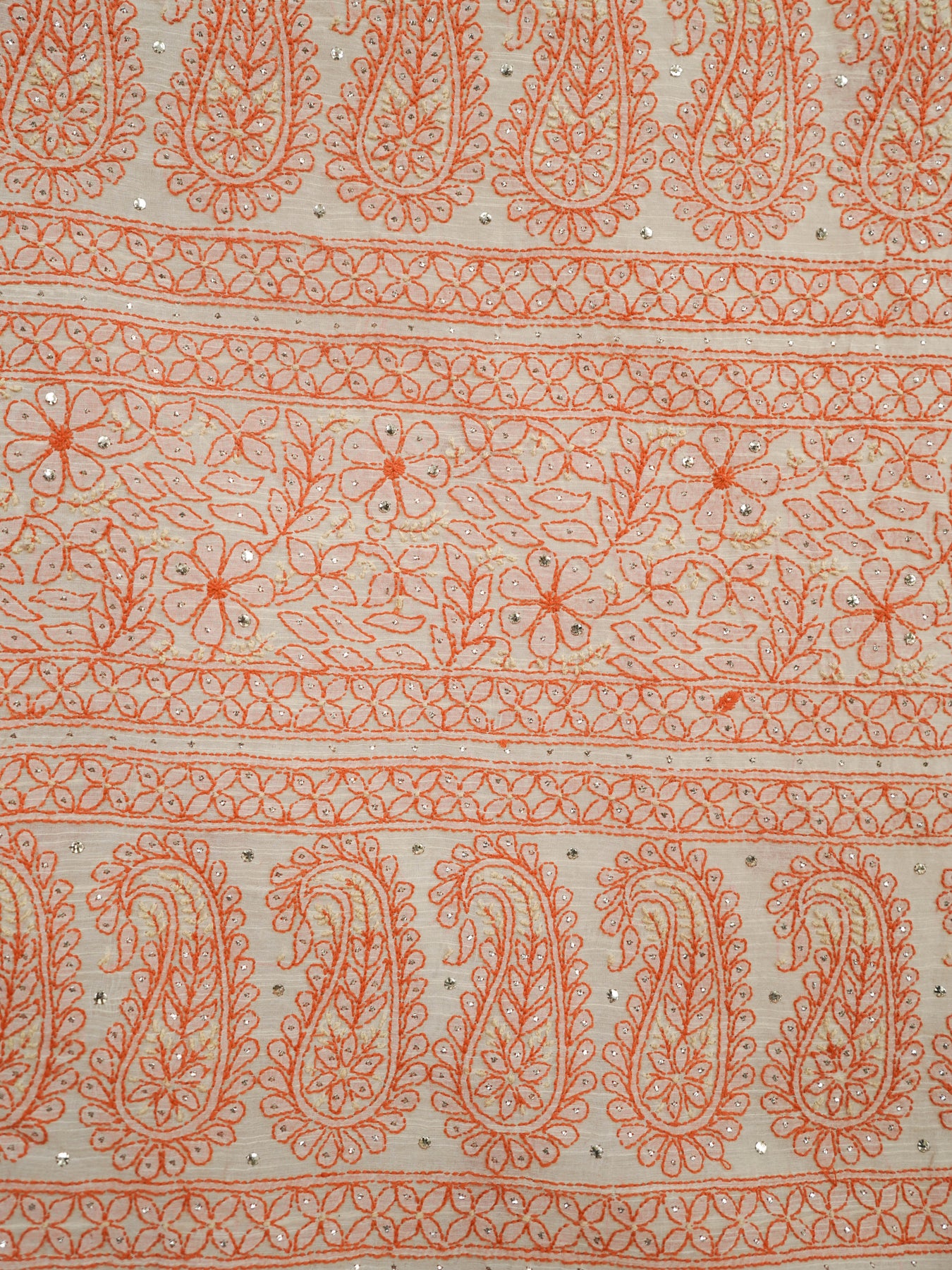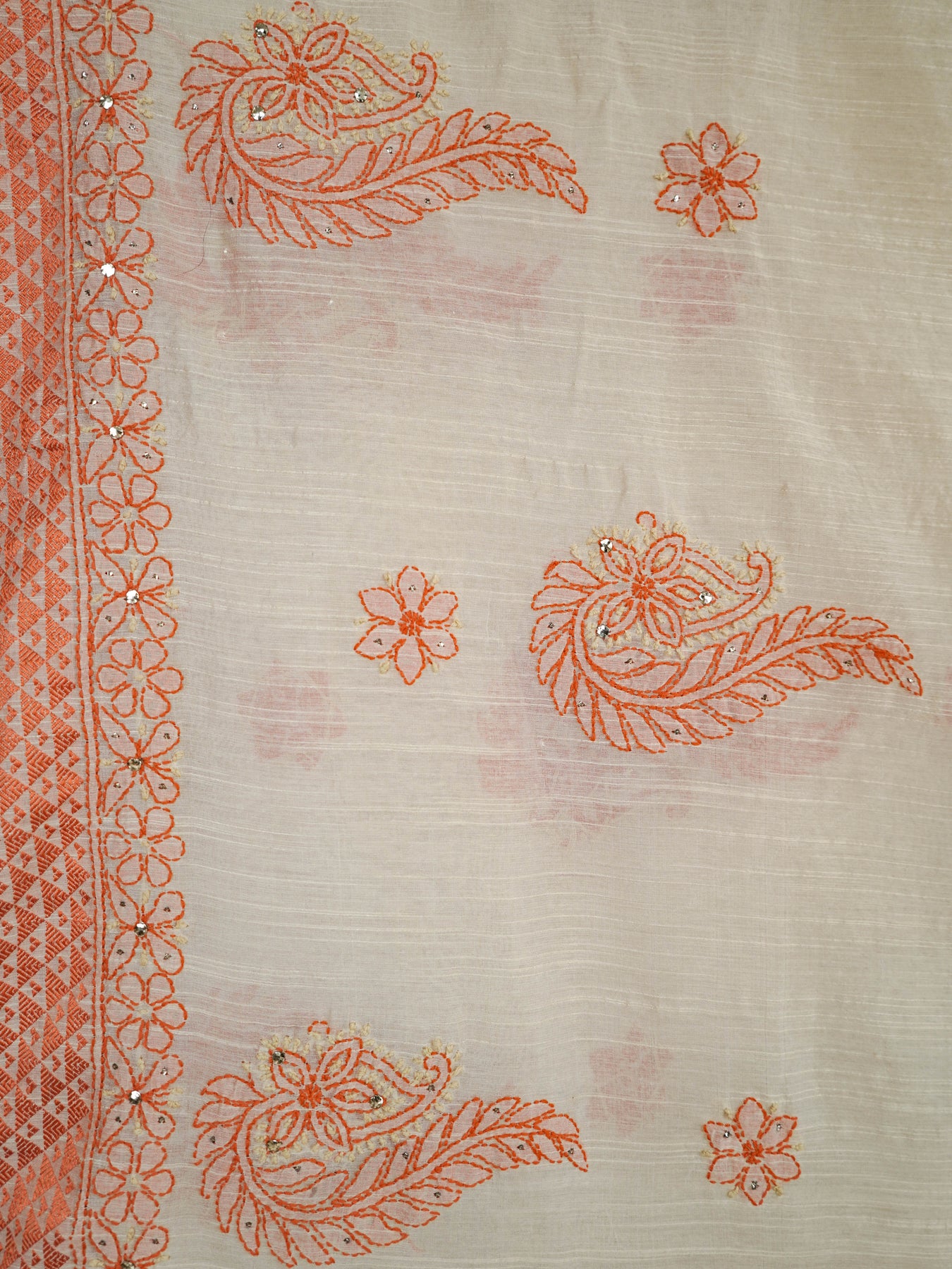 Chikankari is an Art of delicate handwork of Lucknow. It is a handcrafted process where the wooden blocks are manually carved in various designs, and the natural stew for printing is prepared, and printed on the cloth. The chikankari craftsmen then use ten ary of the needlecraft embroidery, and perform the needlework artistically. There are 32 stitches of chikankari broadly classified into Raised stitch, Embossed and Flat stitch.