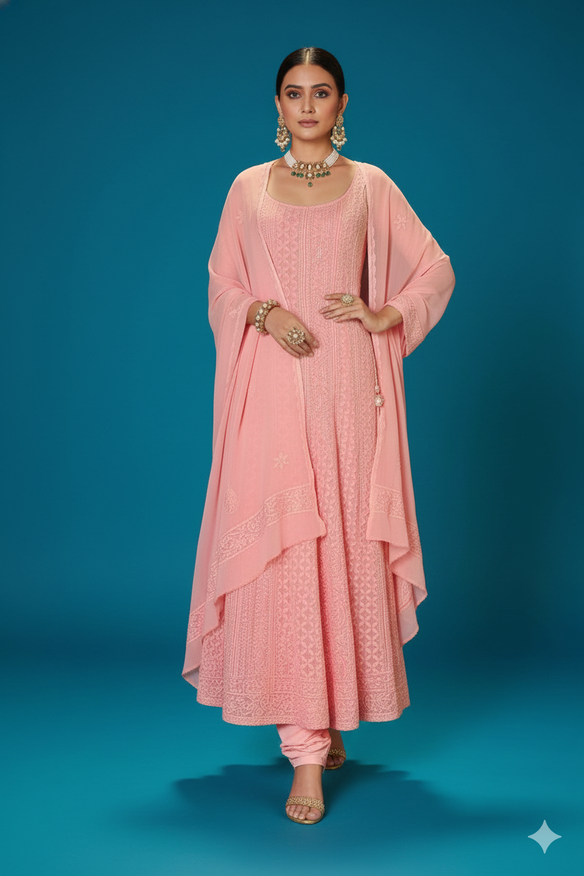 Aleena Premium Georgette Chikankari Anarkali 3 Piece Set