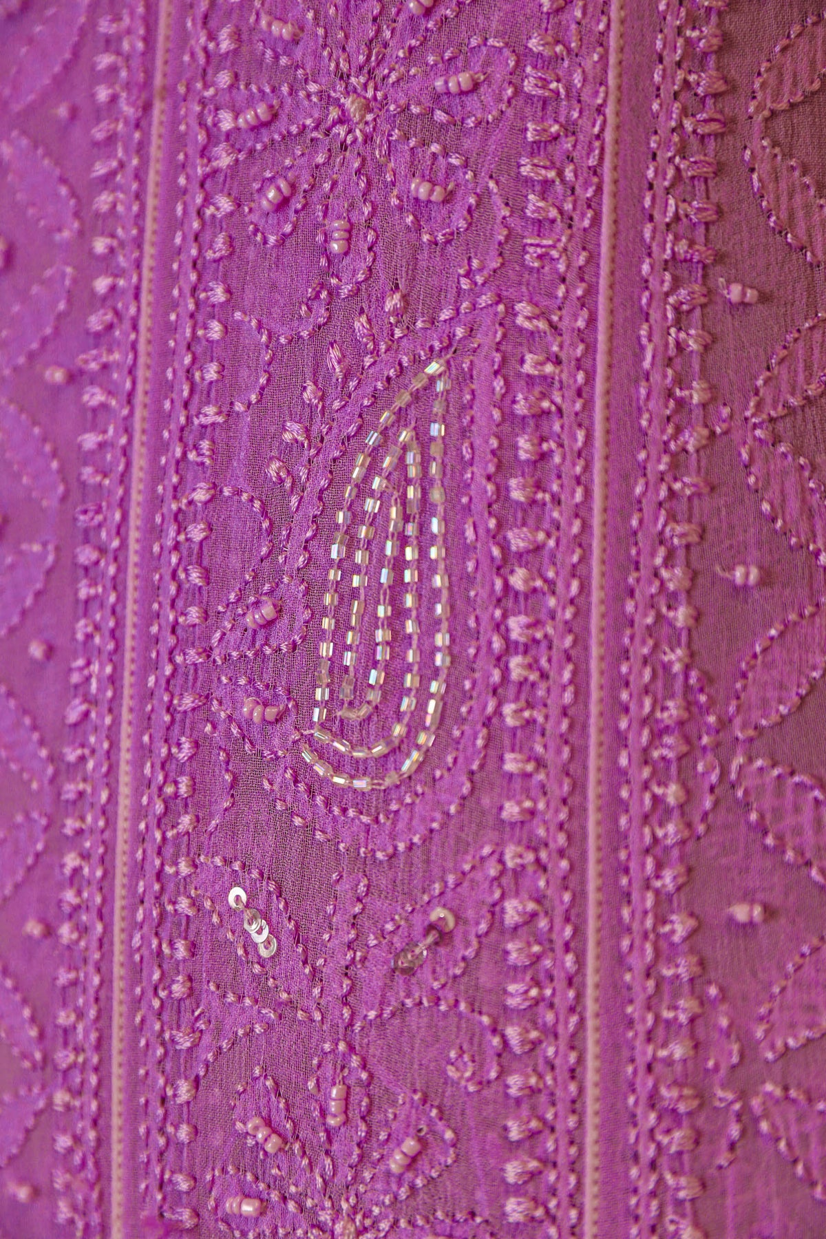 Chikankari is an Art of delicate handwork of Lucknow. It is a handcrafted process where the wooden blocks are manually carved in various designs, and the natural stew for printing is prepared, and printed on the cloth. The chikankari craftsmen then use ten ary of the needlecraft embroidery, and perform the needlework artistically. There are 32 stitches of chikankari broadly classified into Raised stitch, Embossed and Flat stitch.