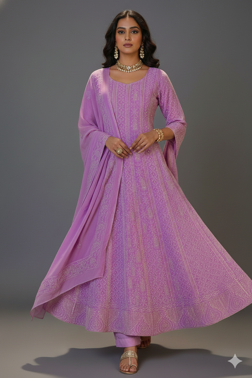 Stitched Gauri Premium Georgette Chikankari Anarkali 3 Piece Set