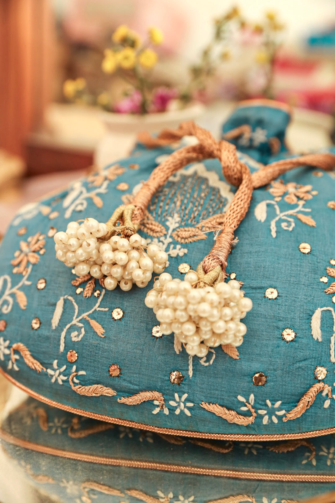 Dimensions : The potli is light and easy to carry. The dimension of the potli are 10 Inches x 10 Inches (Length x Width).