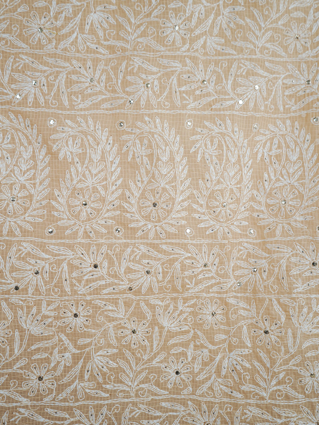 Chikankari is an Art of delicate handwork of Lucknow. It is a handcrafted process where the wooden blocks are manually carved in various designs, and the natural stew for printing is prepared, and printed on the cloth. The chikankari craftsmen then use ten ary of the needlecraft embroidery, and perform the needlework artistically. There are 32 stitches of chikankari broadly classified into Raised stitch, Embossed and Flat stitch.